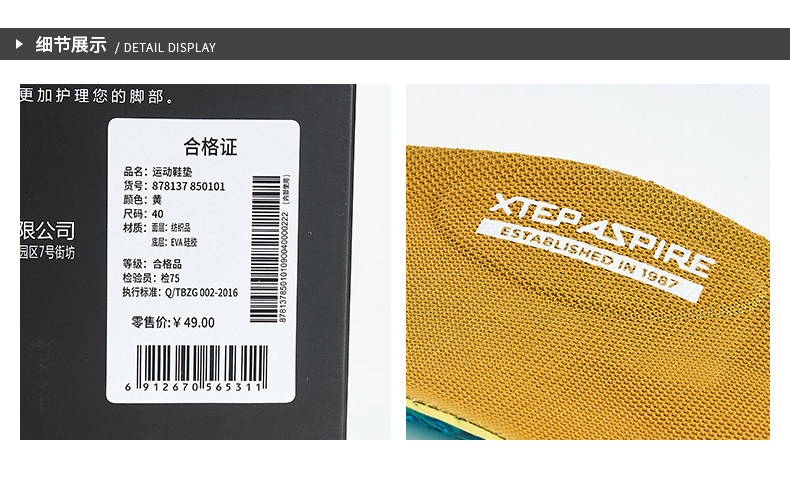 Xtep, дышащие комфортные амортизирующие базовые стельки для тренировок, для бега