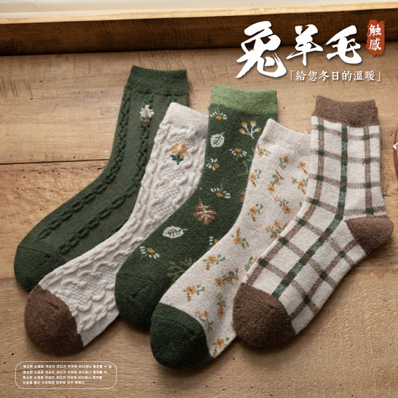 Tide, зеленые шерстяные носки, демисезонные утепленные ретро кашемировые гольфы, средней длины
