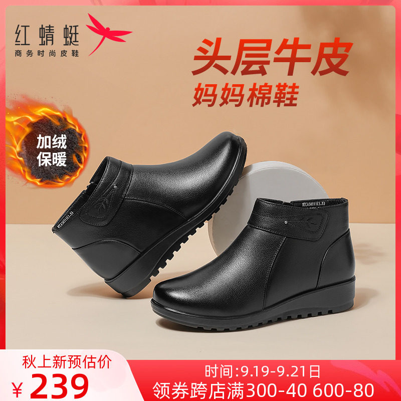 Зимние флисовые удерживающие тепло нескользящие короткие сапоги для матери, 2022, из натуральной кожи, для среднего возраста