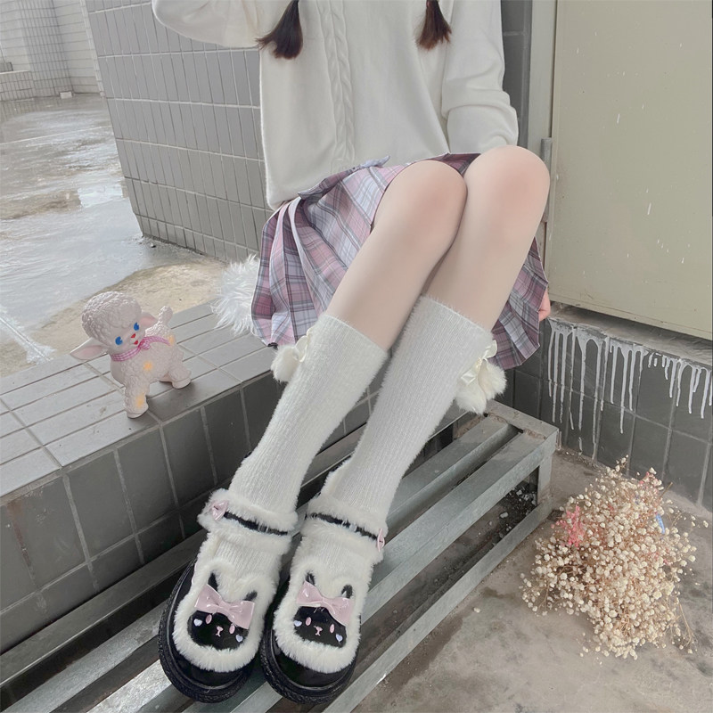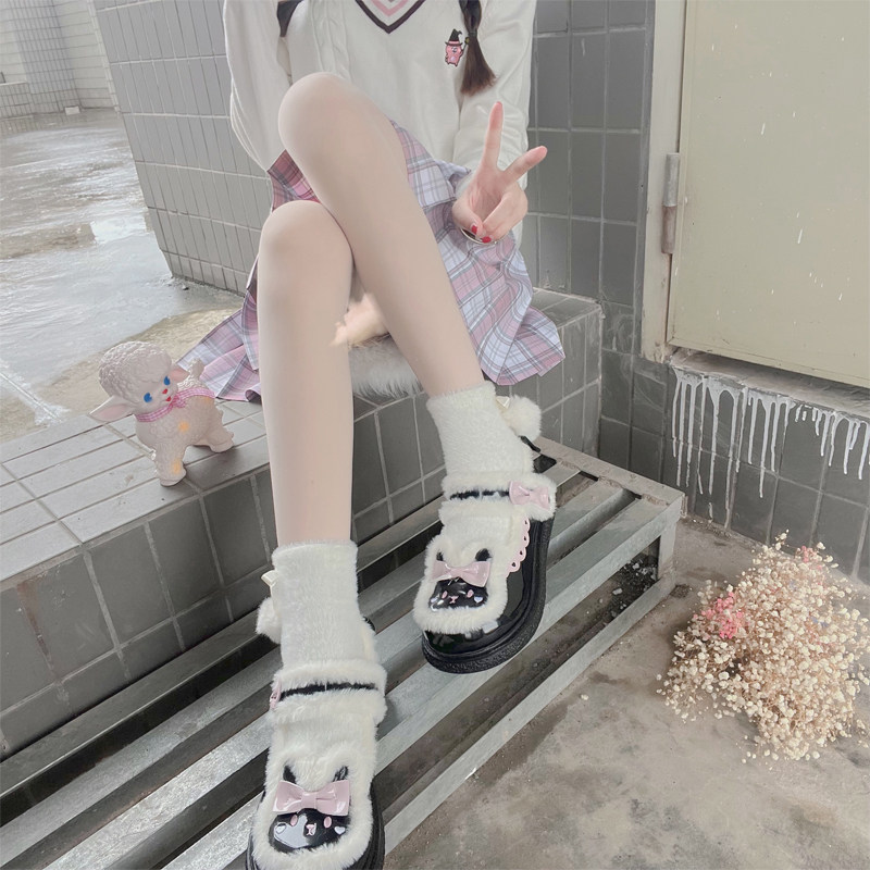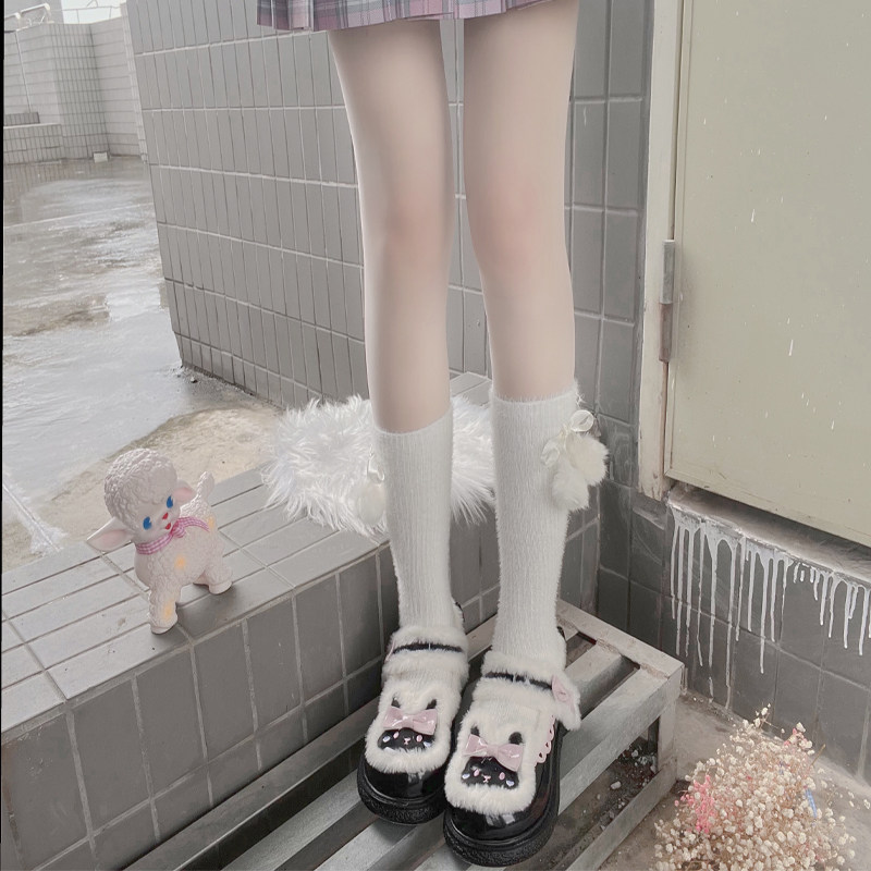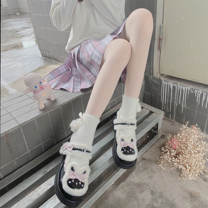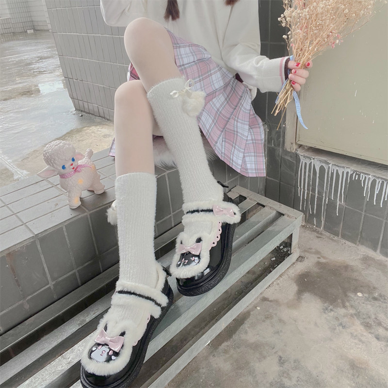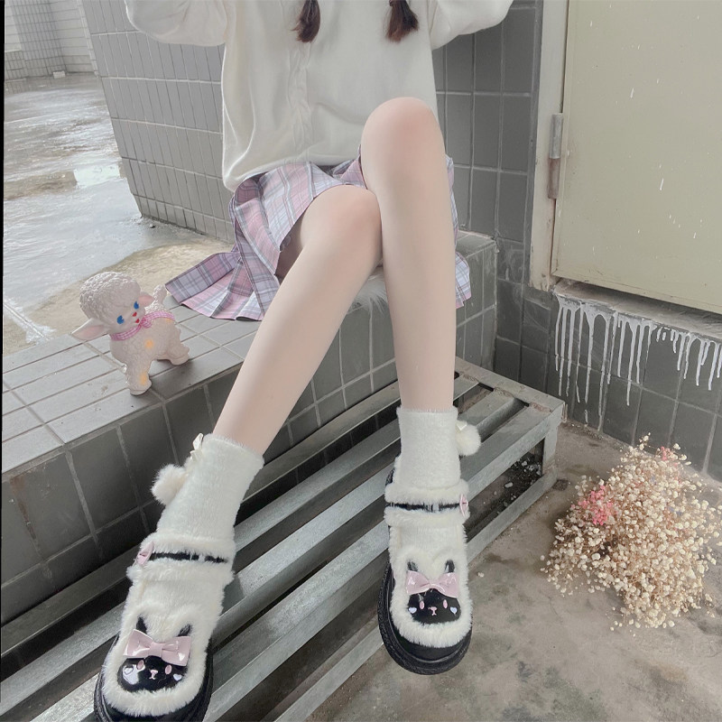 Милые японские демисезонные утепленные удерживающие тепло бархатные носки, стиль Лолита, средней длины, плюшевые