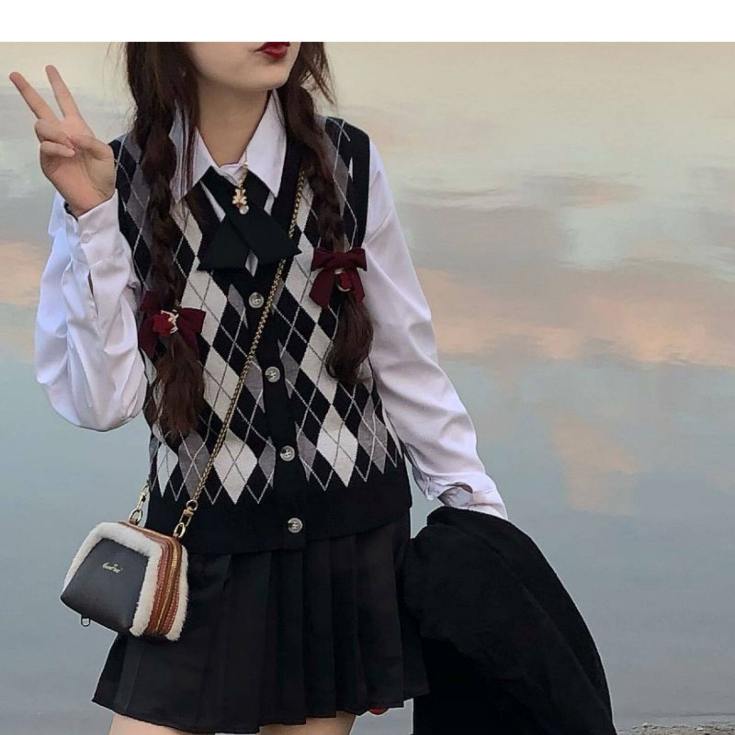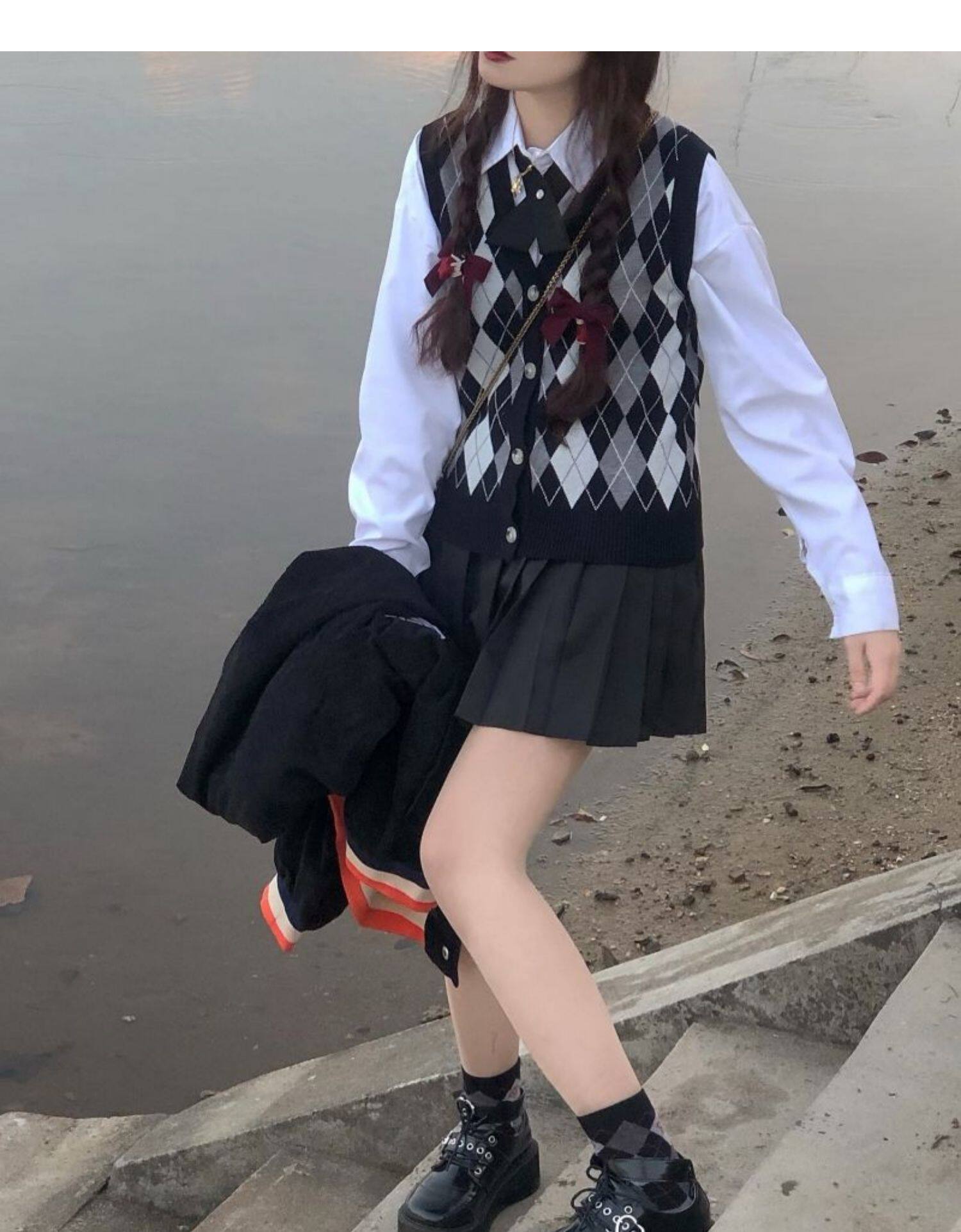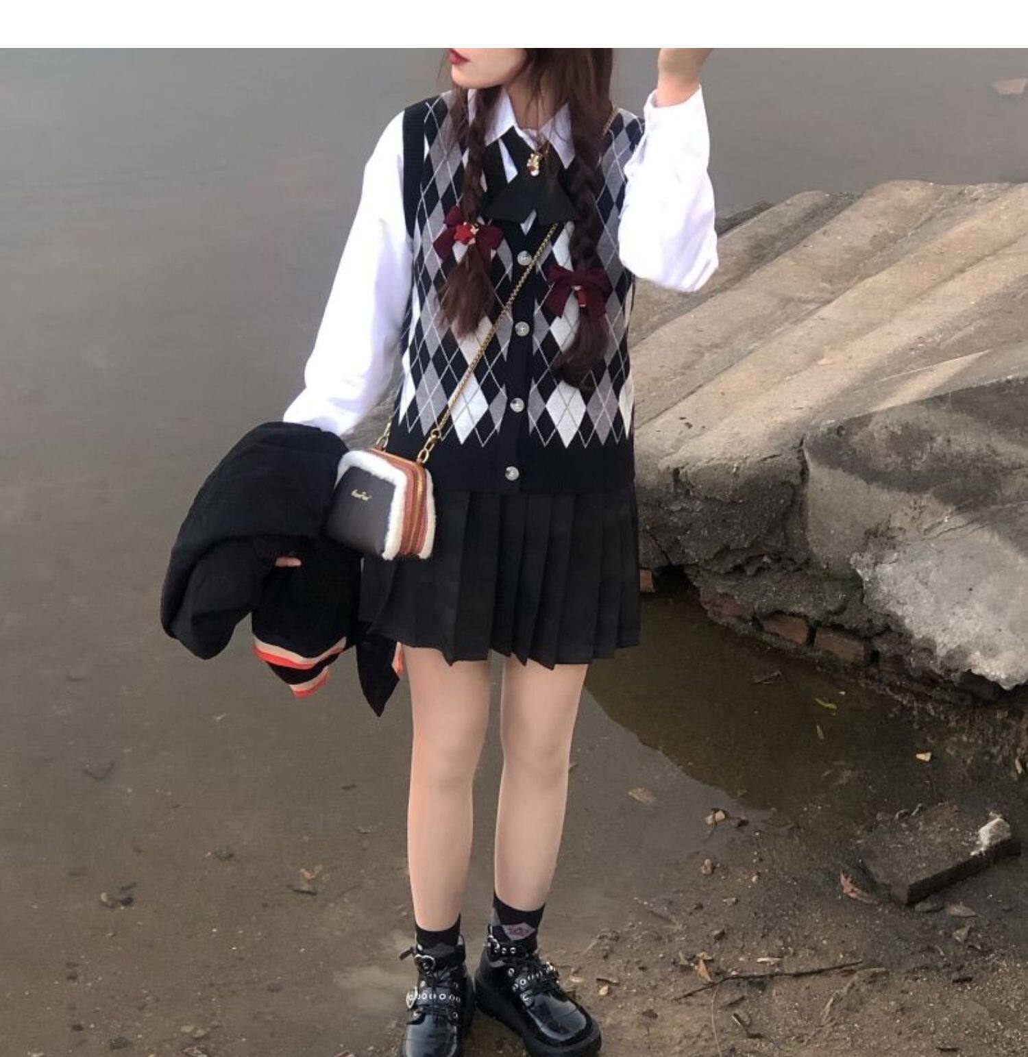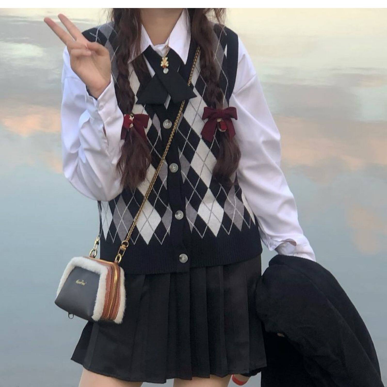 | Цвет: | Цветной жилет, Белая рубашка с бантиком, Юбка в складку, Жилет, рубашка с бантиком, юбка в складку |