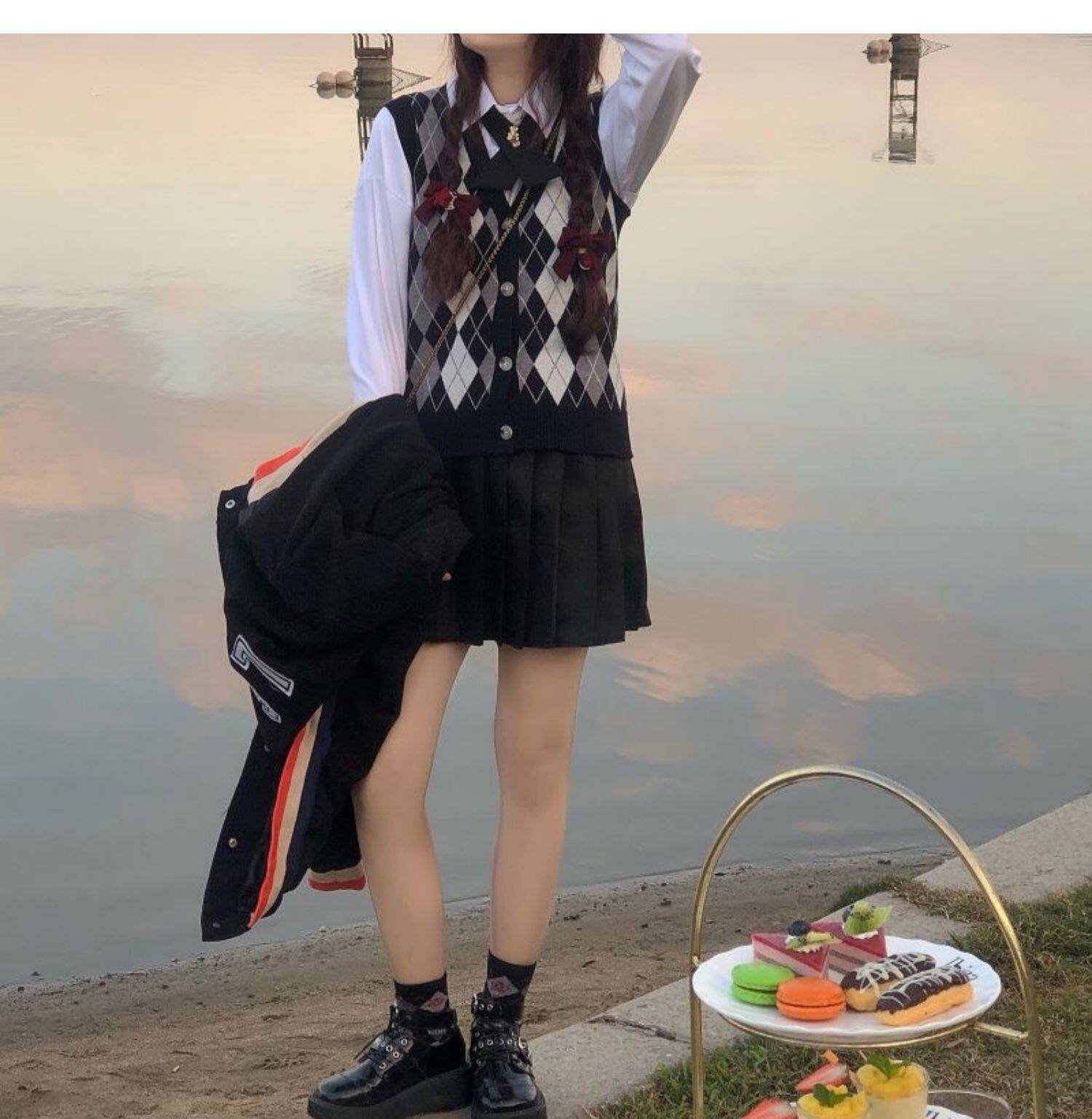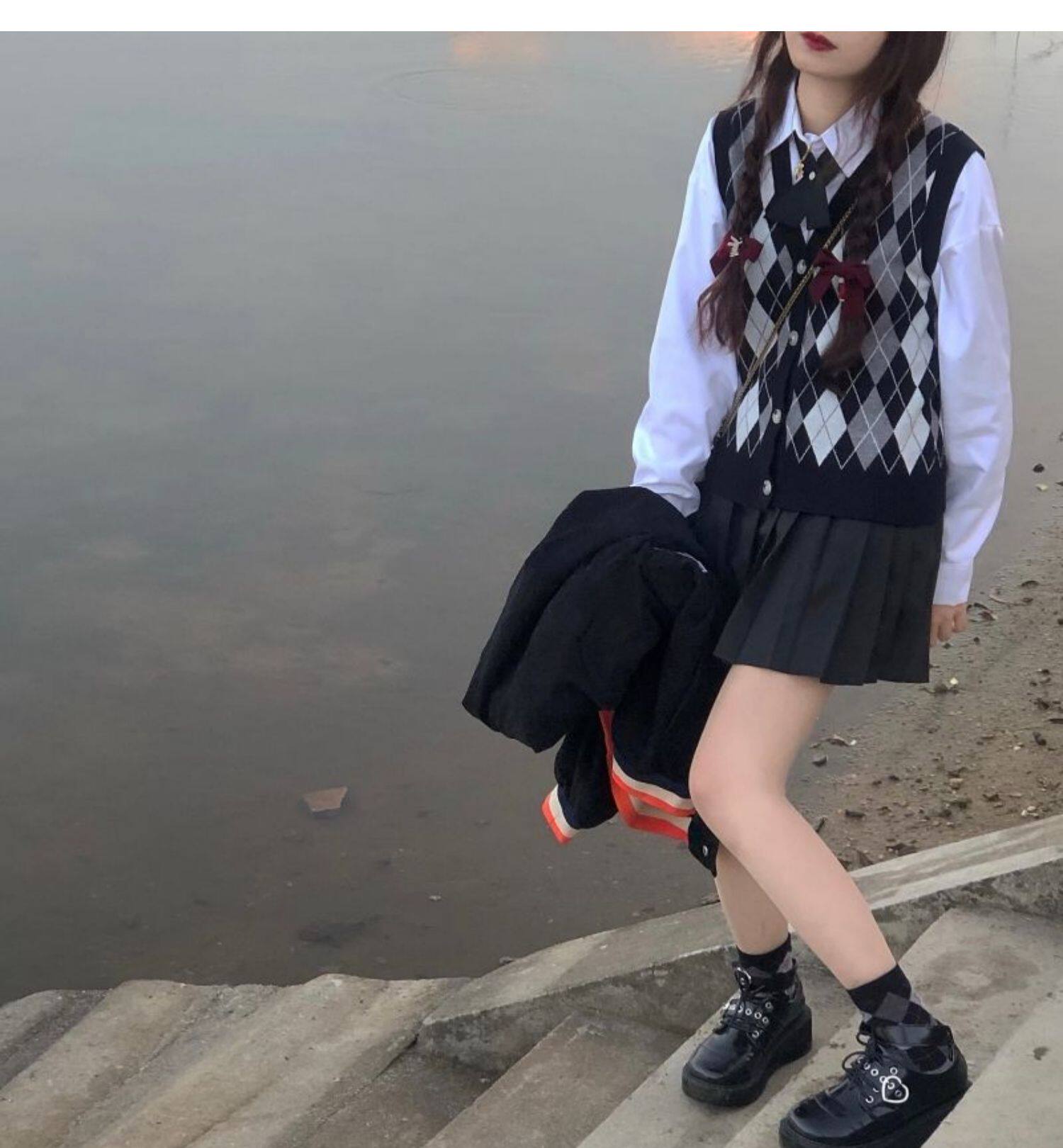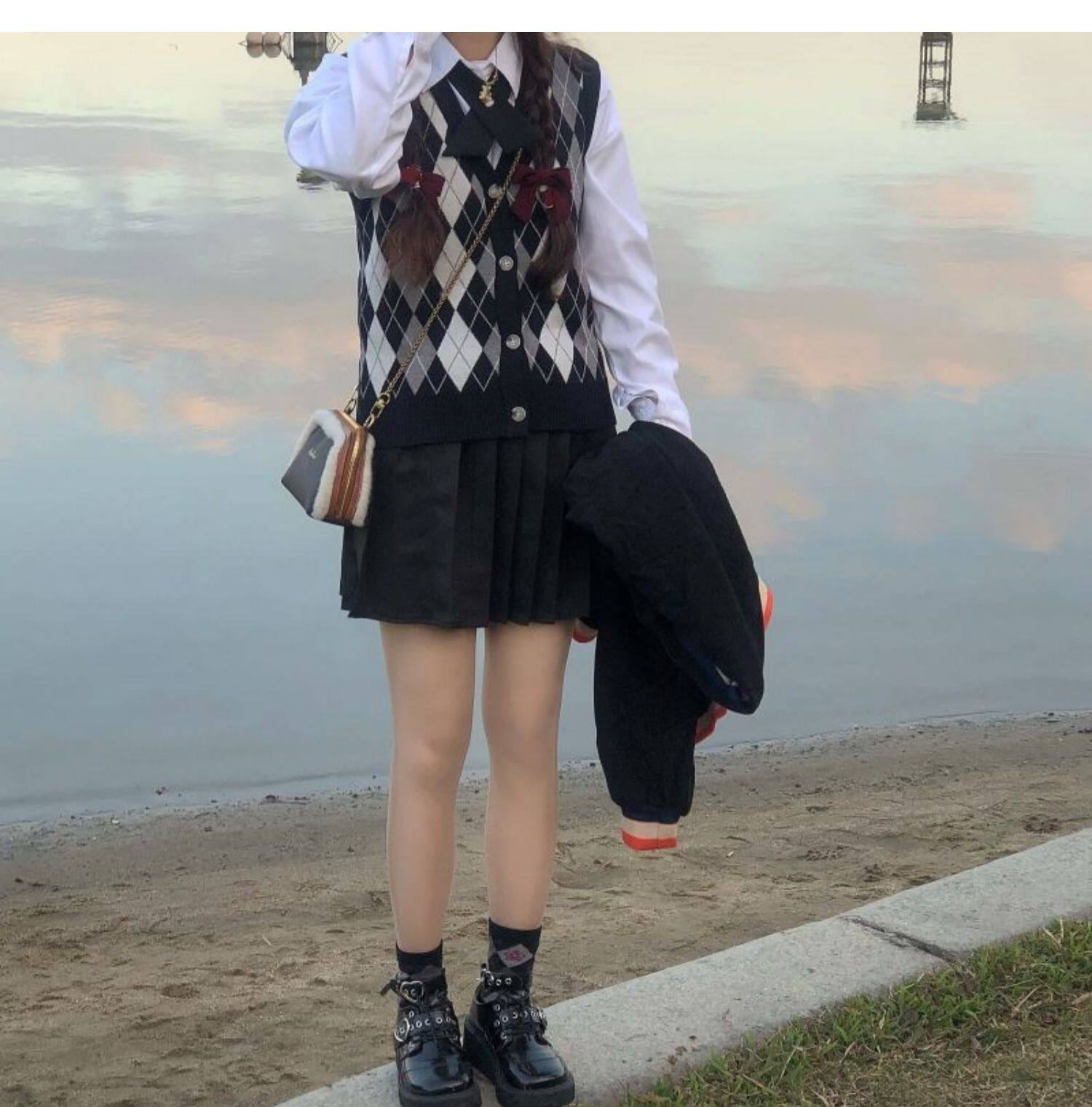 | Цвет: | Цветной жилет, Белая рубашка с бантиком, Юбка в складку, Жилет, рубашка с бантиком, юбка в складку |
