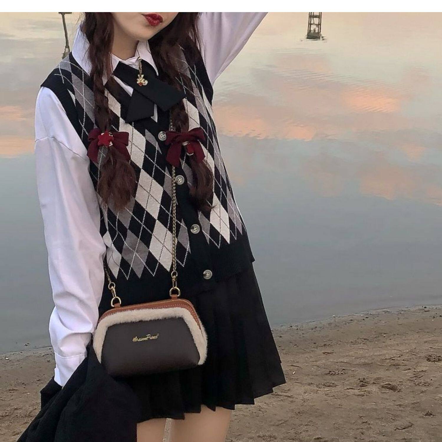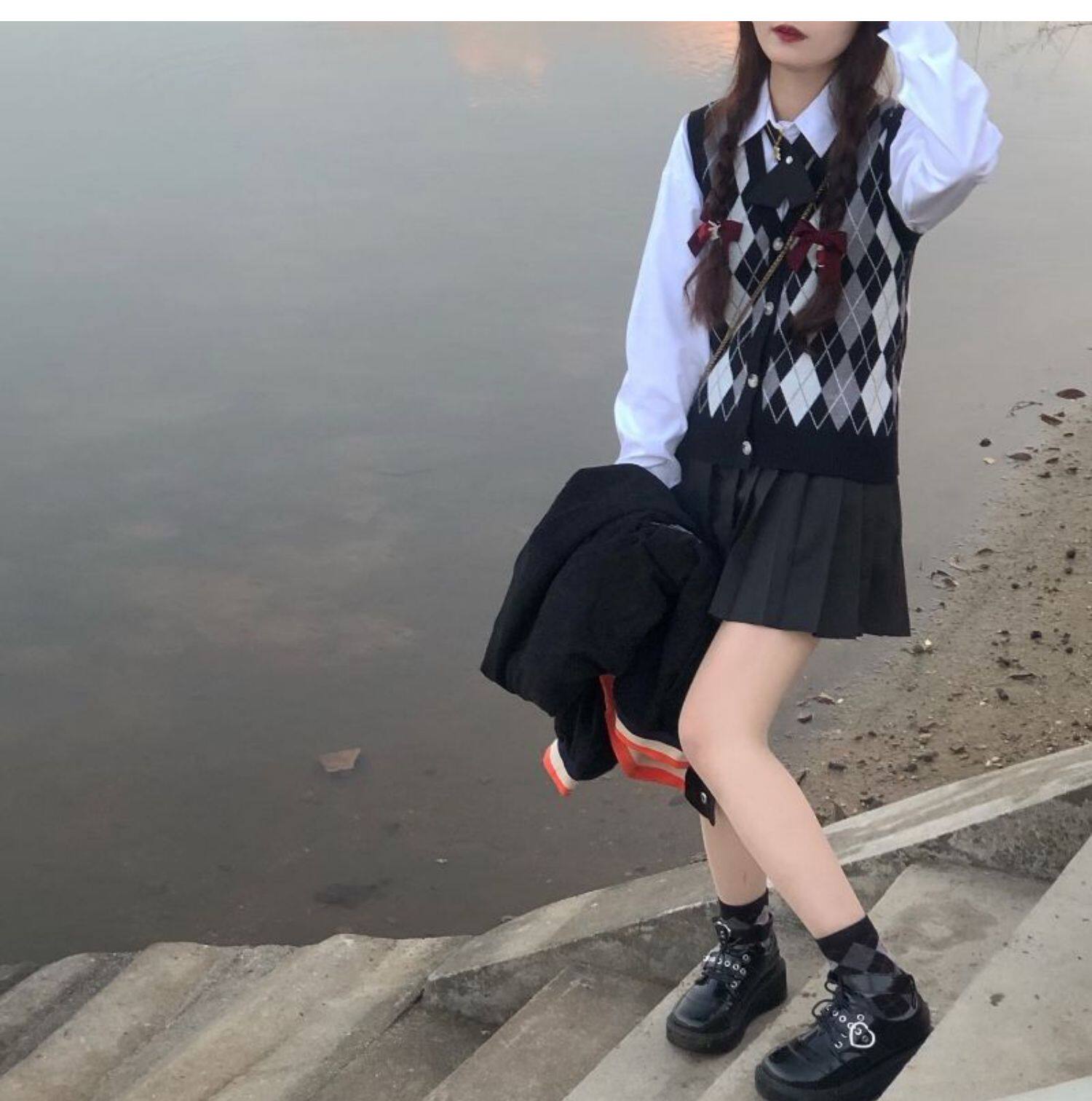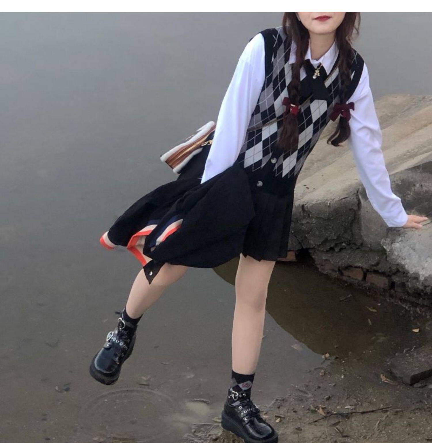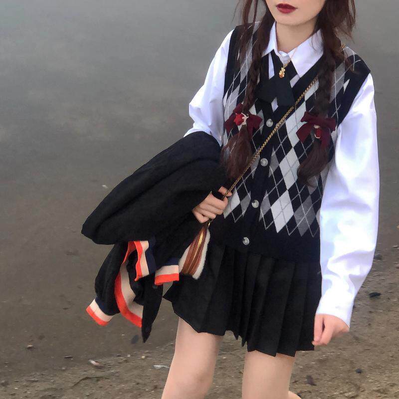 | Цвет: | Цветной жилет, Белая рубашка с бантиком, Юбка в складку, Жилет, рубашка с бантиком, юбка в складку |