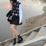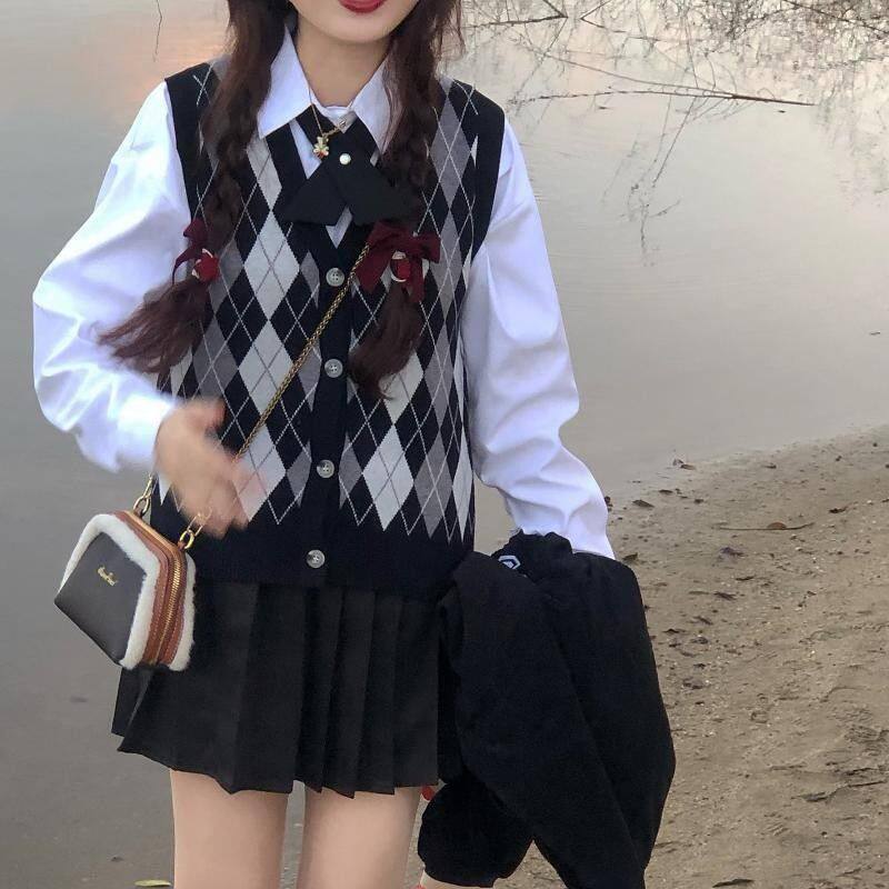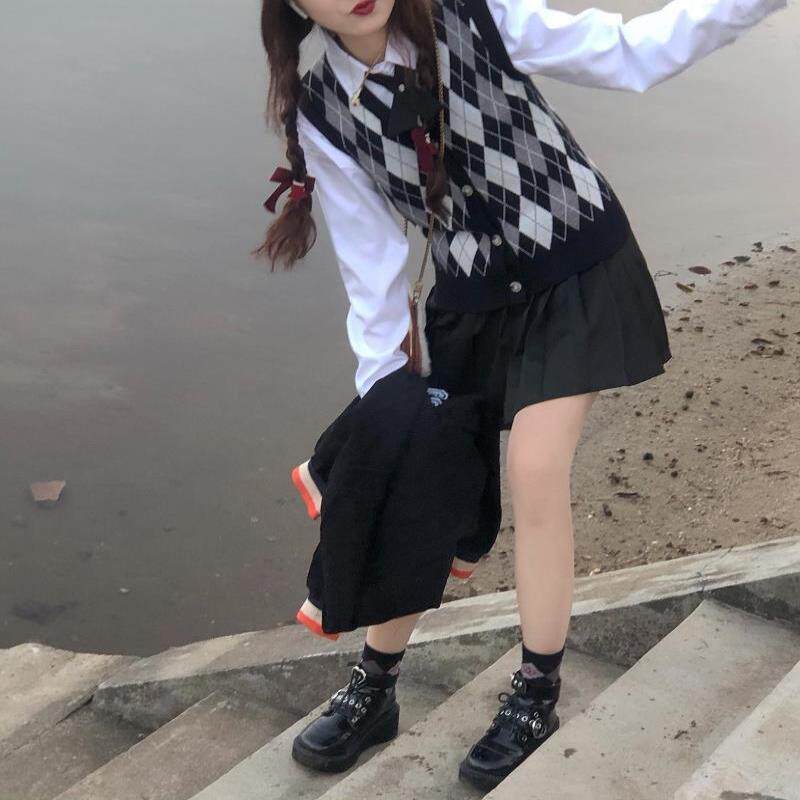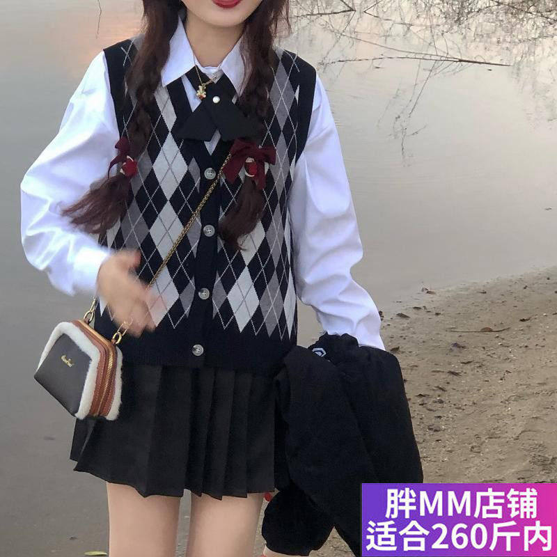 Трикотажный свитер с ромбовидным узором, жилет, рубашка, юбка в складку, комплект, большой размер