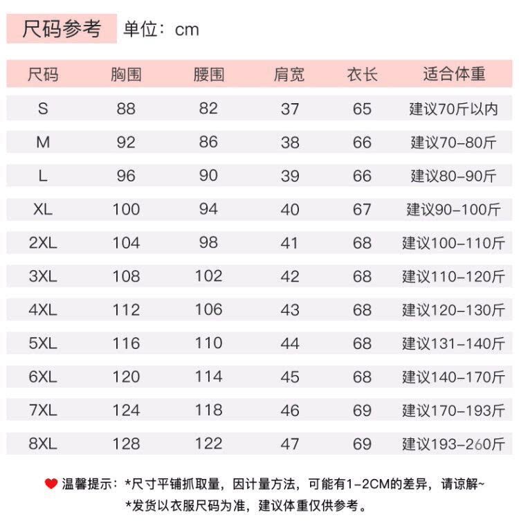 | Размер: | S (предложение в течение 70 фунтов), М (предложение 70-80 кот), L (предложение 80-90 кот), XL (рекомендуется 90-100 кот), 2xl (предложение 100-110 Catties), 3xl (предложение 110-120 кот), 4xl (рекомендуется 120-130 кот), 5xl (рекомендуется 131-140 кот), 6xl (предложение 140-170 Catties), 7xl (рекомендуется 170-193 котли, 8xl (предложение 193-260 Catties) |
