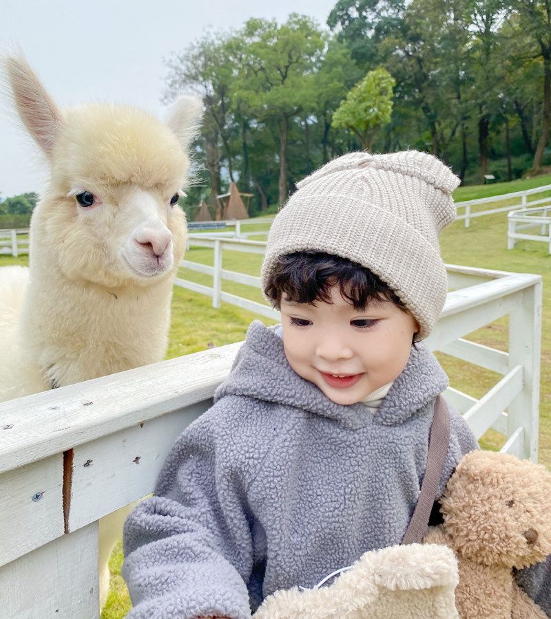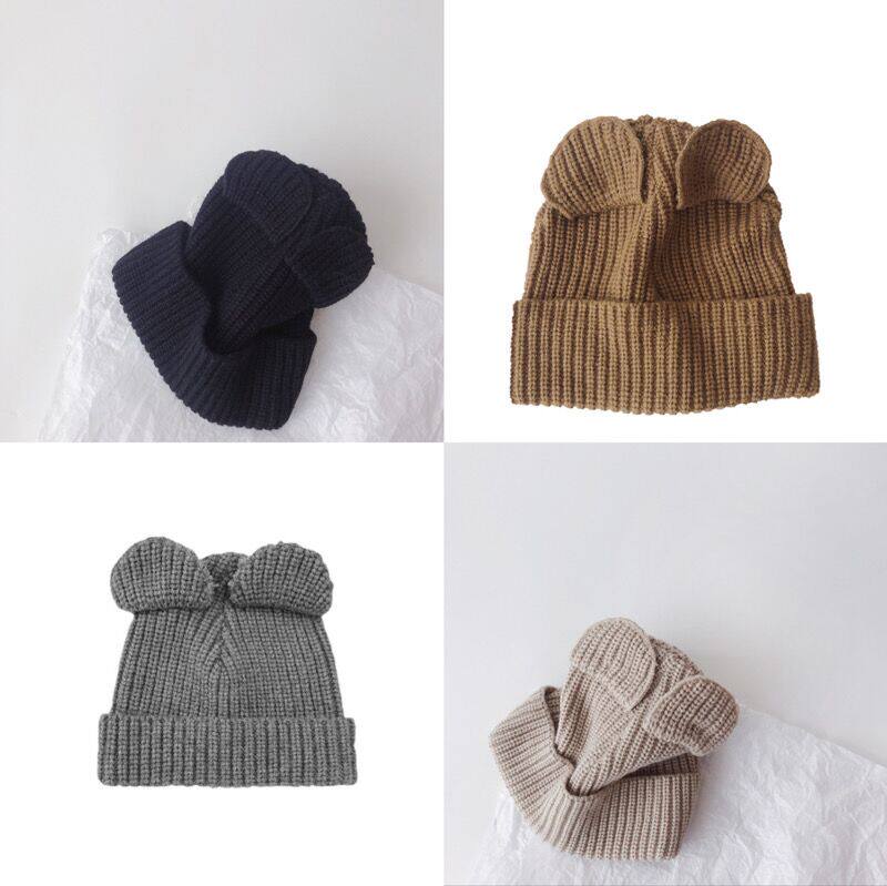 Mo7Kids Новая детская шерстяная шляпа, корейская версия милых медвежьих ушей капюшона