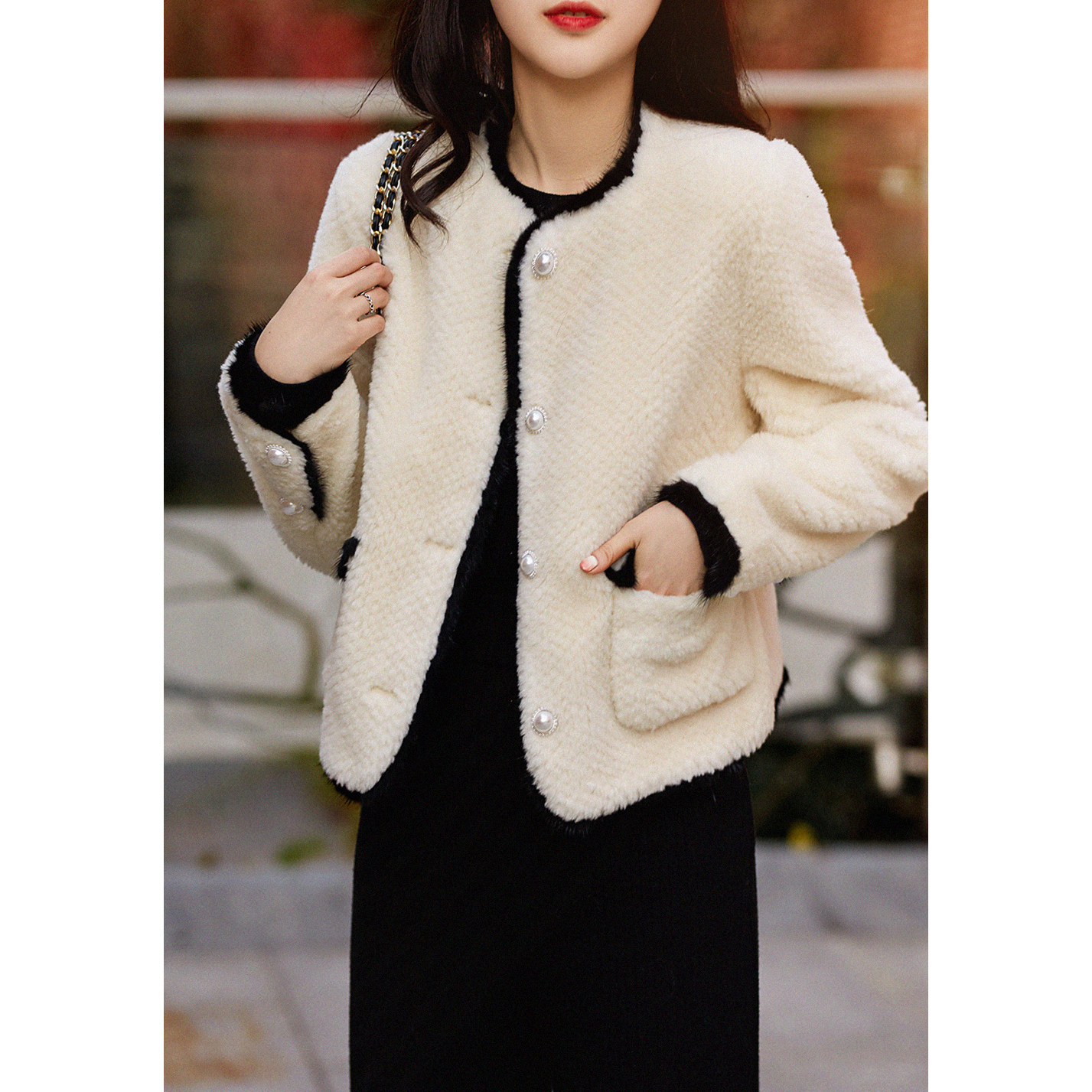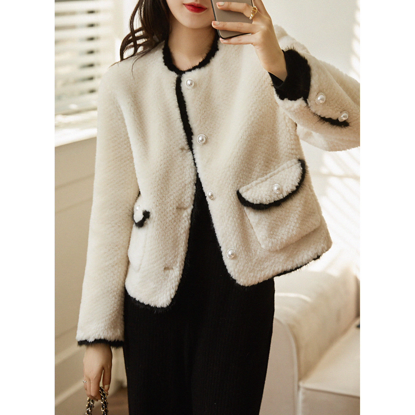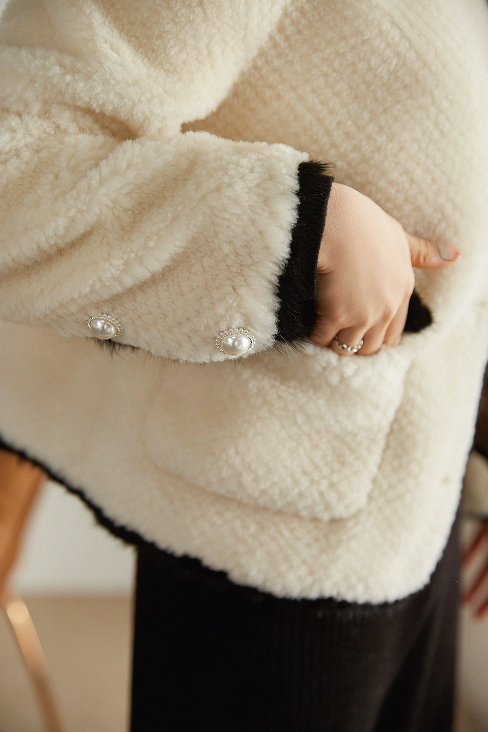 い & и теплые объятия обнимают его шерсть из баранины.