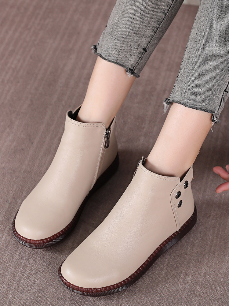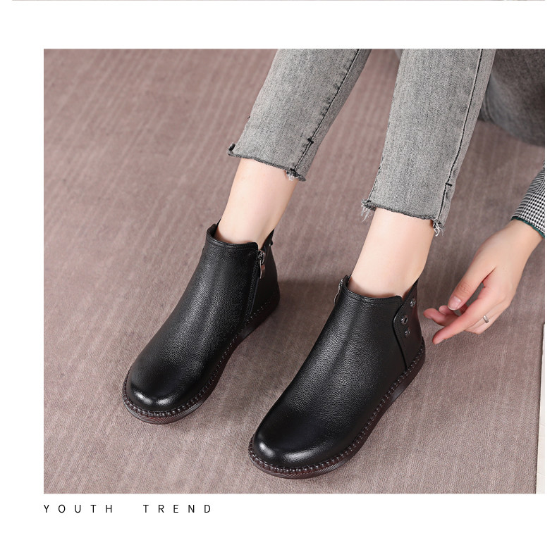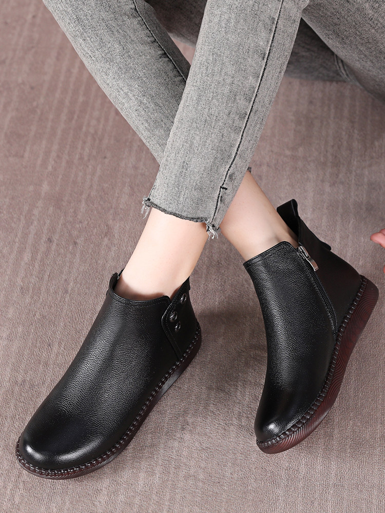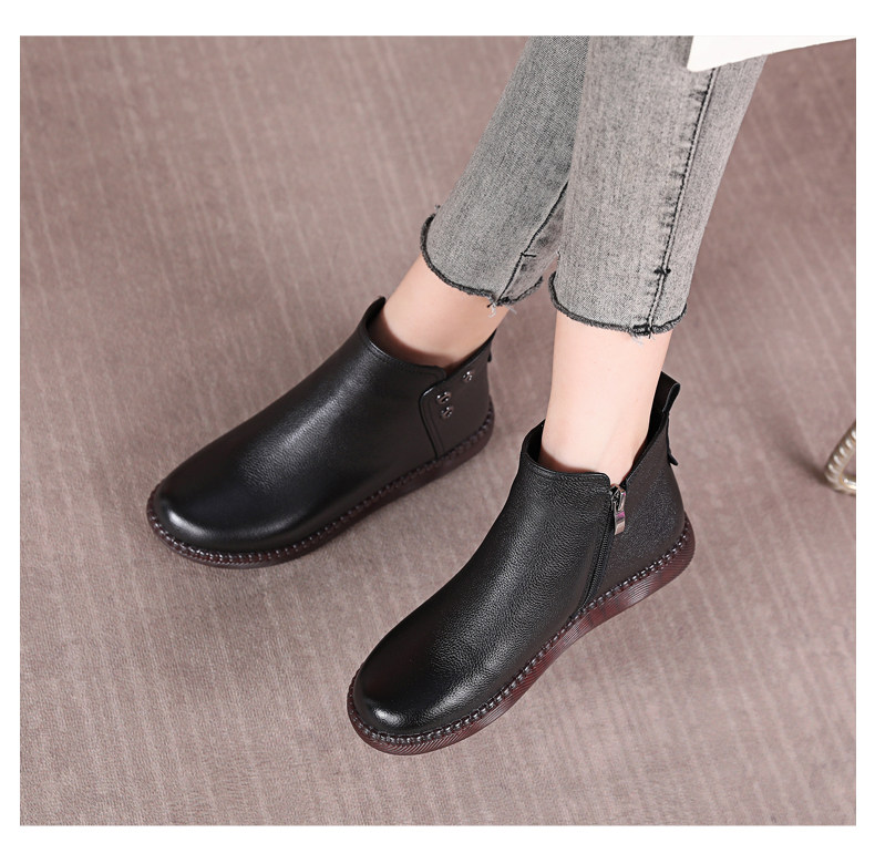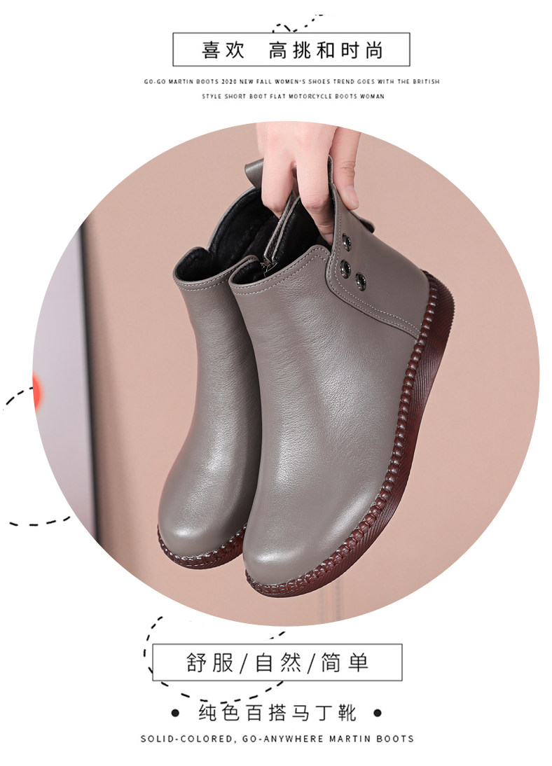 Martens, короткие сапоги для матери, флисовые универсальные ботинки, из натуральной кожи, осенние, большой размер, мягкая подошва
