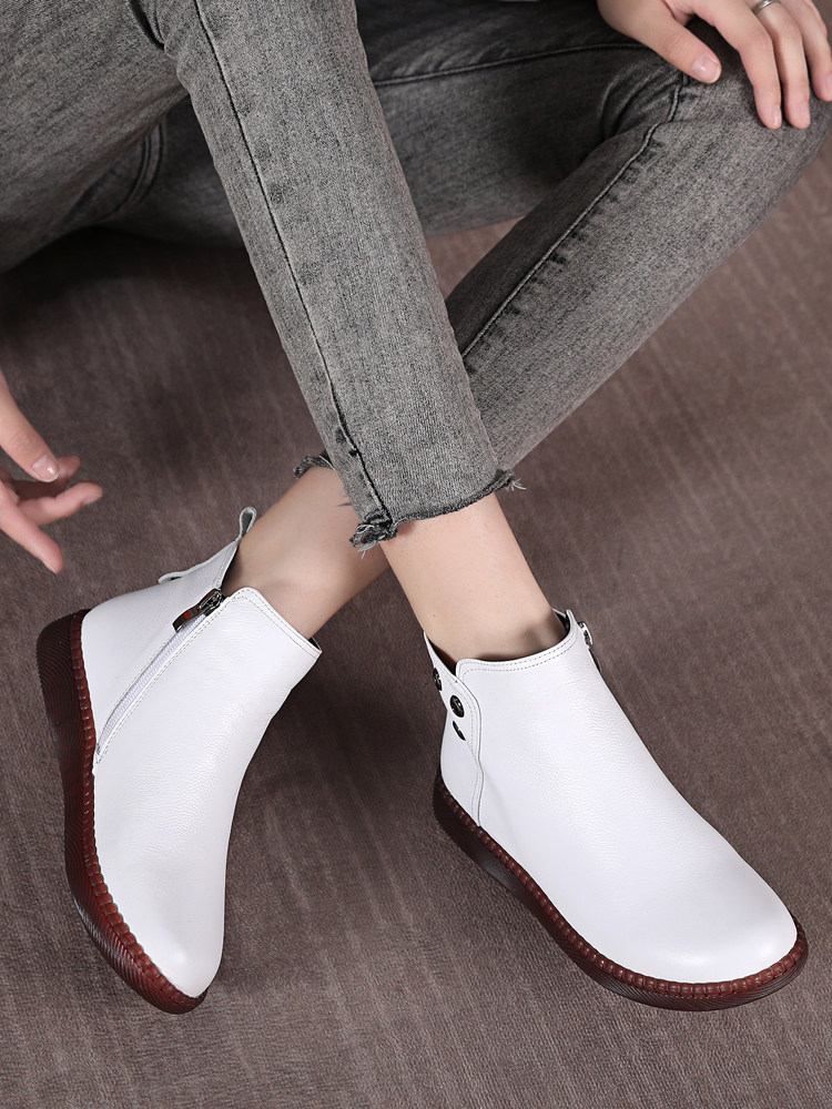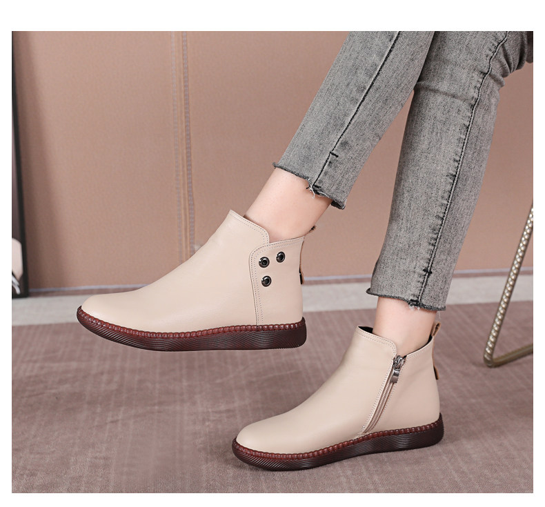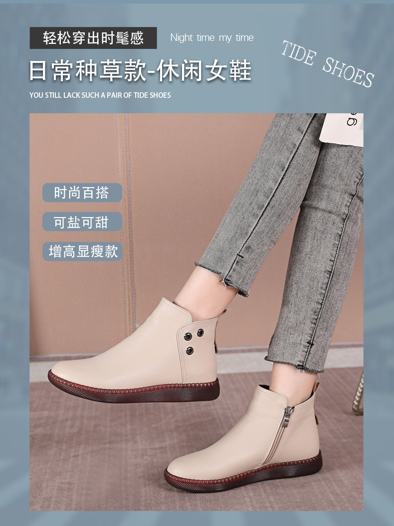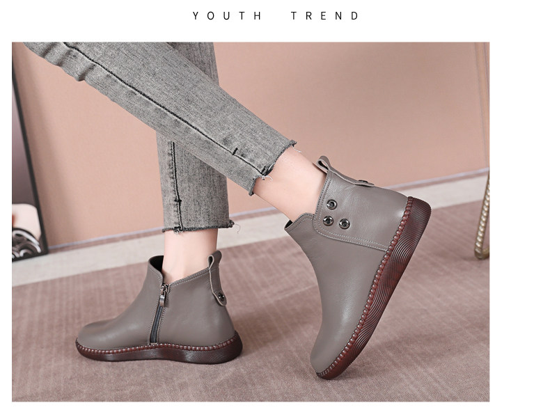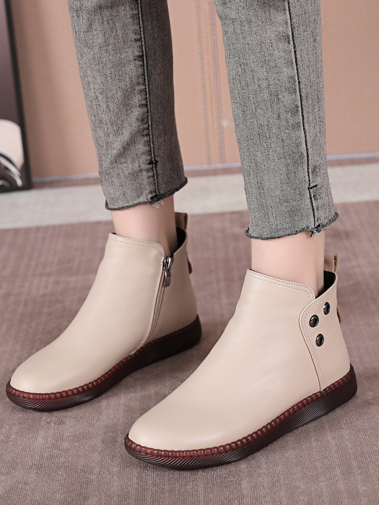 Martens, короткие сапоги для матери, флисовые универсальные ботинки, из натуральной кожи, осенние, большой размер, мягкая подошва