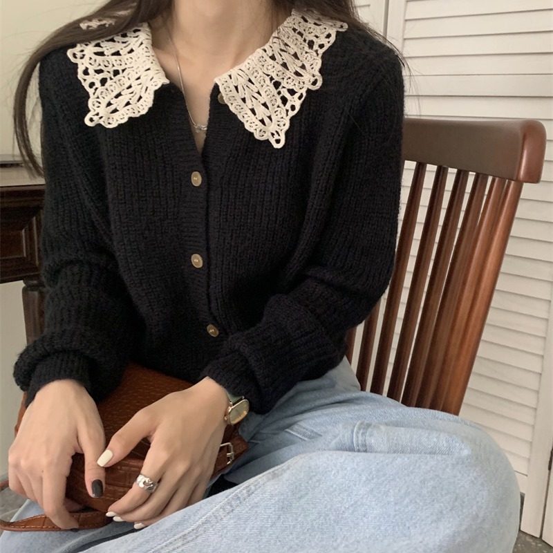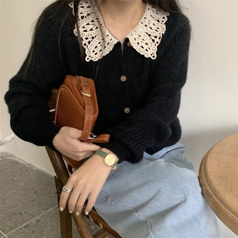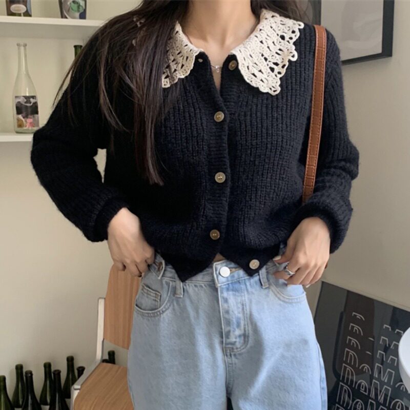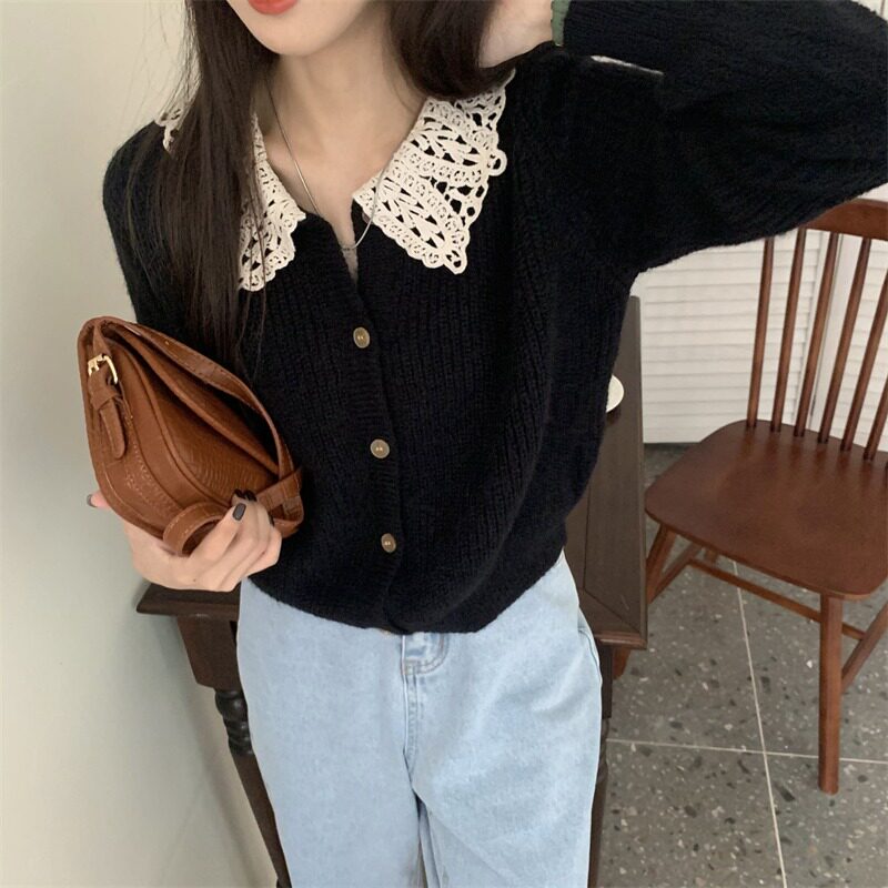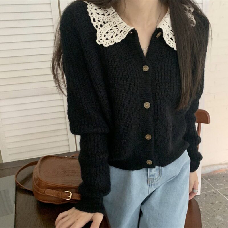 Черный вязаный кардиганский свитер для женщин осенью и зимним дунгуанским даланга