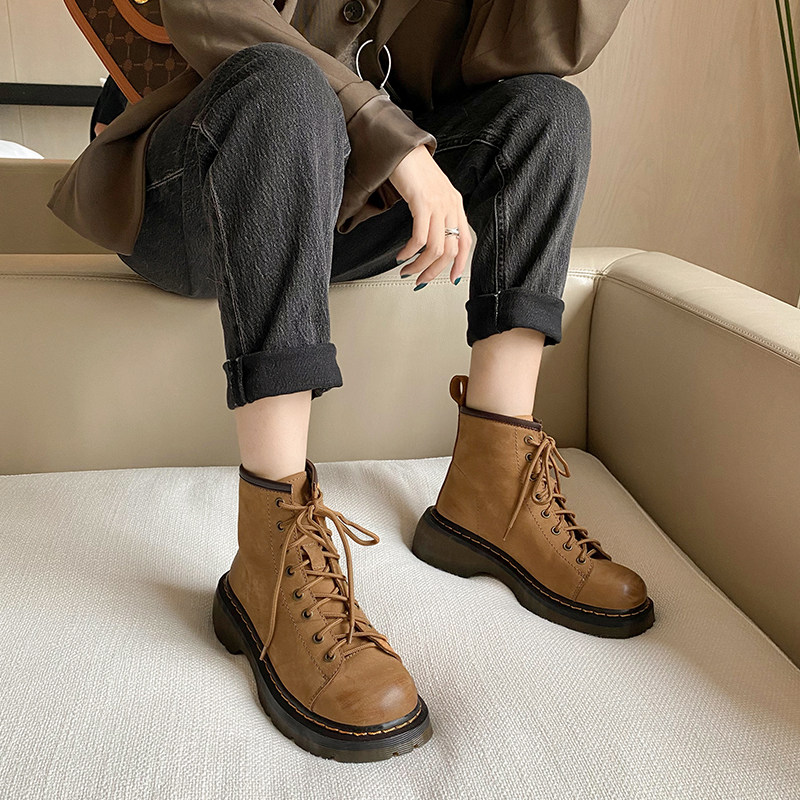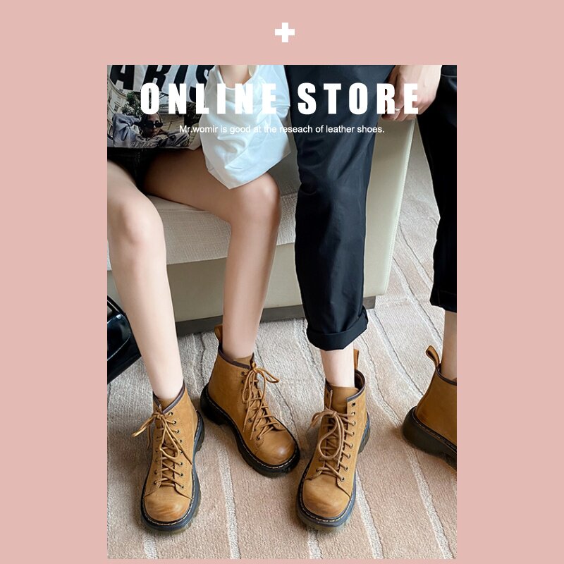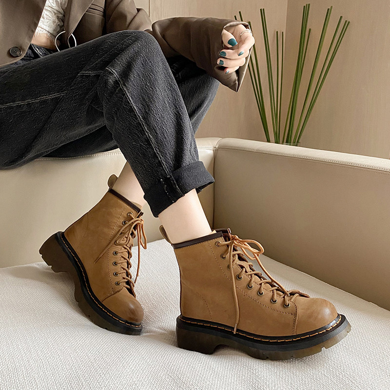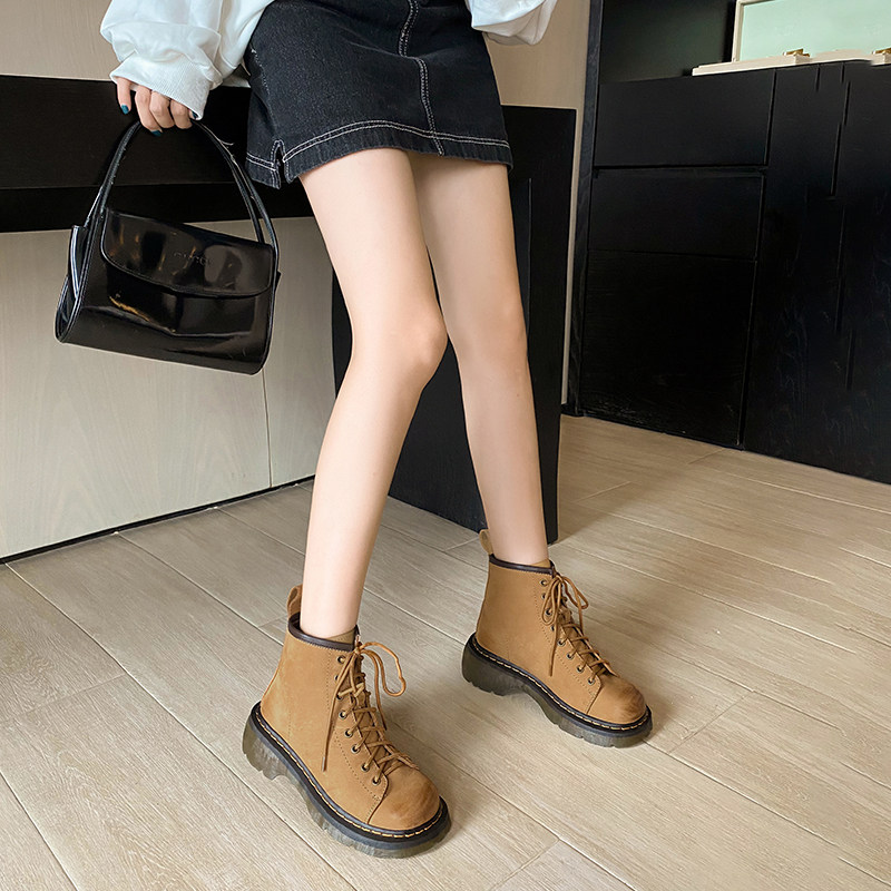 Martens, демисезонные короткие сапоги подходит для мужчин и женщин, ботинки, для влюбленных, из натуральной кожи, в корейском стиле