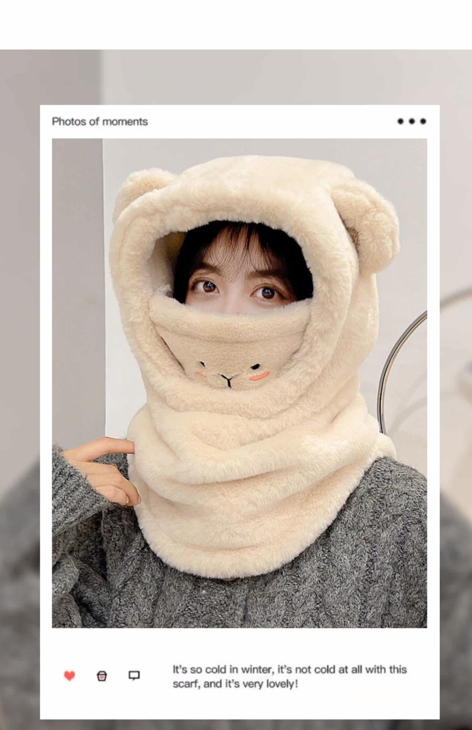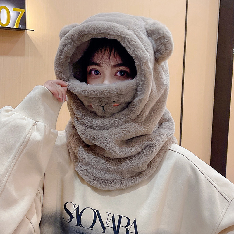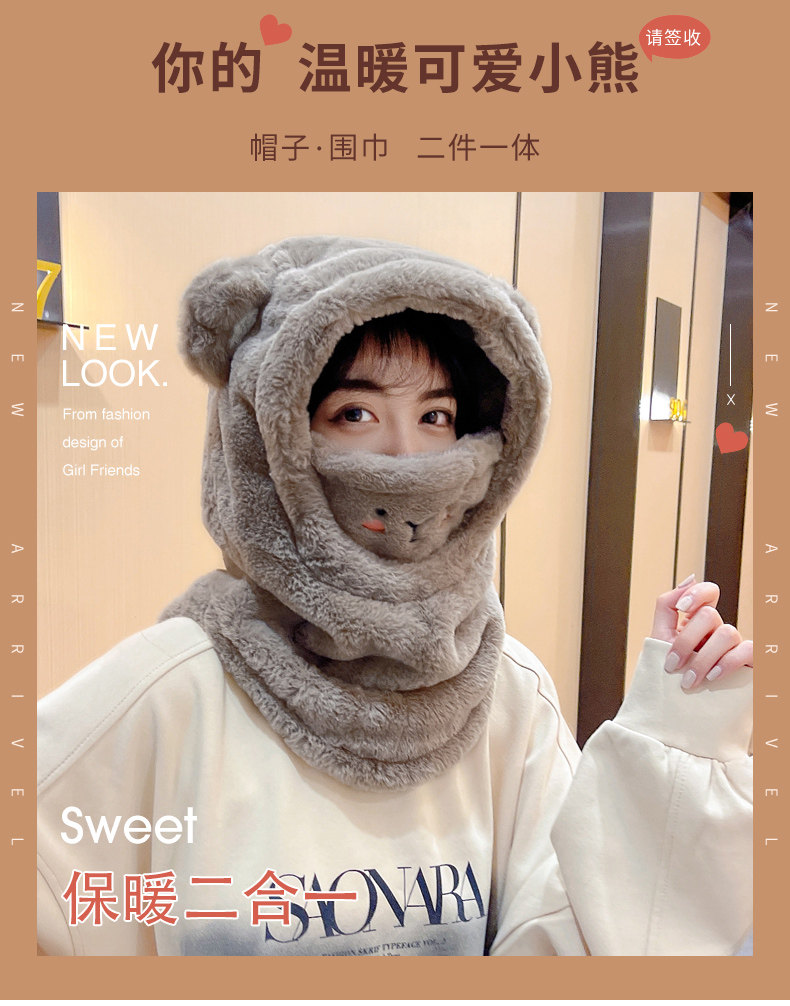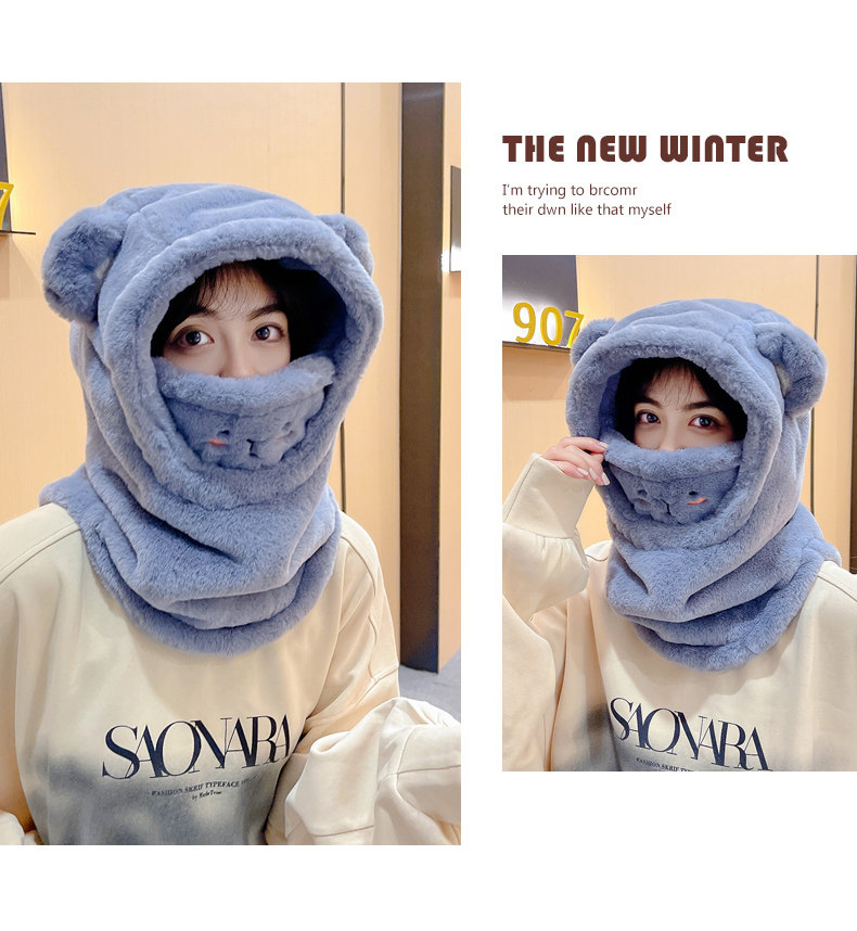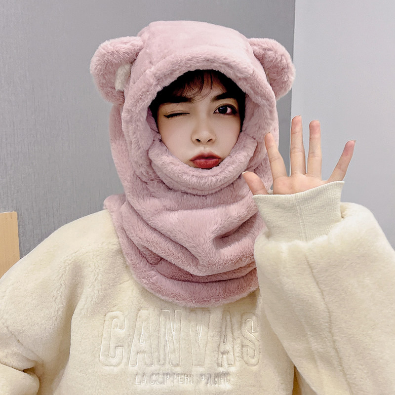 Бархатный шлем, шапка, шарф, зимняя милая маска для велоспорта, ветрозащитный электромобиль, с медвежатами