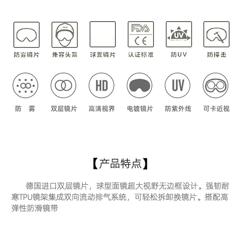 - Сферические лыжные очки белые ледяные голубые