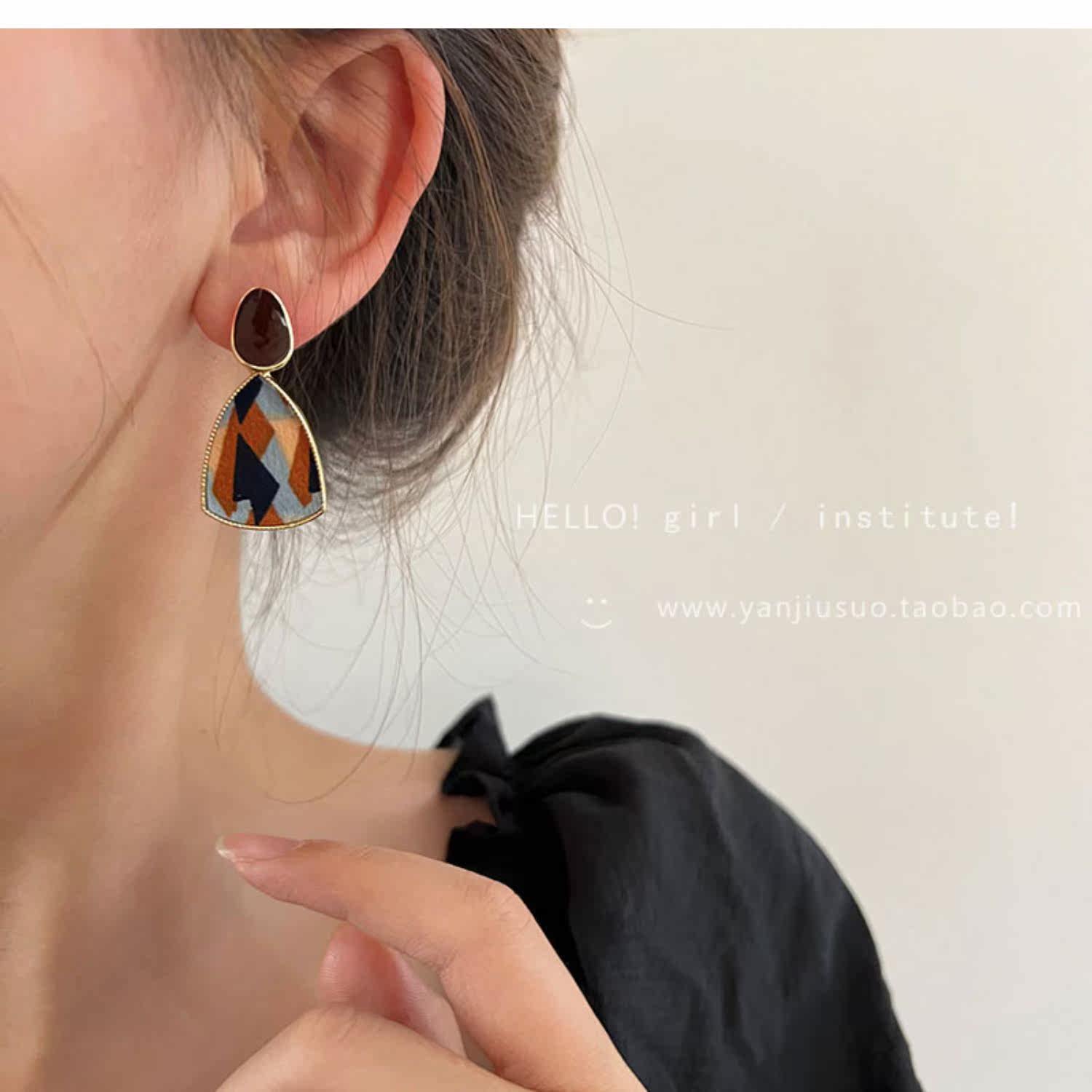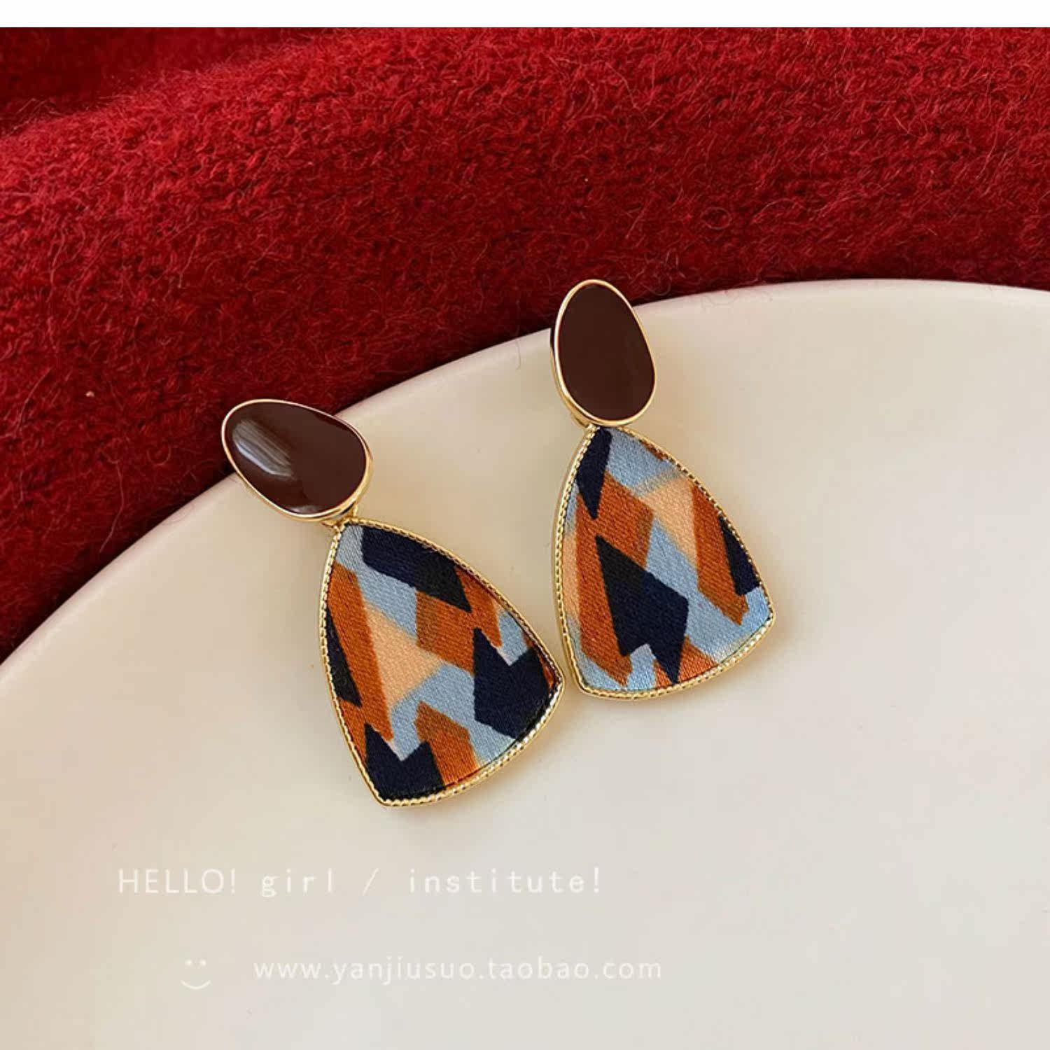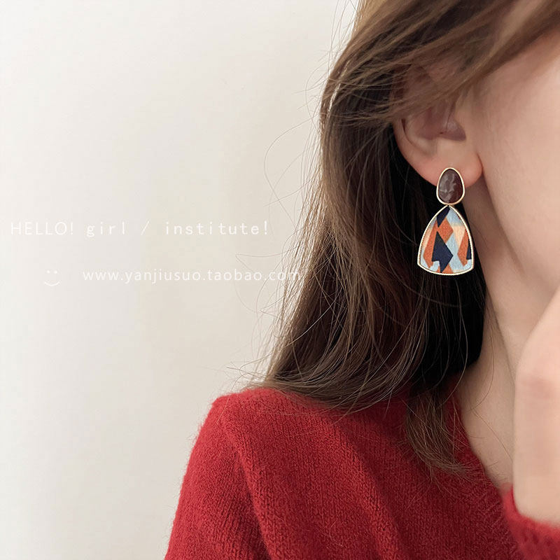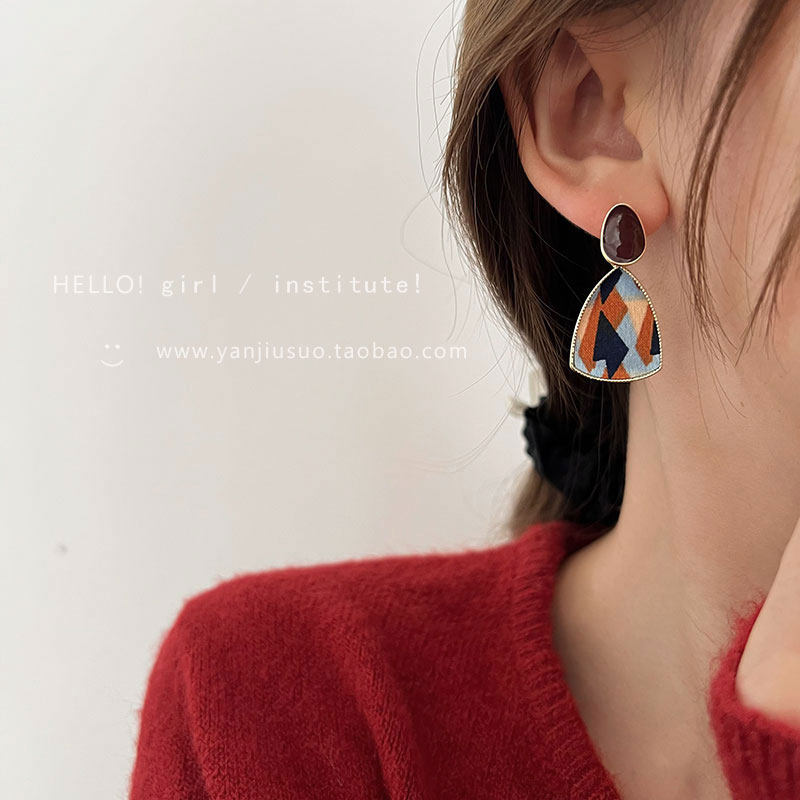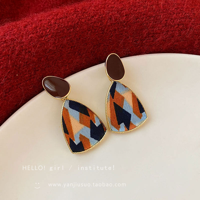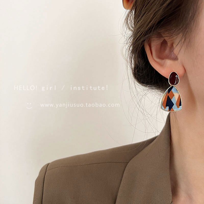 Ретро бордовые геометричные демисезонные модные универсальные серьги