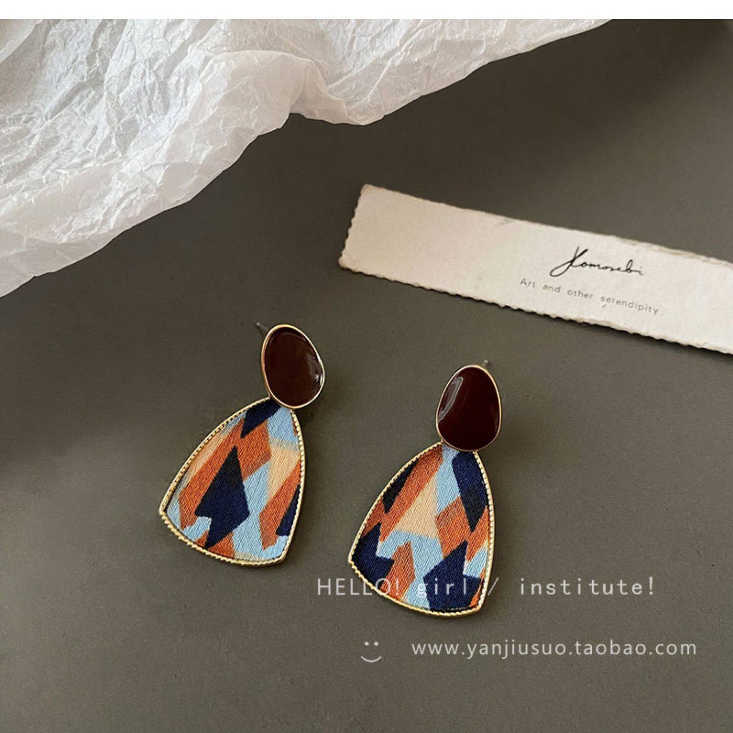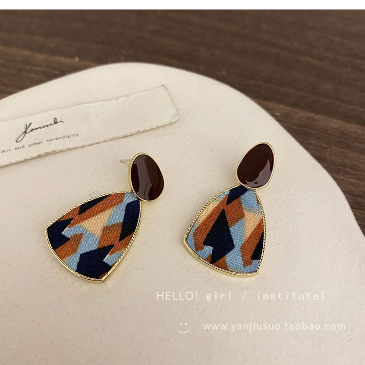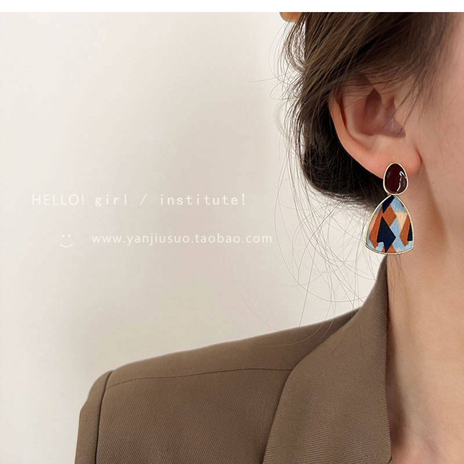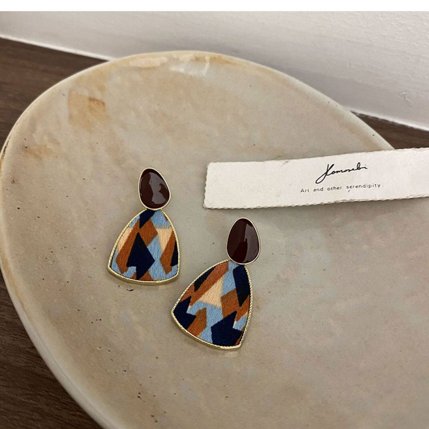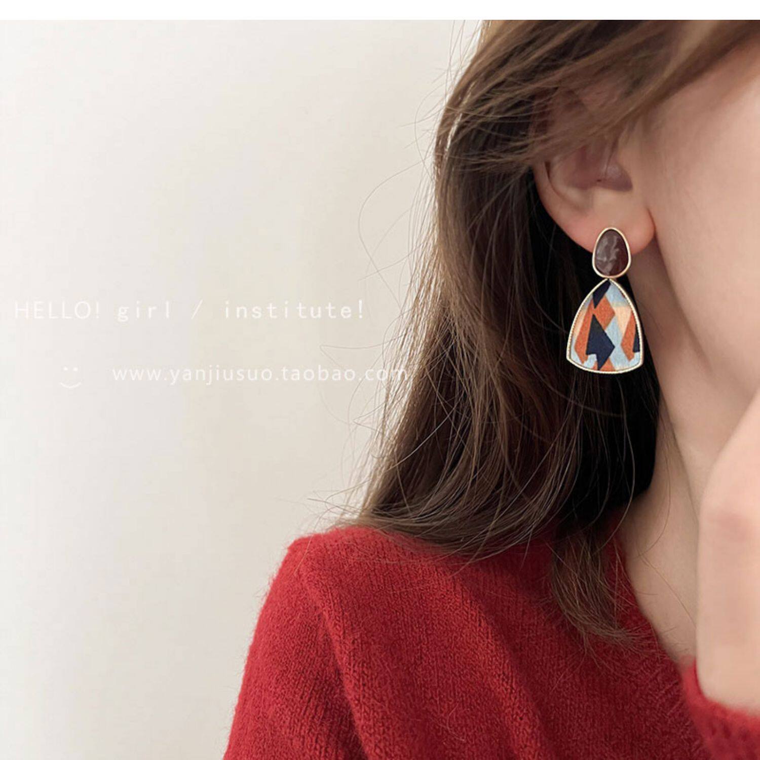 Ретро бордовые геометричные демисезонные модные универсальные серьги