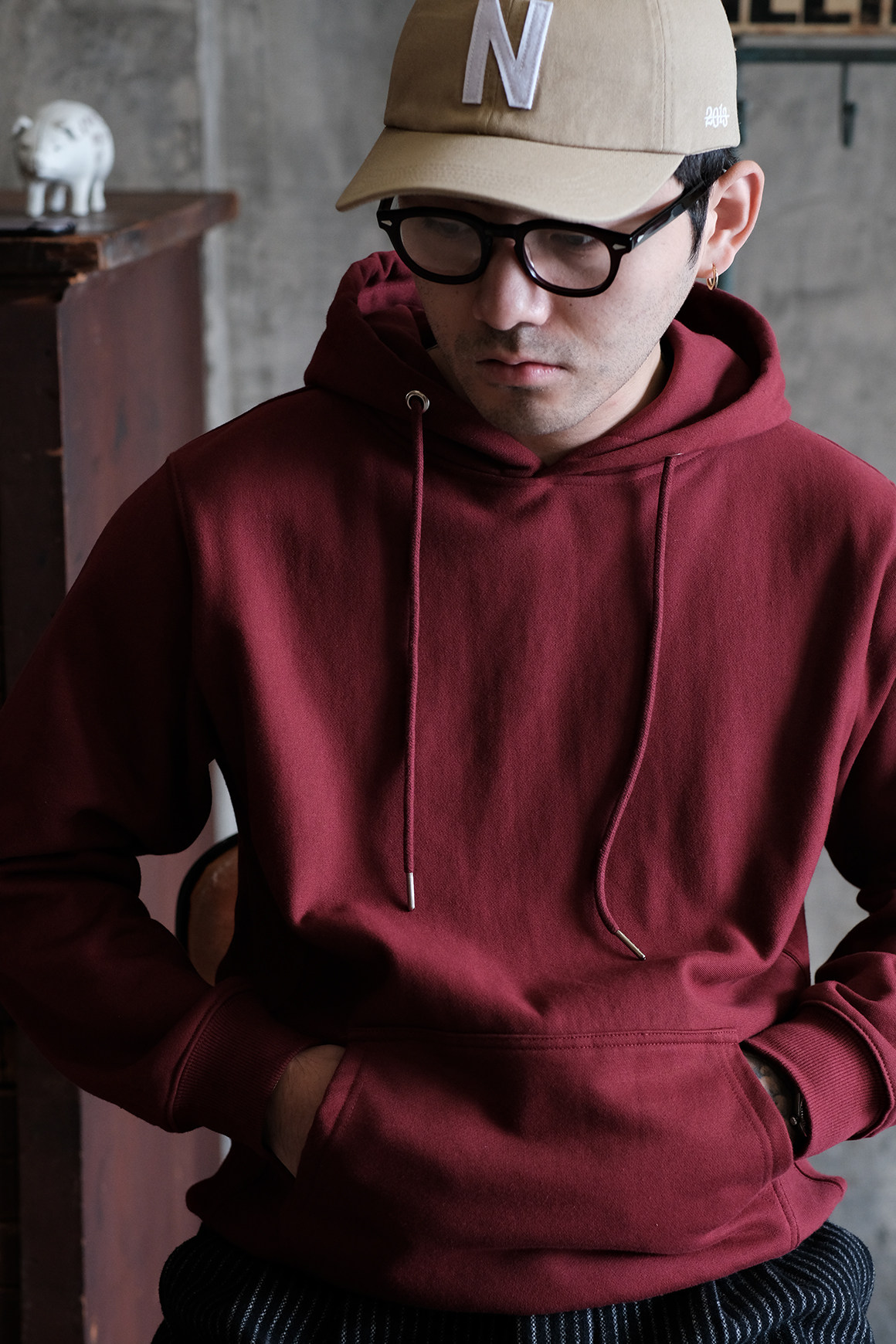 Профсоюз ретро -свитер с капюшоном два -утолщенные базовые модели классический универсальный Lu8006