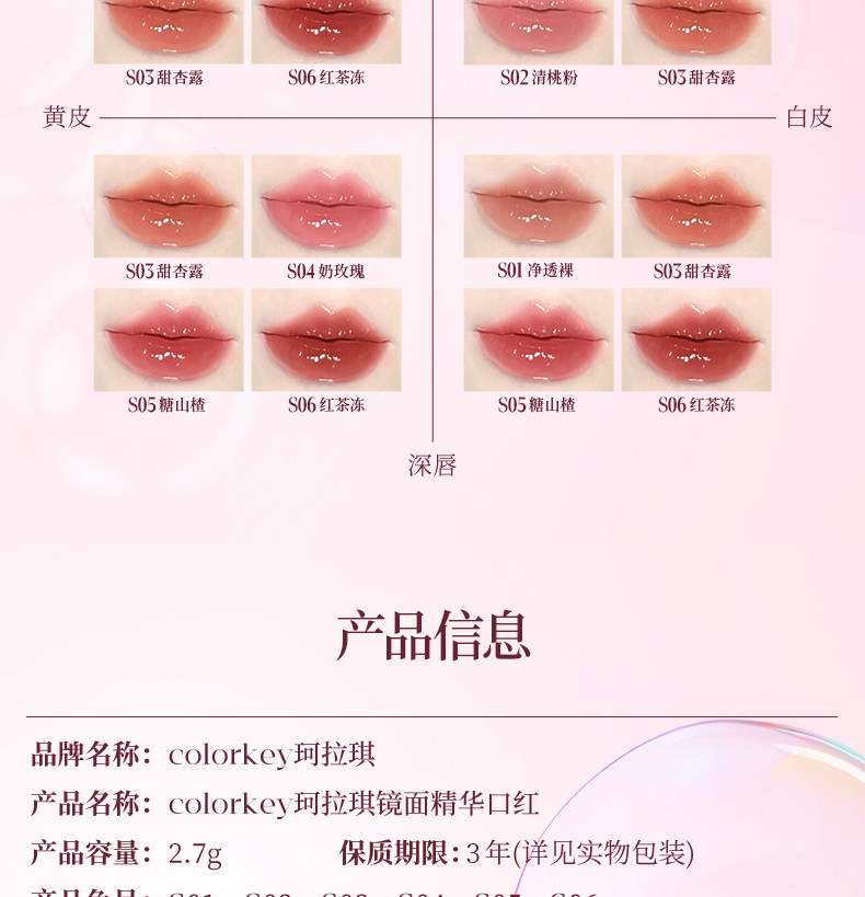 Colorkey/珂拉琪 Эссенция, матовая помада, блеск для губ, зеркальный эффект, полупрозрачная растушевка, интенсивное увлажнение