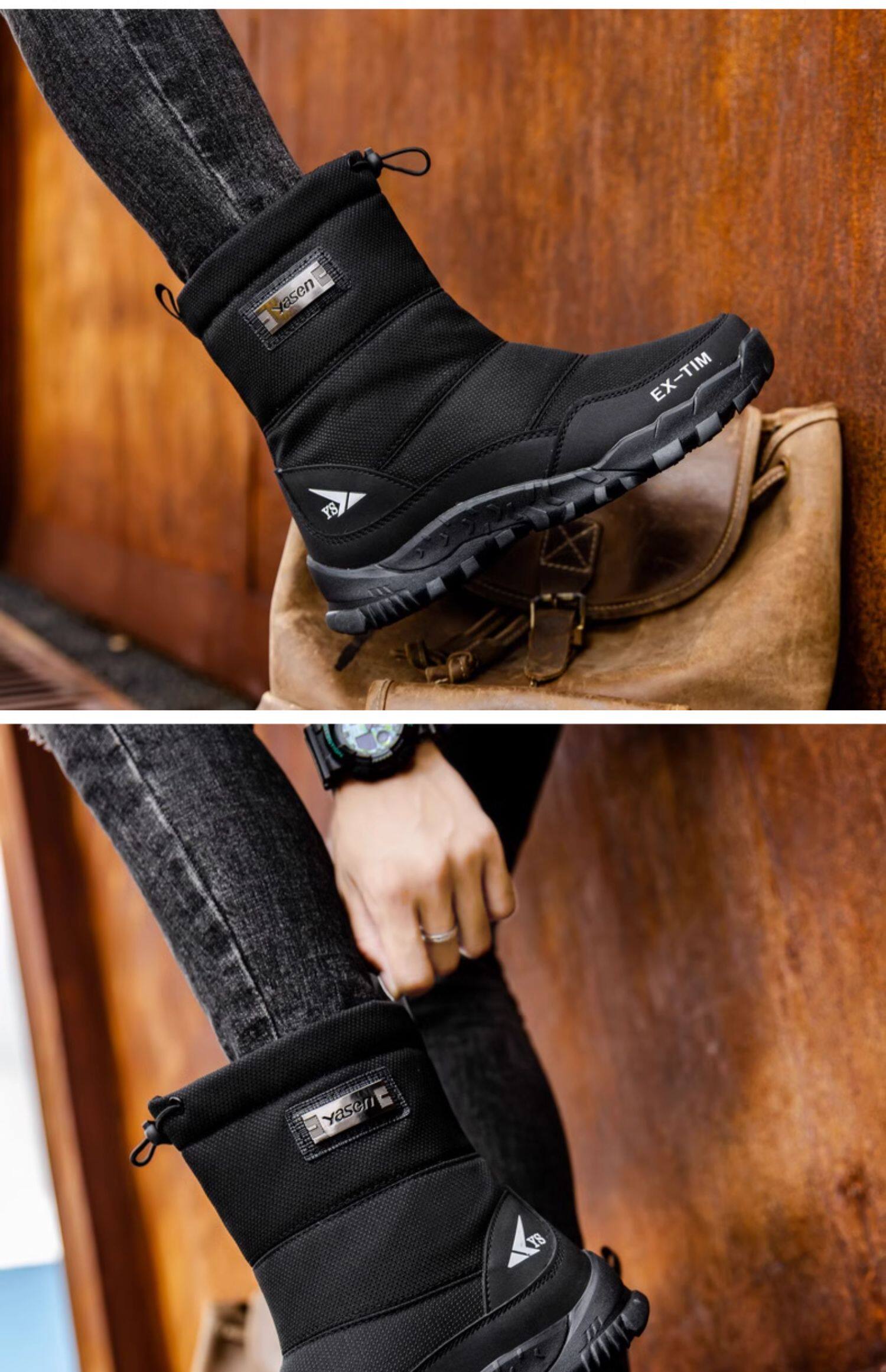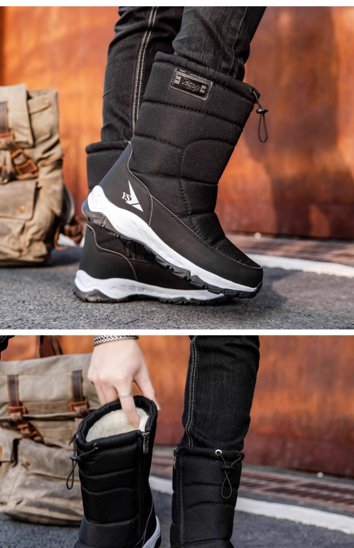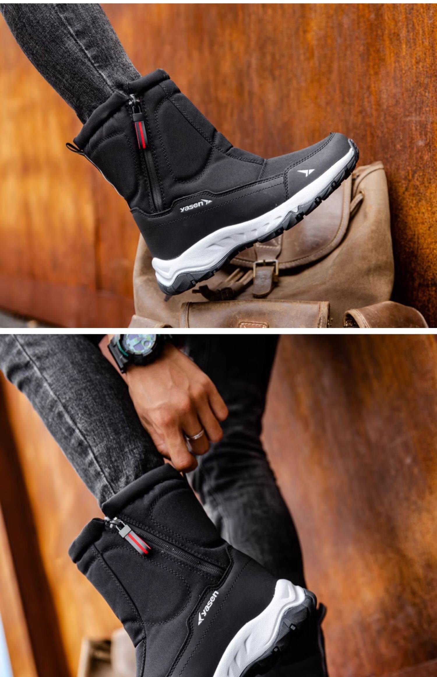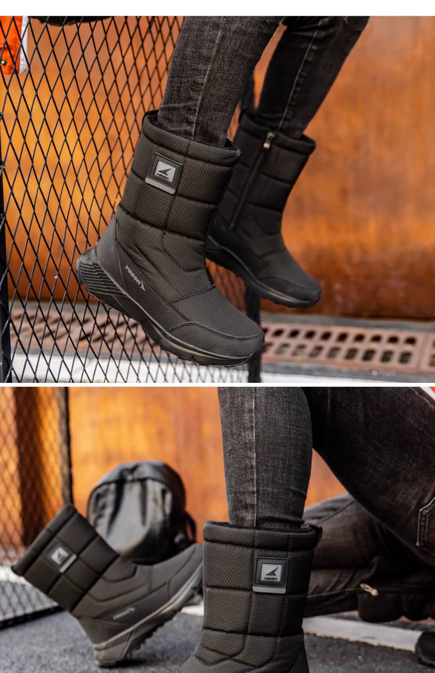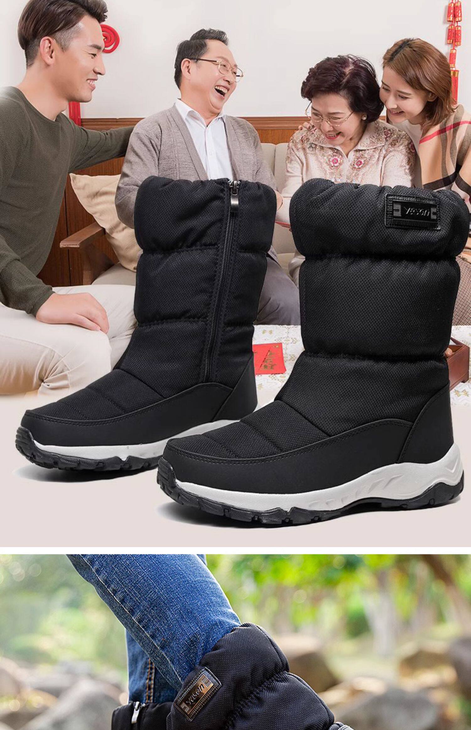 Высокие нескользящие удерживающие тепло мужские зимние высокие сапоги, для среднего возраста