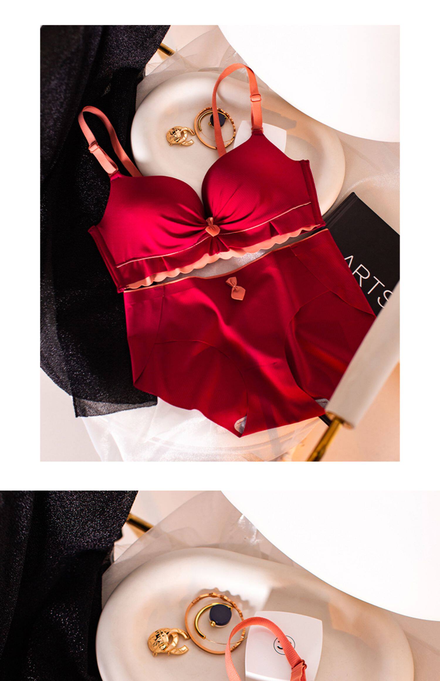Красное нижнее белье, оберег на день рождения, браслет с одной бусиной, бюстгальтер пуш-ап, комфортный бюстгалтер, комплект