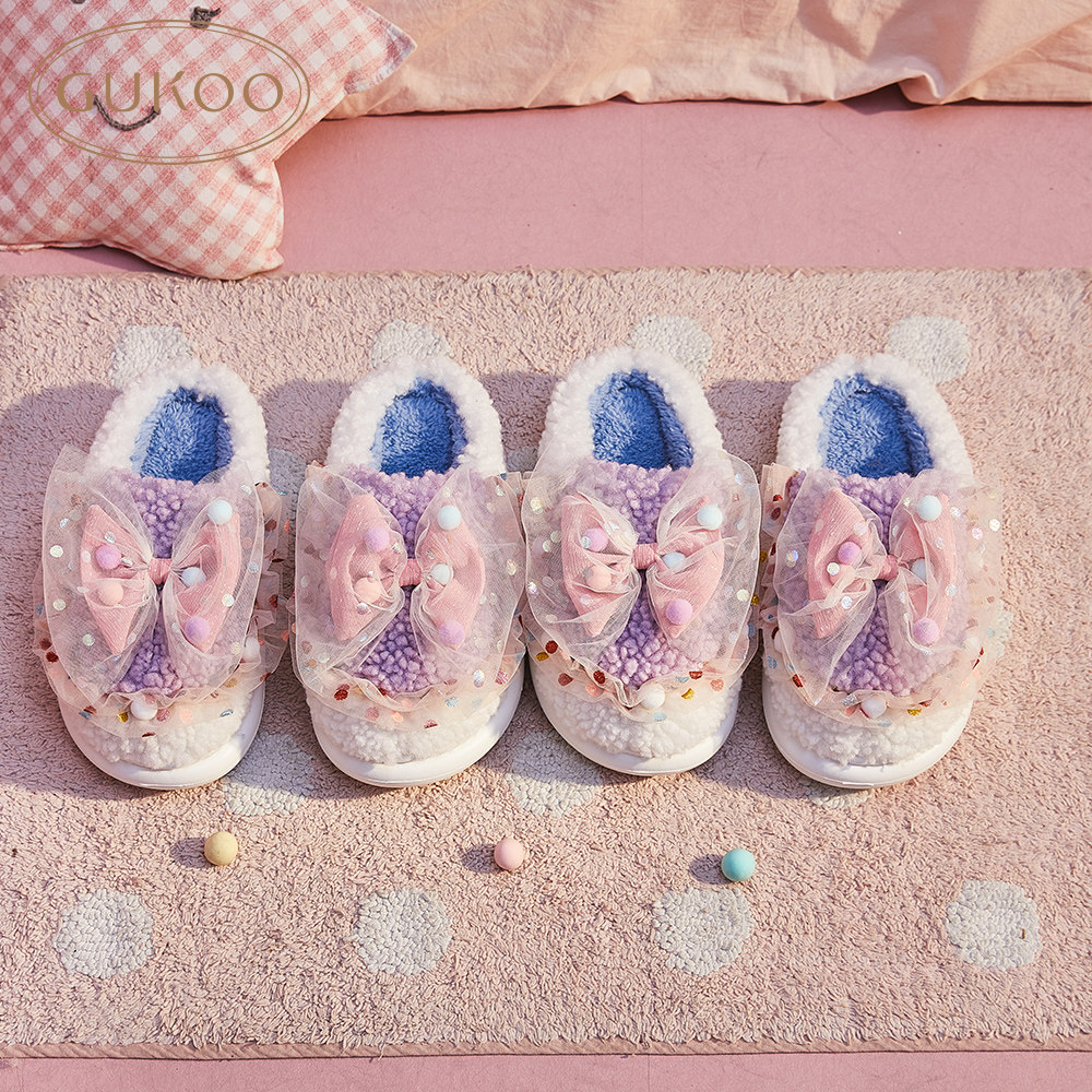 Демисезонные тапочки, милая зимняя обувь с бантиком
