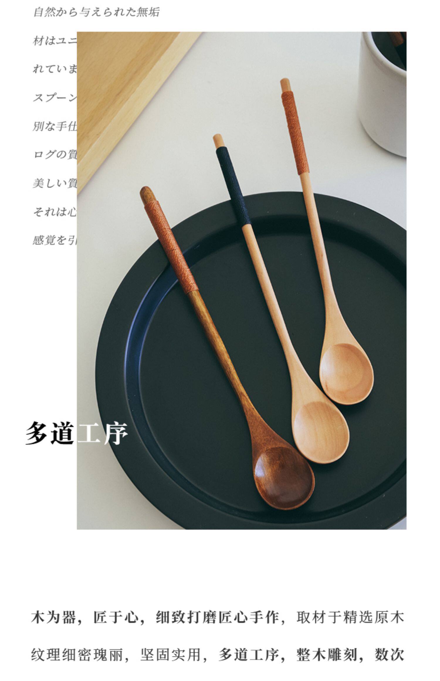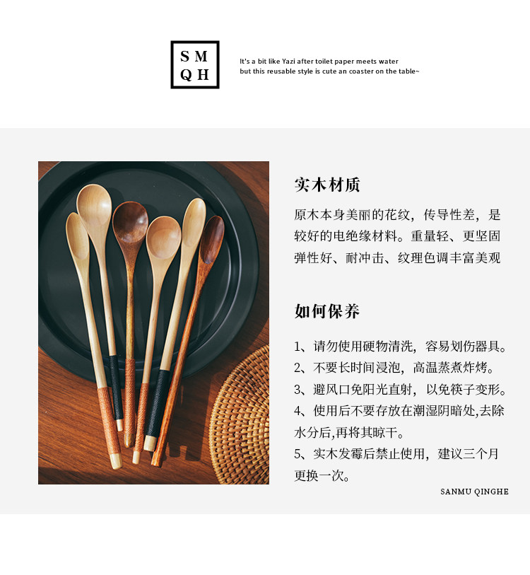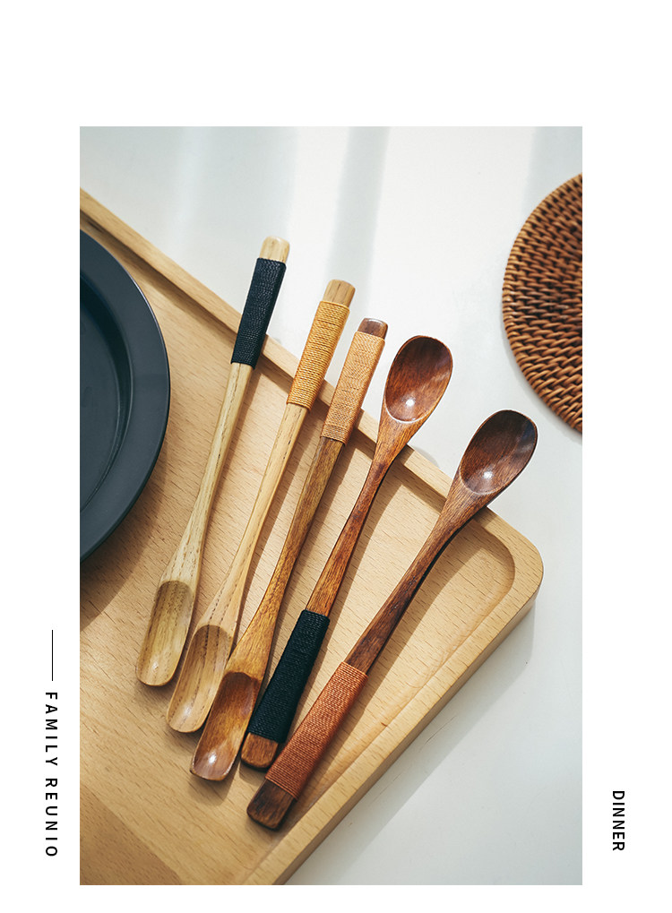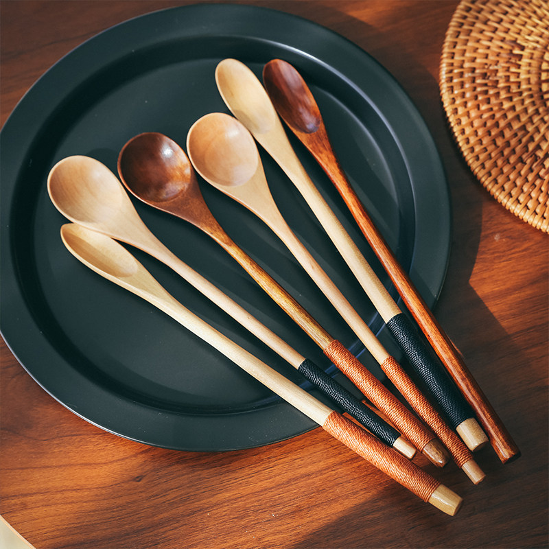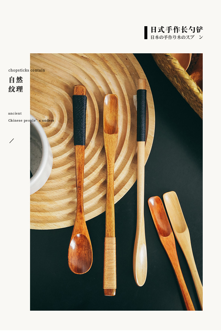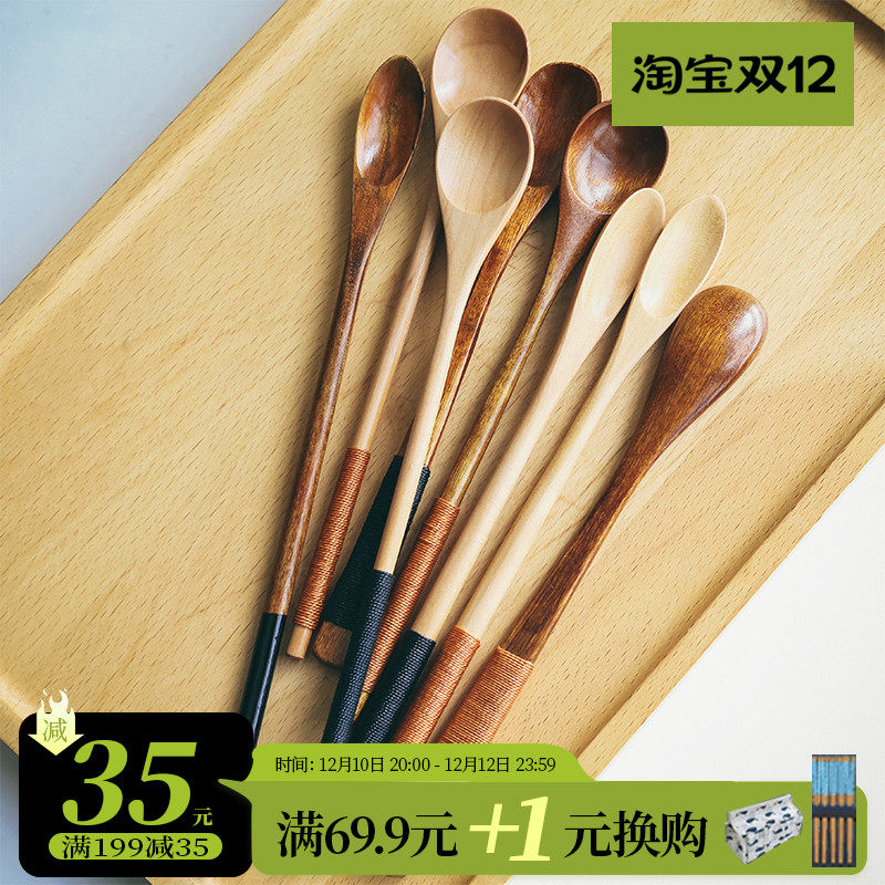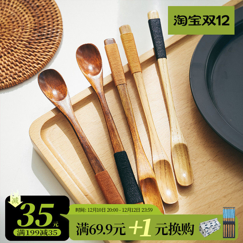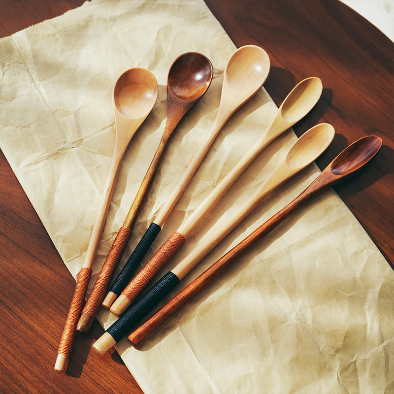 Японская стиль сплошной дерево чайная ложка одиночная чайная лопата маленькая ложка кофейная ложка Смешивание ложки, чтобы взять порошковую серую ложку ложек с длинной ложкой