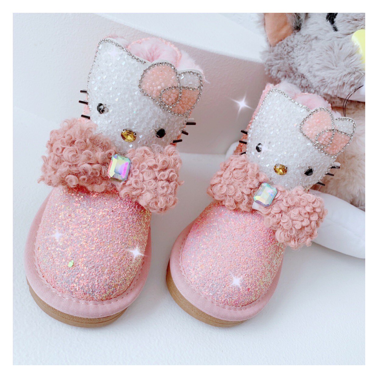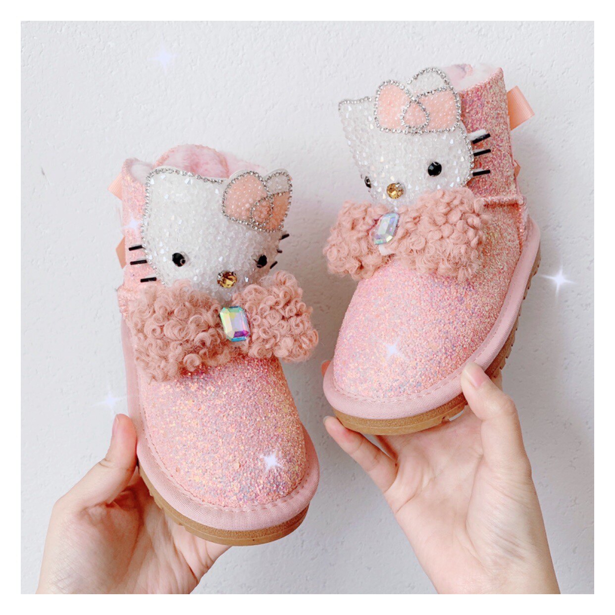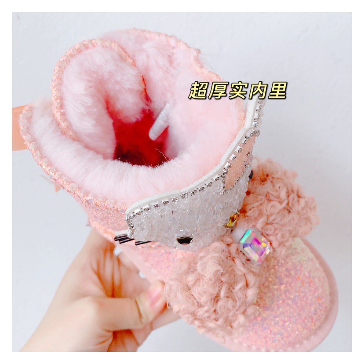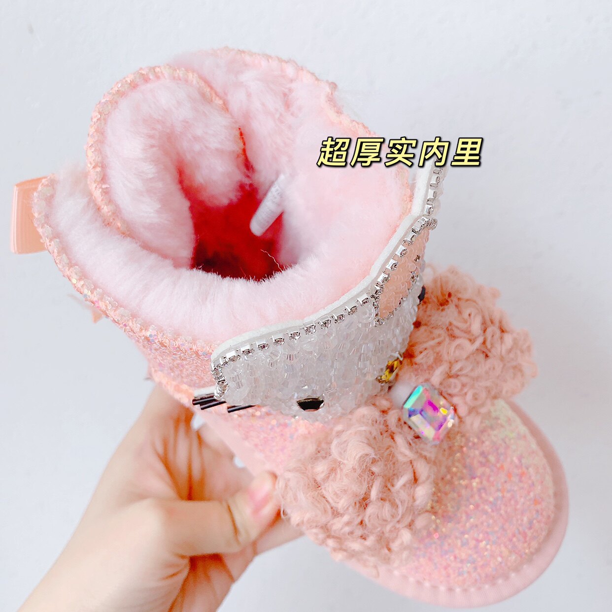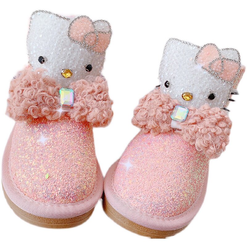 Детские зимние розовые сапоги, флисовые удерживающие тепло блестки для ногтей с бантиком, 2022, из натуральной кожи