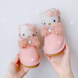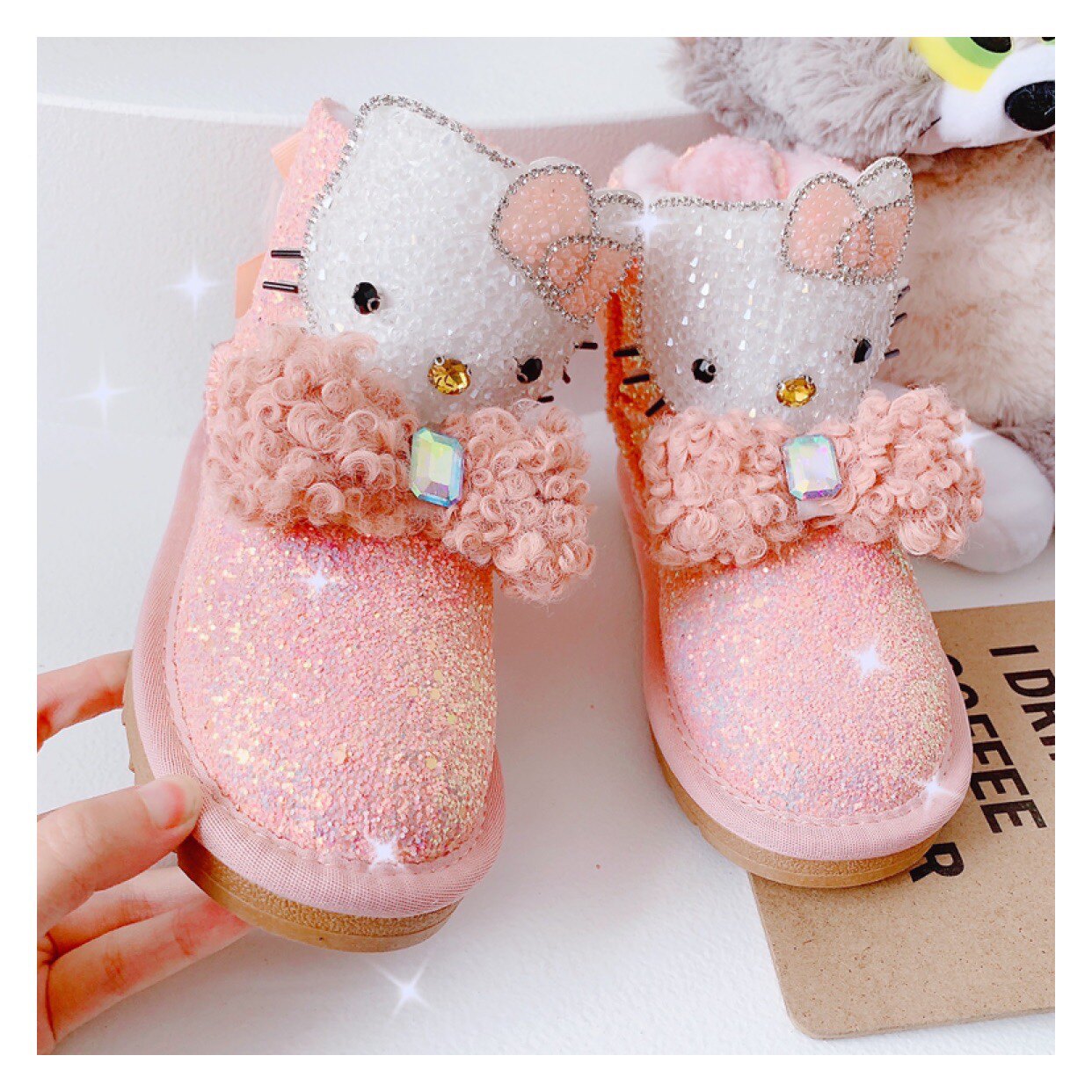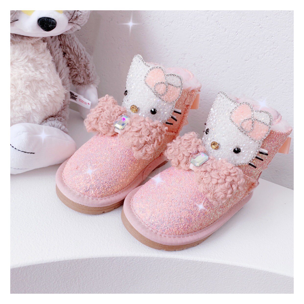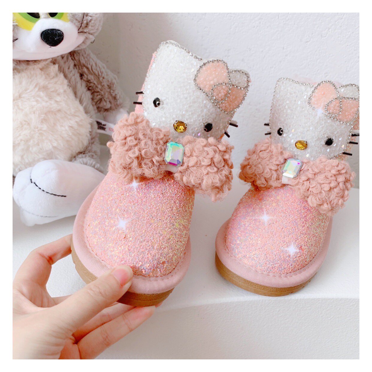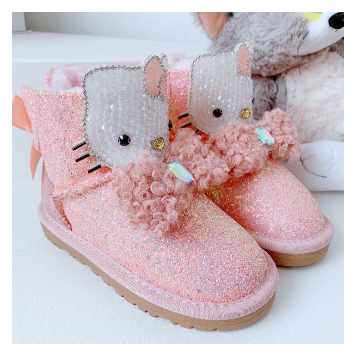 Детские зимние розовые сапоги, флисовые удерживающие тепло блестки для ногтей с бантиком, 2022, из натуральной кожи
