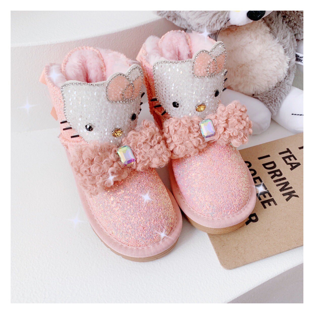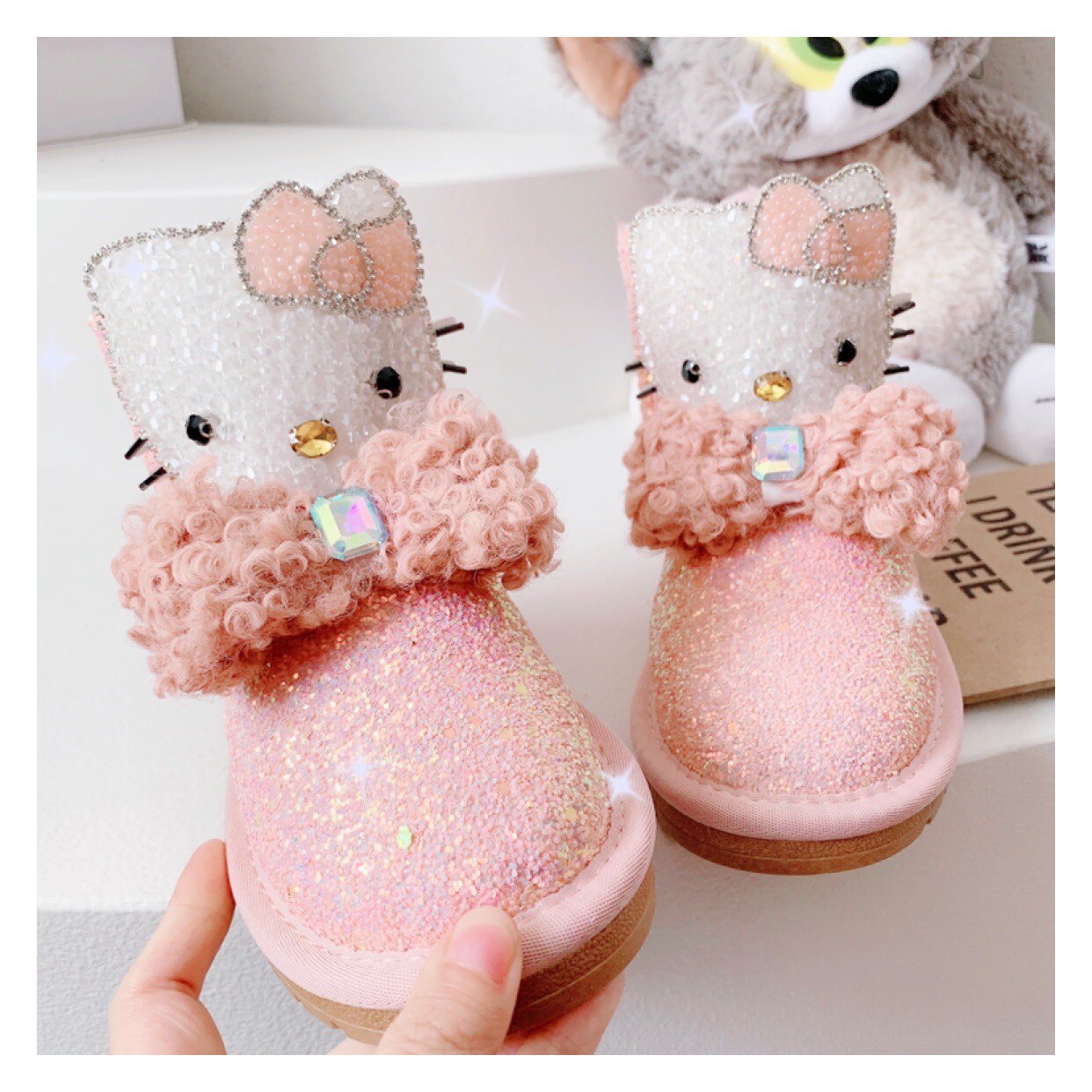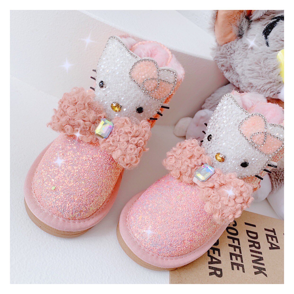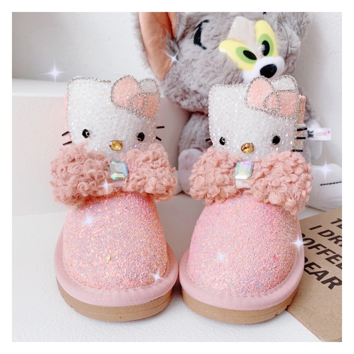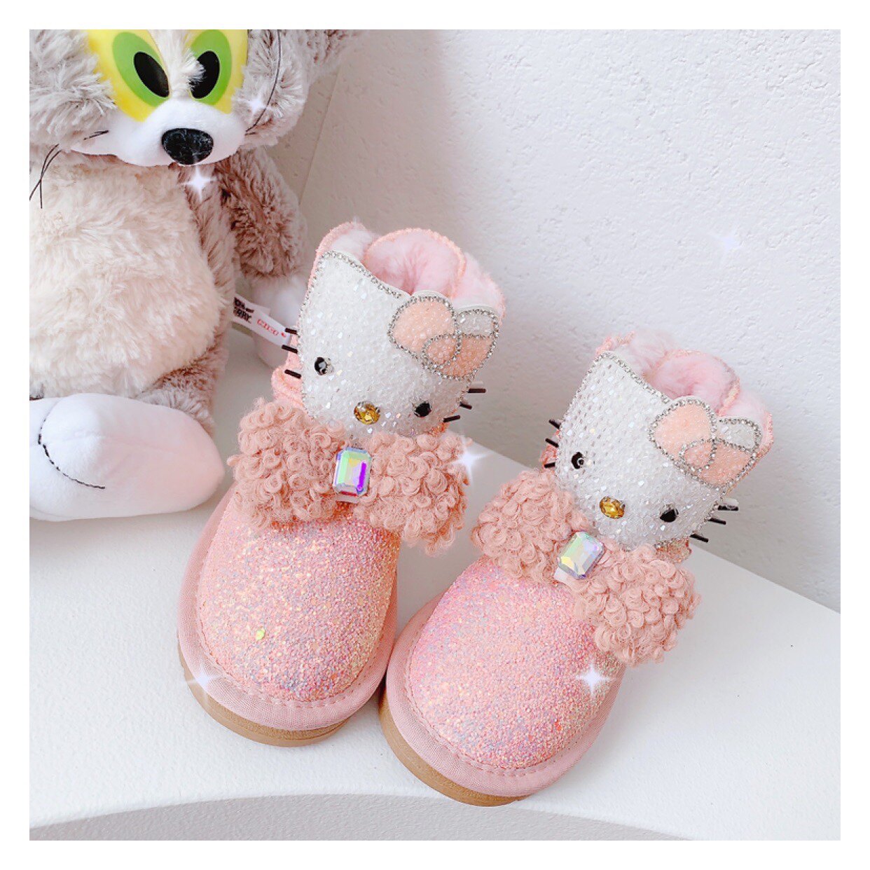 Детские зимние розовые сапоги, флисовые удерживающие тепло блестки для ногтей с бантиком, 2022, из натуральной кожи