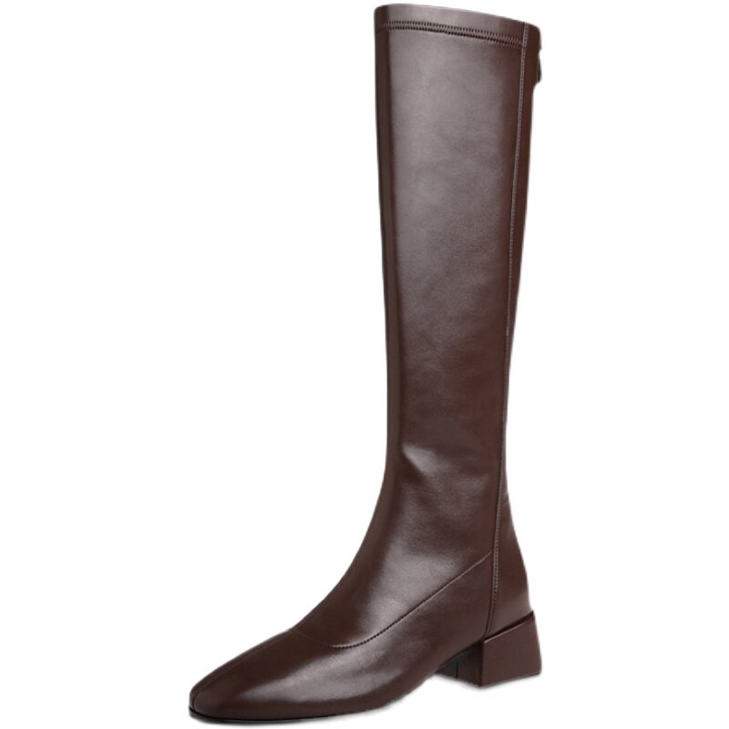 Модные зимние эластичные высокие сапоги, коллекция 2021, в корейском стиле, из натуральной кожи