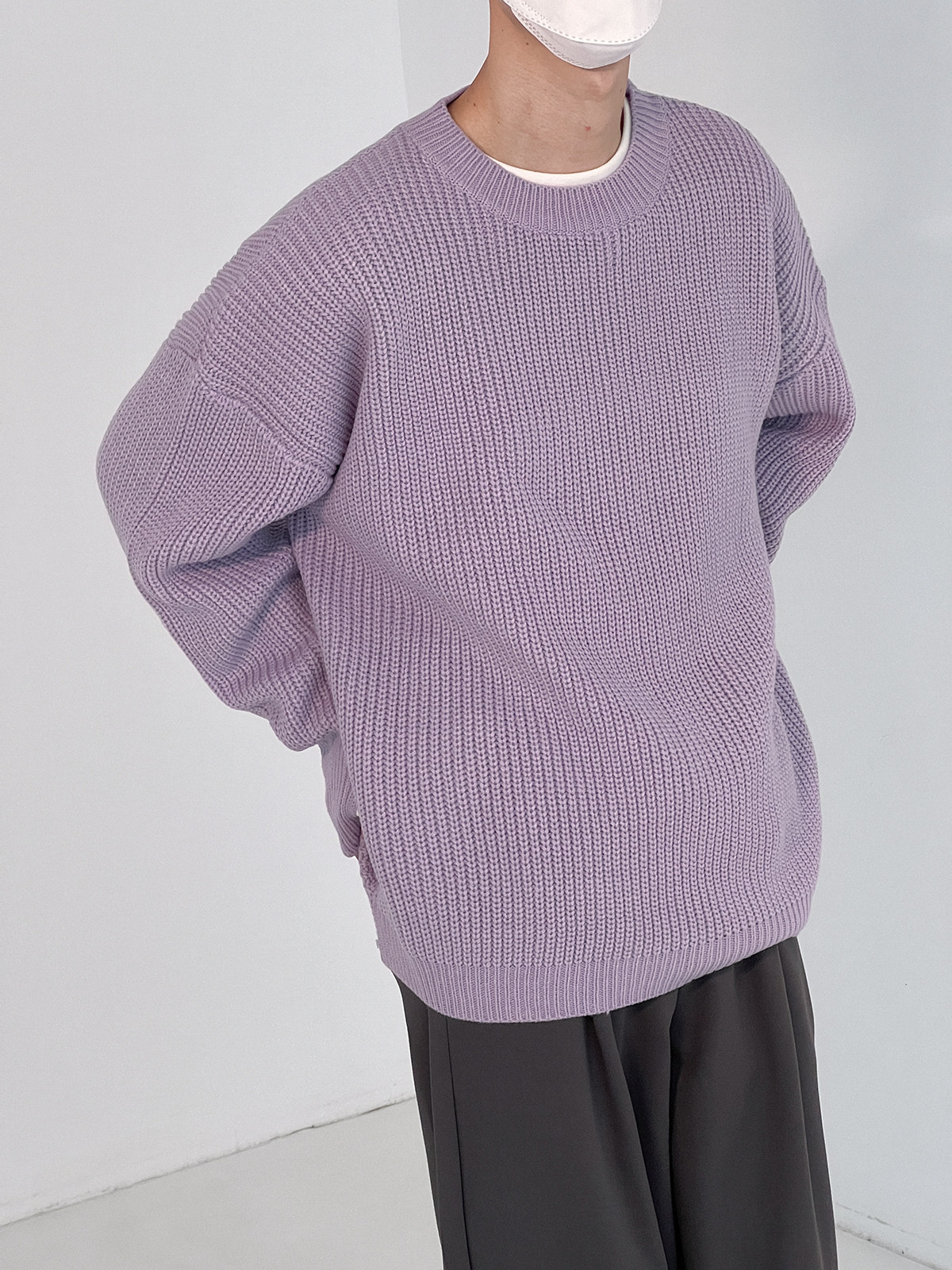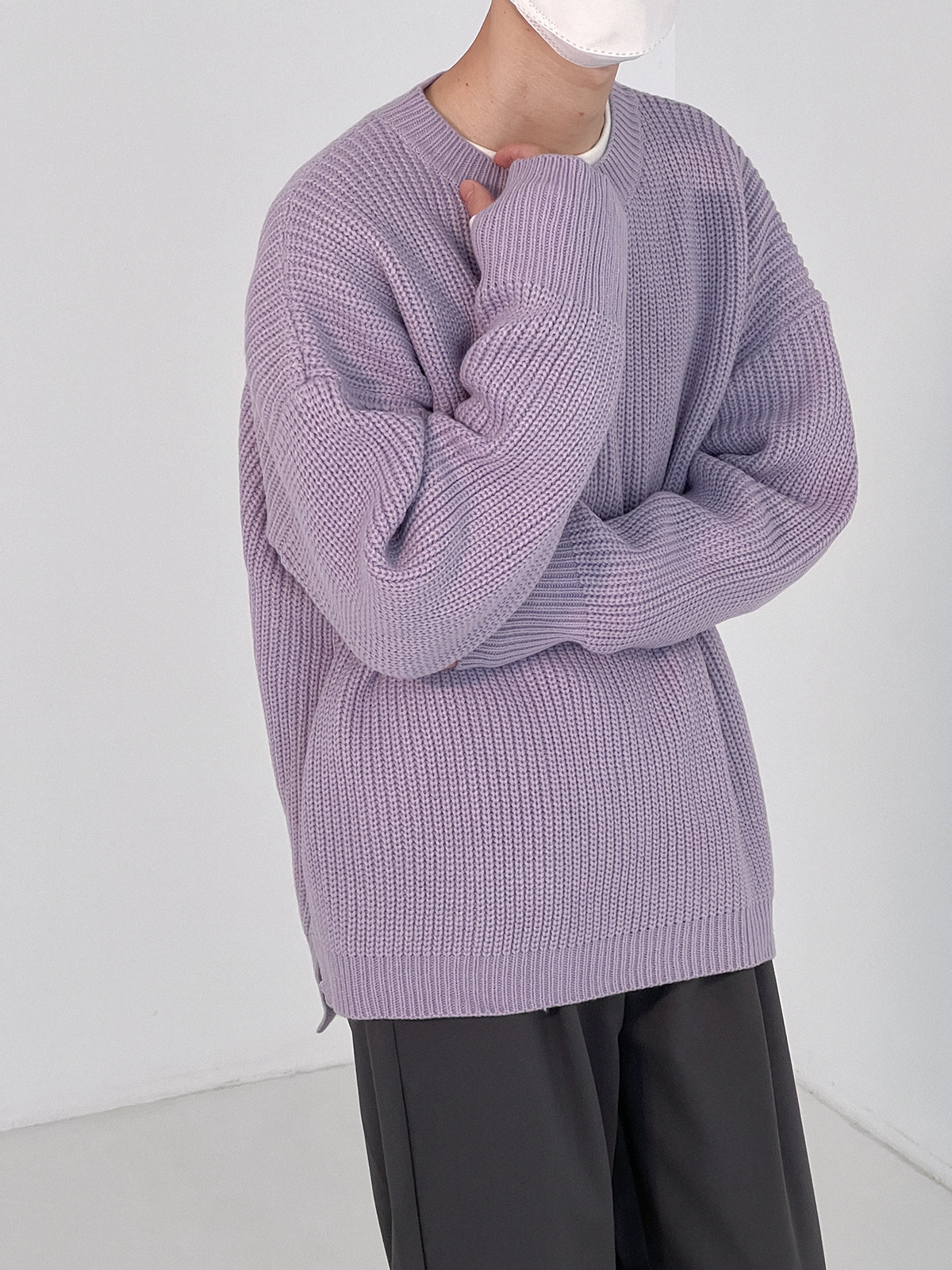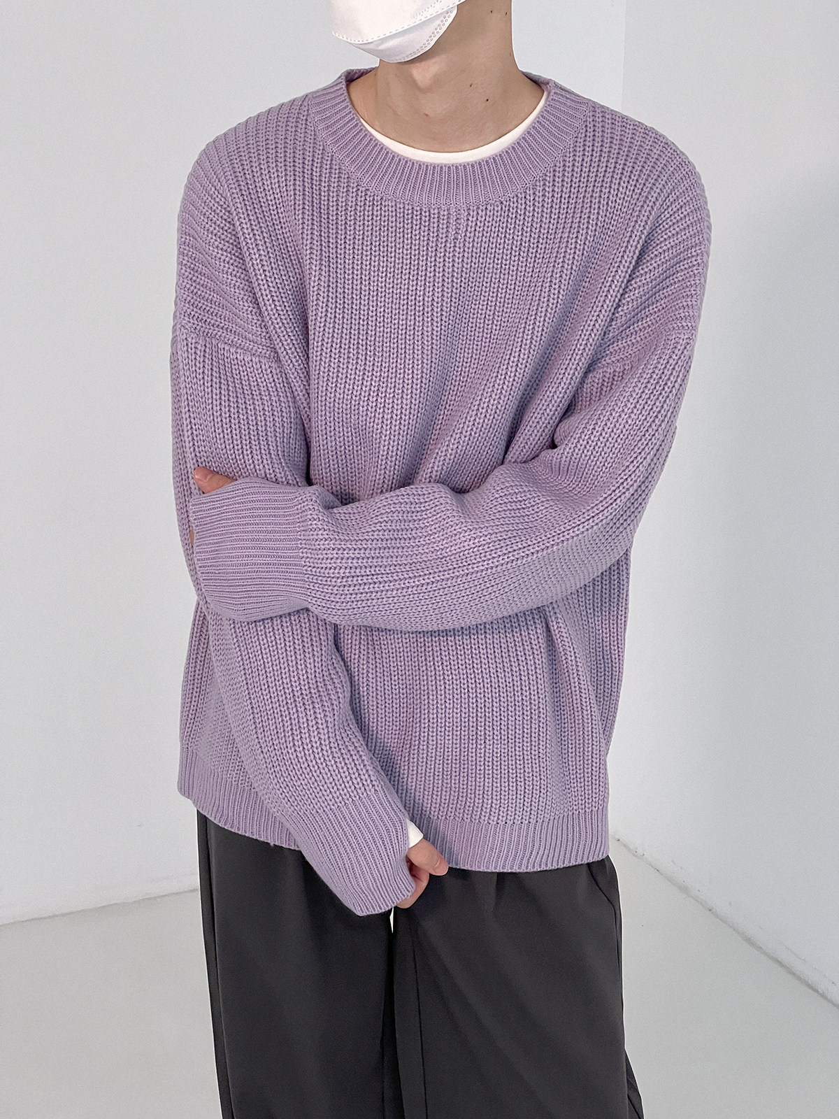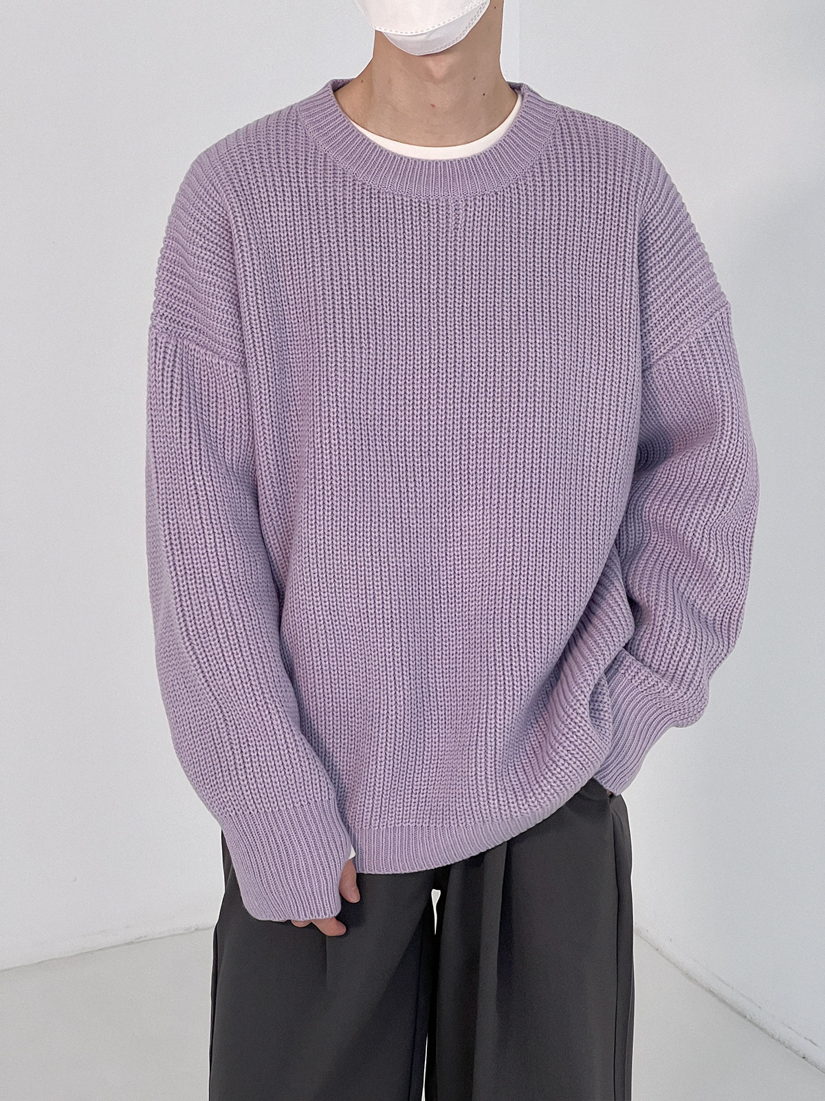 Сиреневый свитер с круглым воротником, трендовые брендовые трикотажные нарукавники, оверсайз, осенний, в корейском стиле