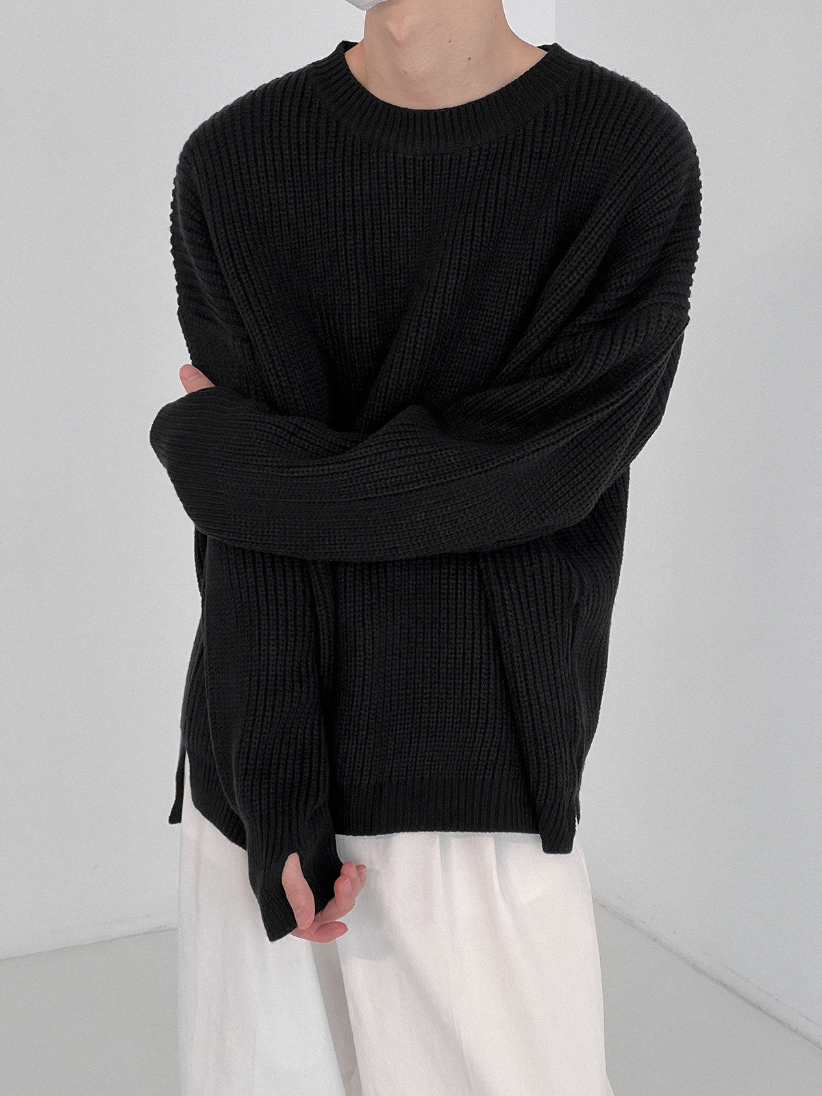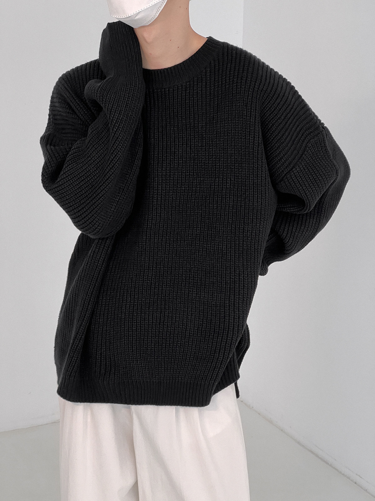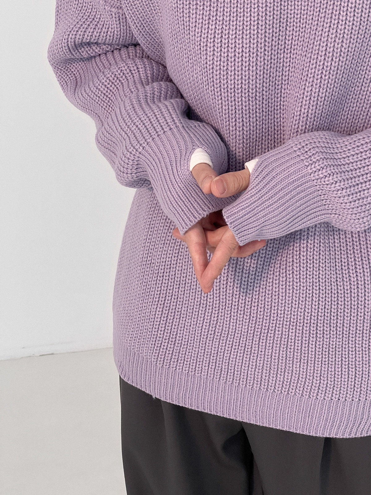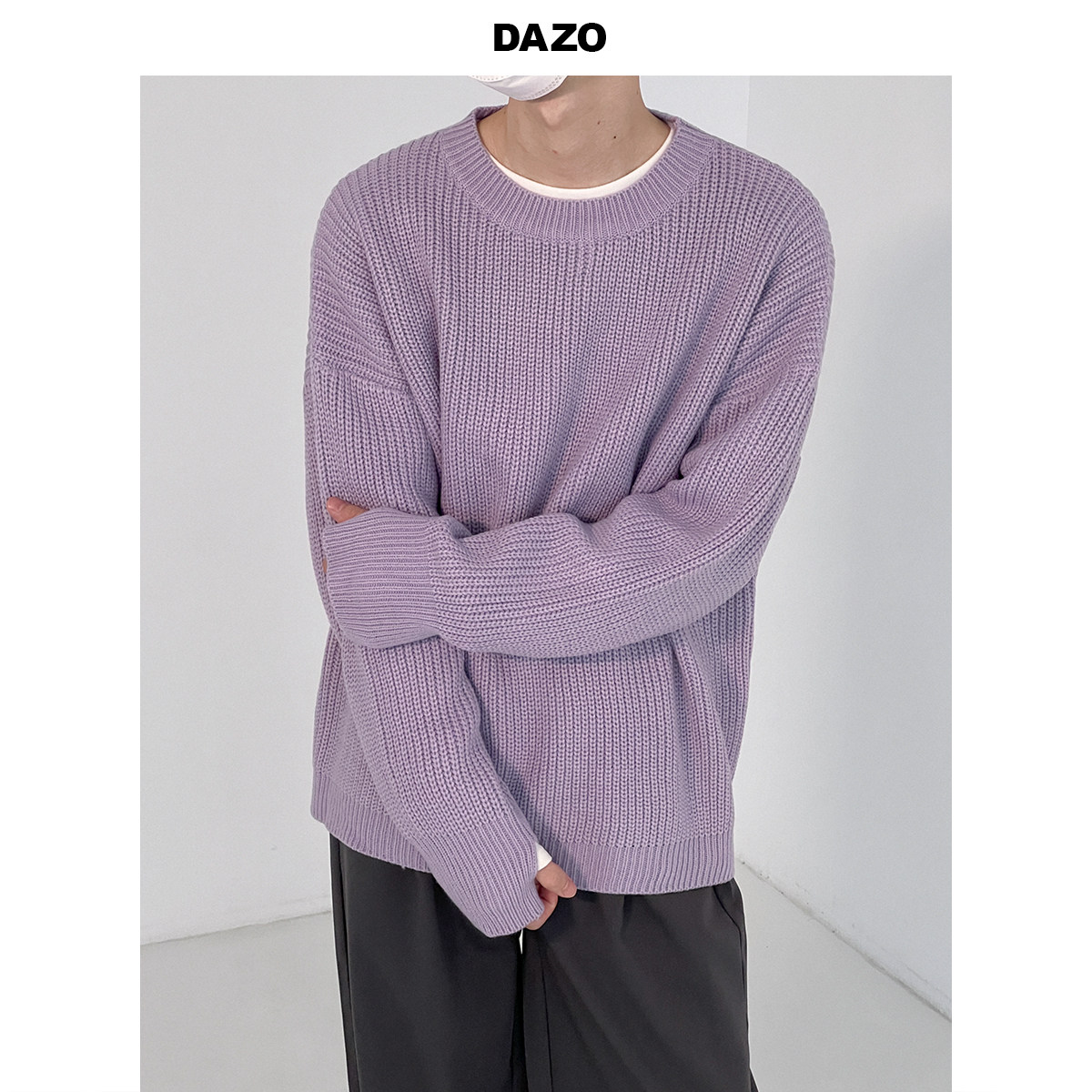 Сиреневый свитер с круглым воротником, трендовые брендовые трикотажные нарукавники, оверсайз, осенний, в корейском стиле