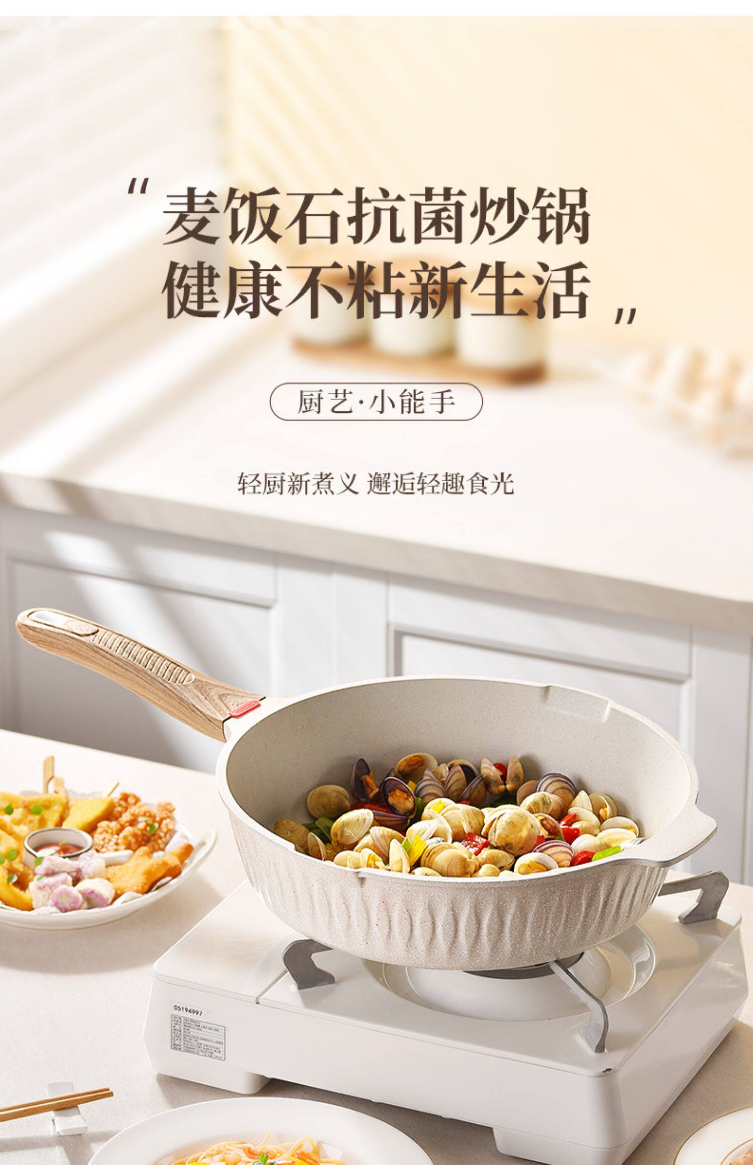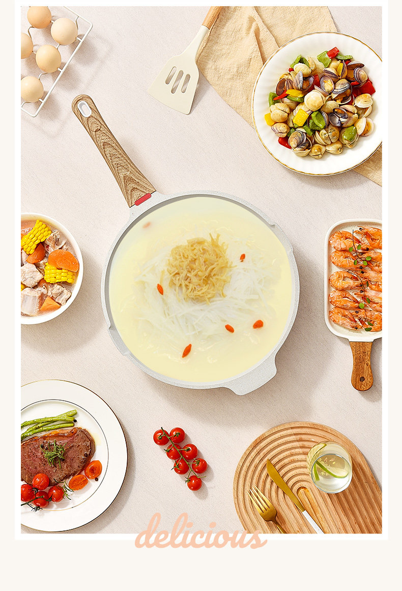 - 24 см. Антибактериальная не -стабильная кастрюля [Интеллектуальная контроль температуры 丨 Нет нижнего покрытия] липкое пандон