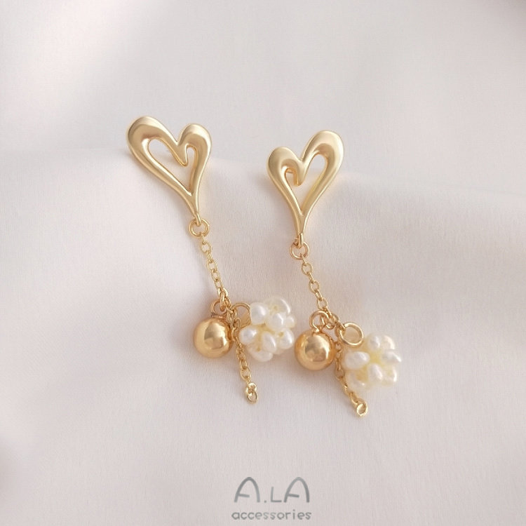 Модные серьги в форме сердца, аксессуар, аксессуары, ручка, серебро 925 пробы, 14 карат, золотой цвет, DIY