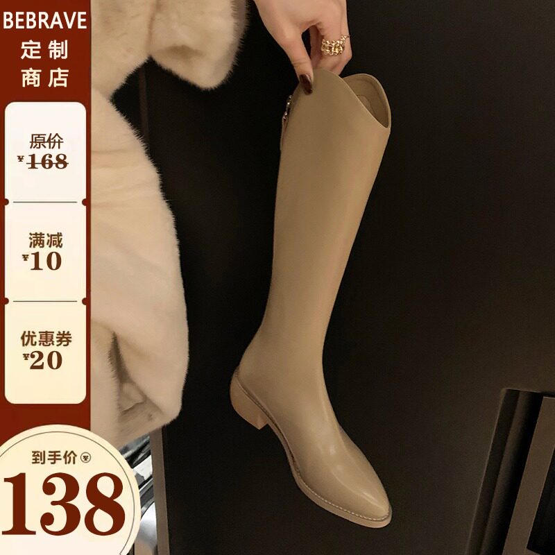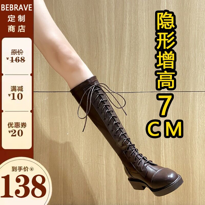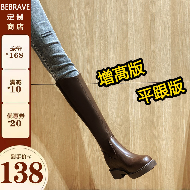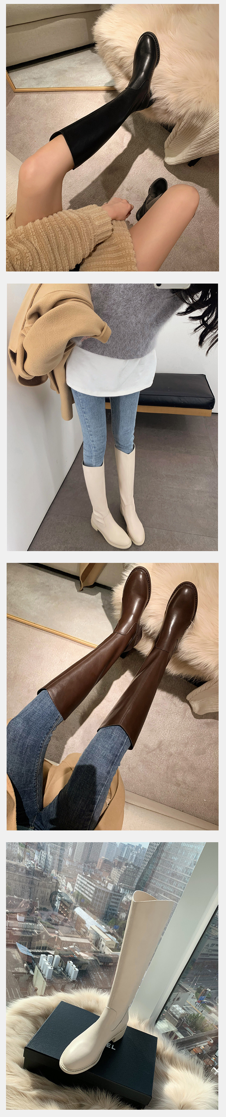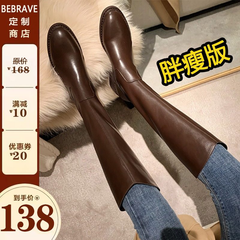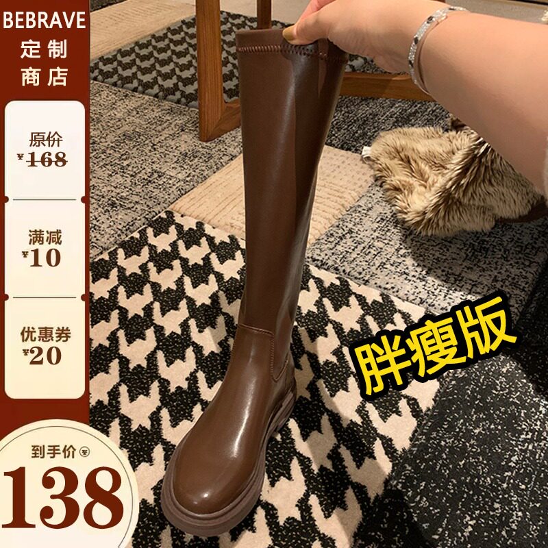 Коричневые демисезонные эластичные белые высокие сапоги, по фигуре