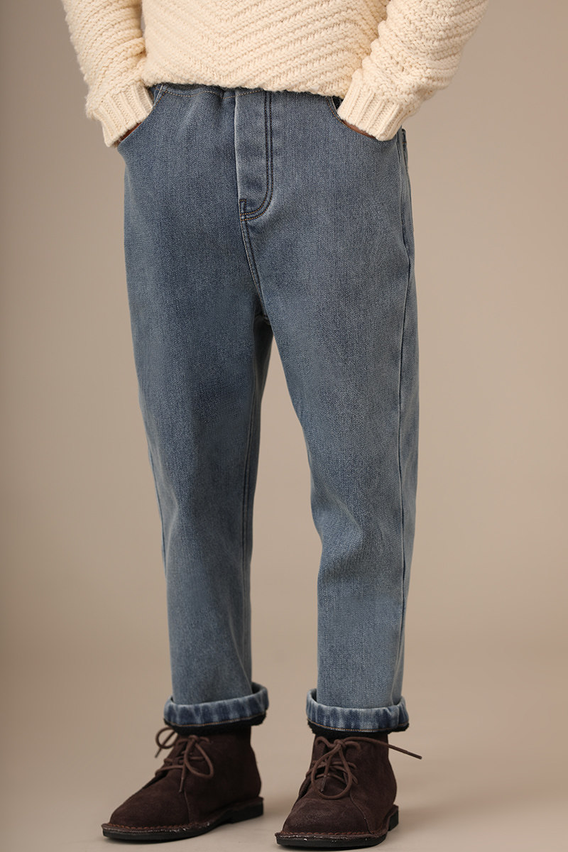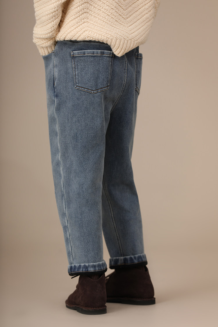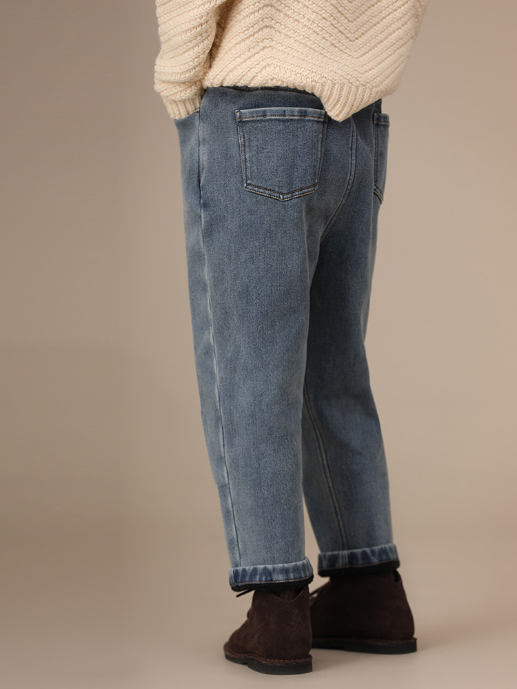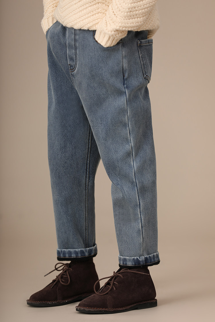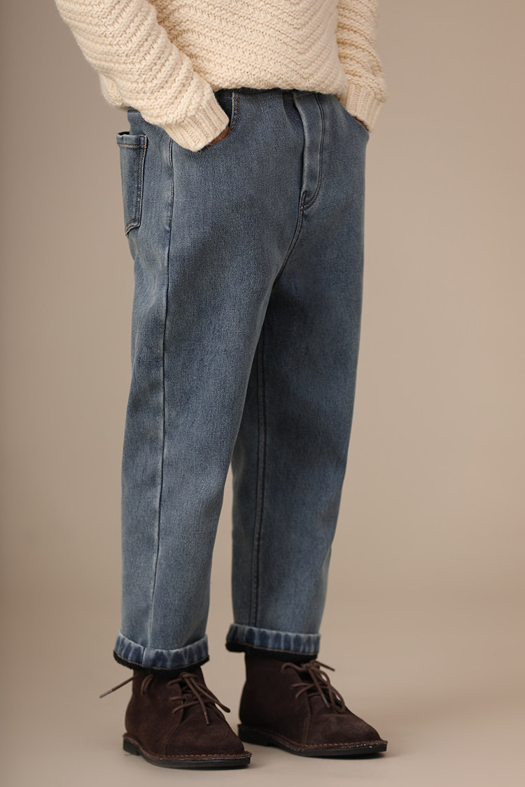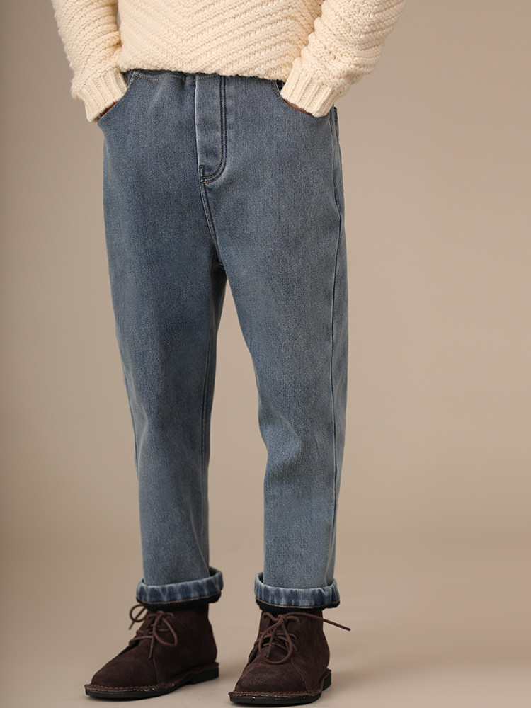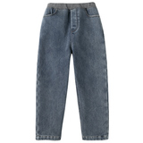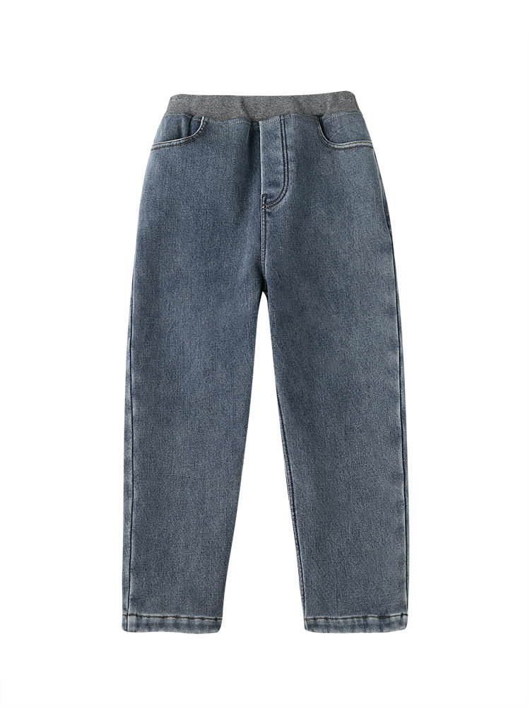 Осенние флисовые удерживающие тепло джинсовые джинсы для мальчиков, детская одежда, семейный стиль, эластичная талия