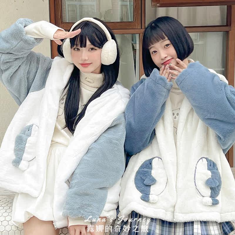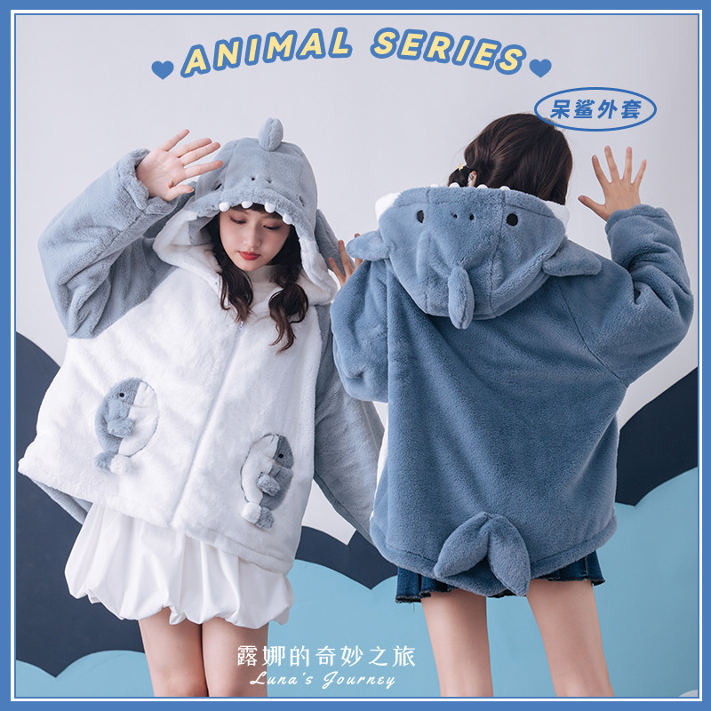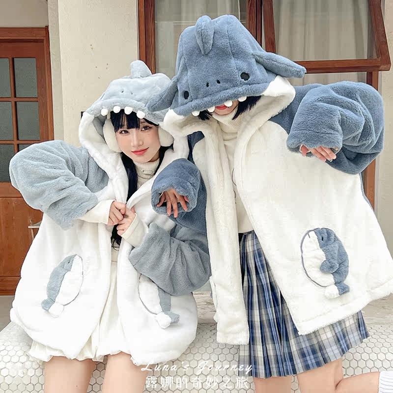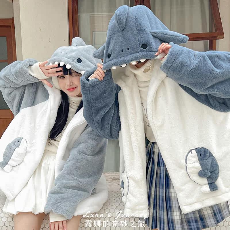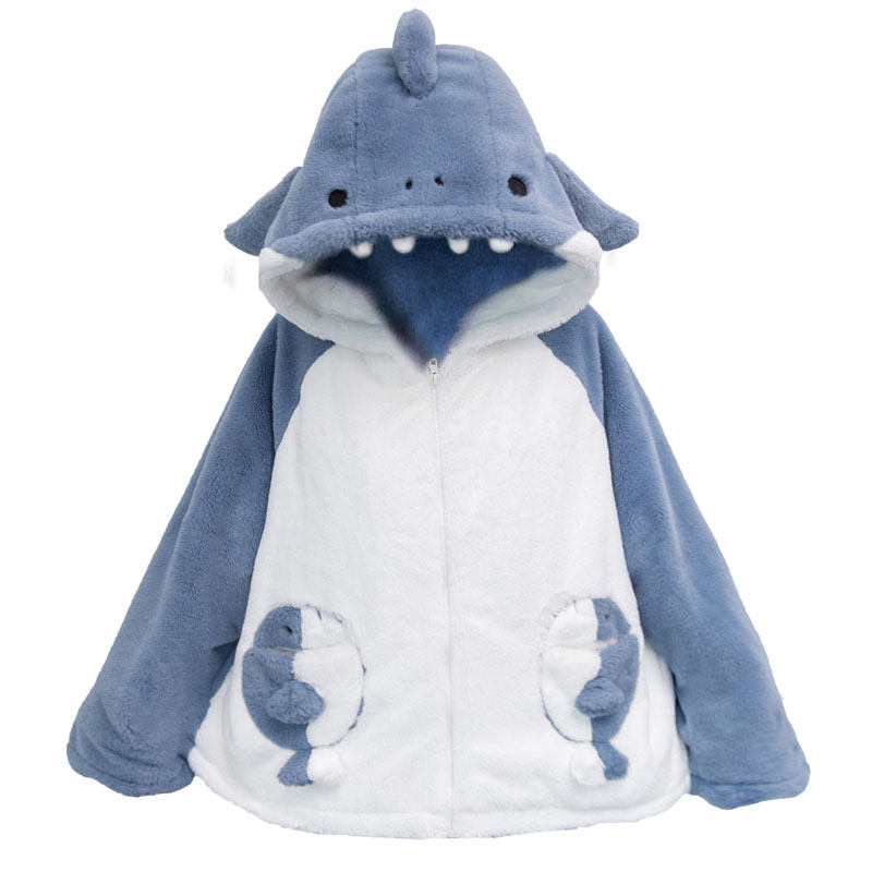 Акула с капюшоном, демисезонная милая куртка, плюшевая утепленная толстовка