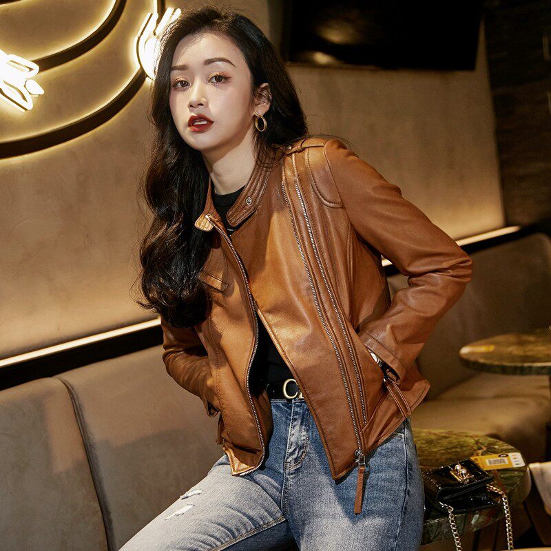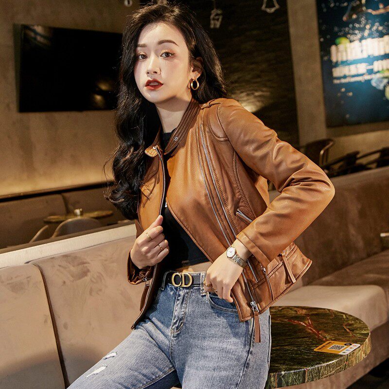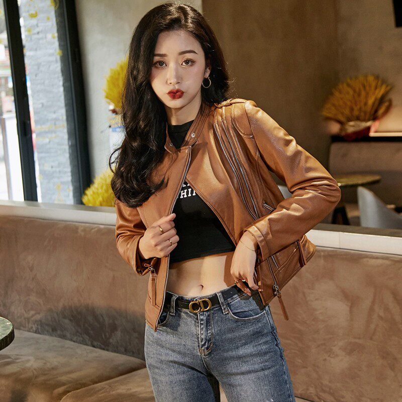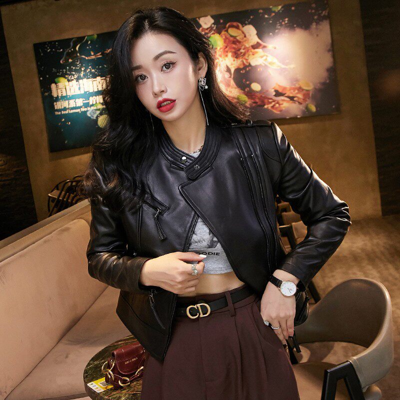 Короткая демисезонная осенняя куртка, из натуральной кожи, подходит для подростков