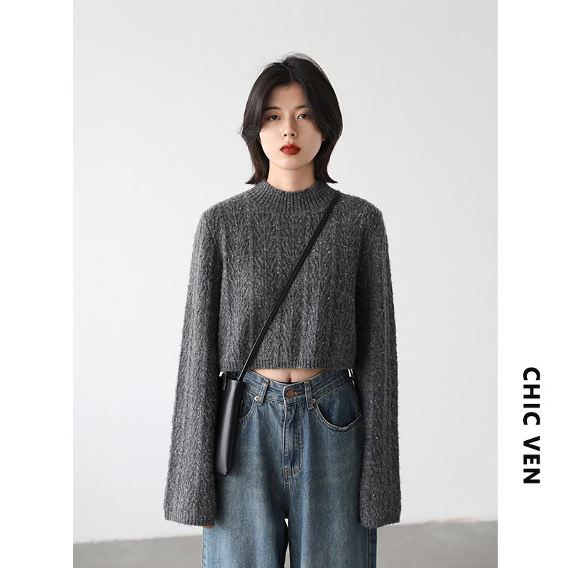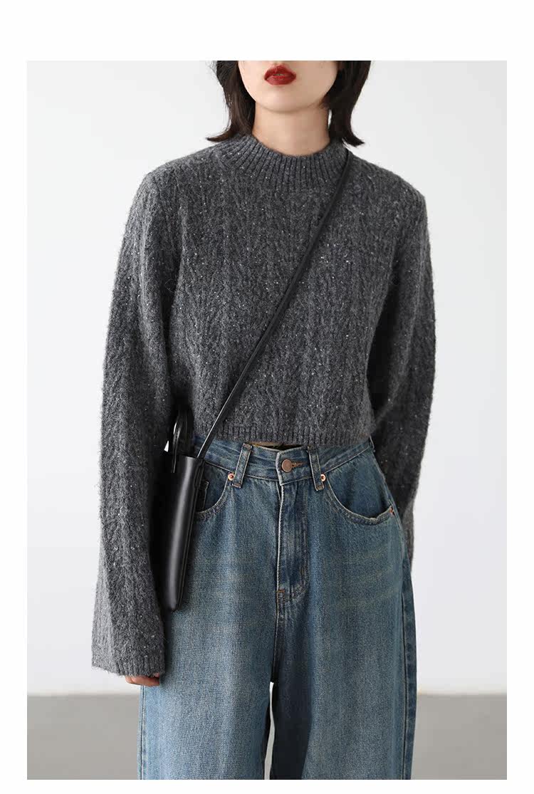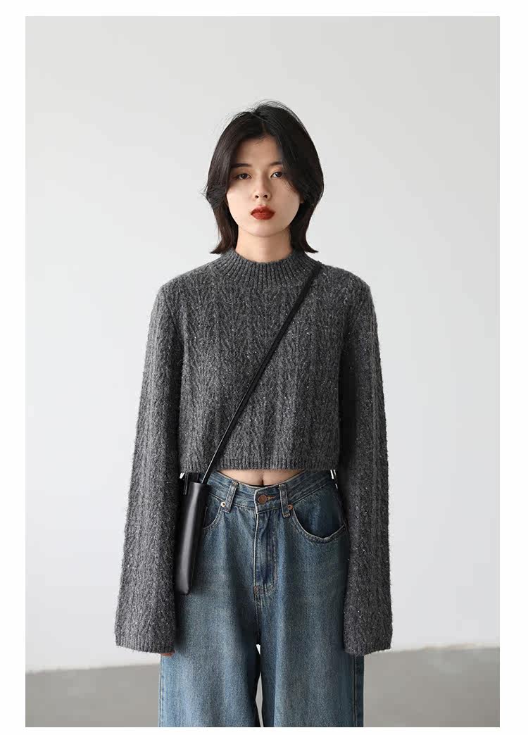 Шикарное «избегание мира» ретро маленький круглый ошейник Цветовая точка Цветочная прядь мягкий клейкий свитер короткий свитер