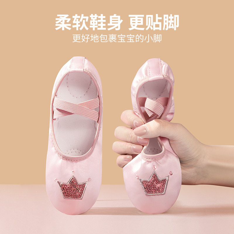 [儿童舞蹈鞋女软底加绒粉色女童练功猫爪公主宝宝跳舞中国幼儿芭蕾]