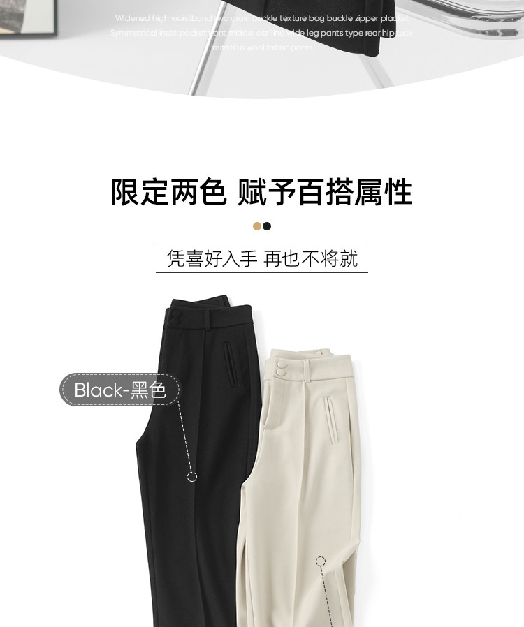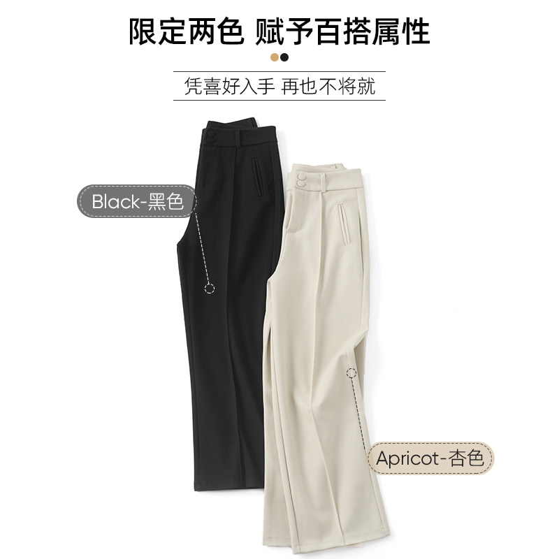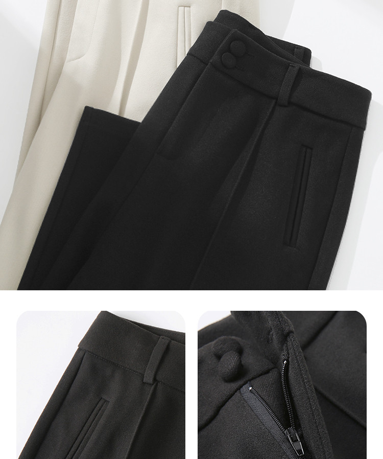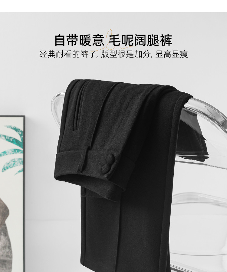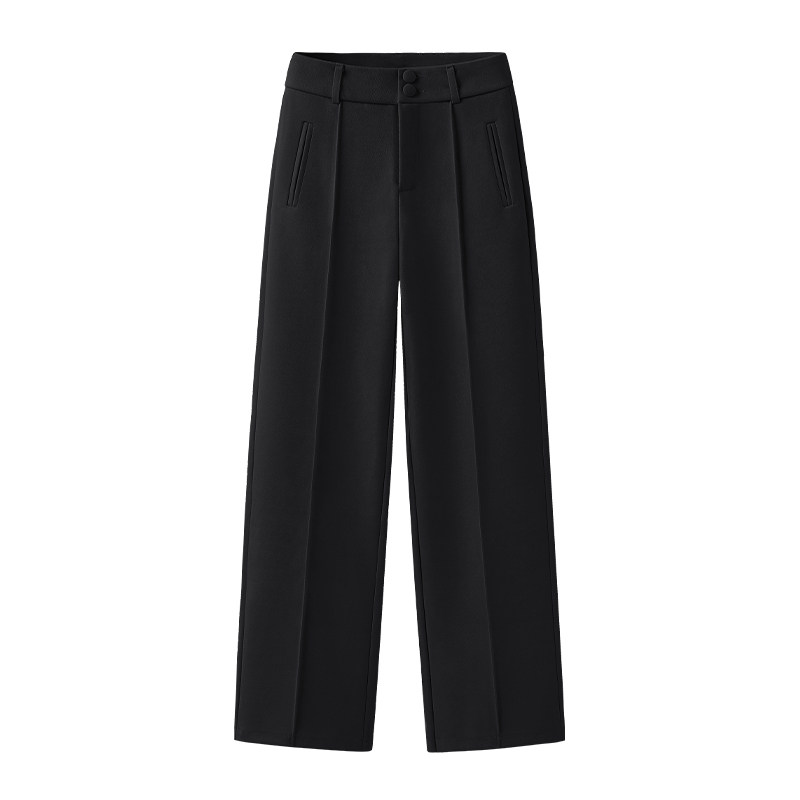 Шерстяные демисезонные штаны, черные повседневные брюки, свободный прямой крой, в корейском стиле