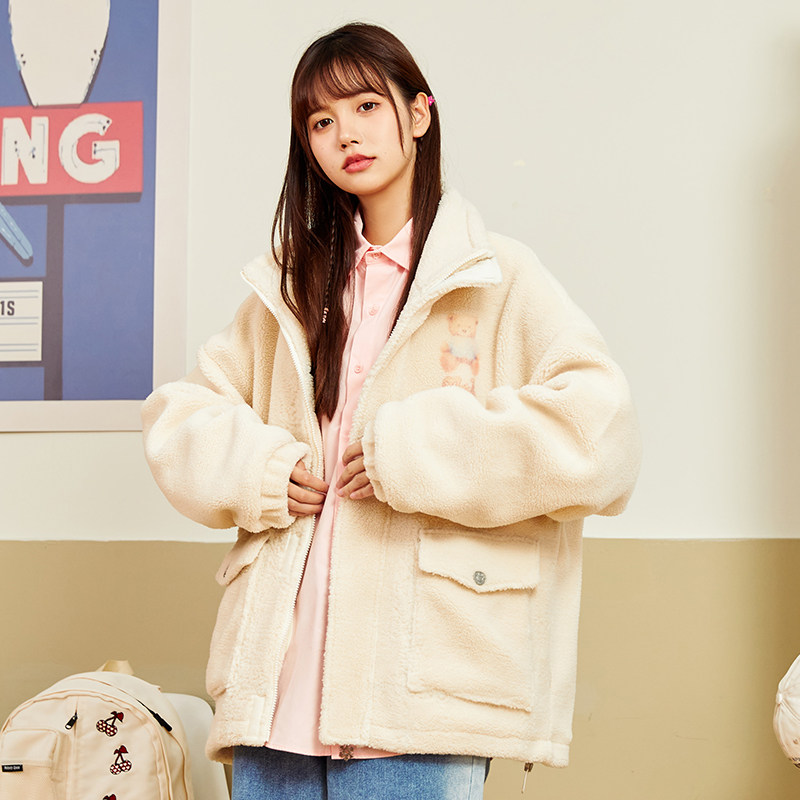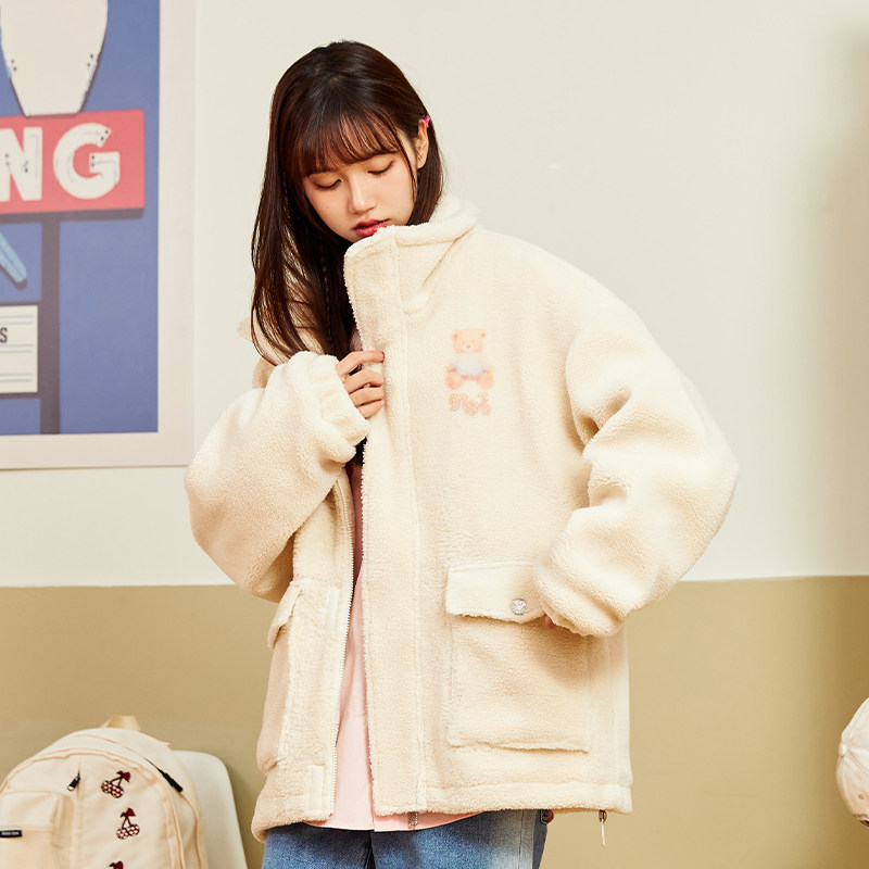 Зимняя куртка в стиле хип-хоп для отдыха, этнический стиль, для влюбленных, с медвежатами, оверсайз