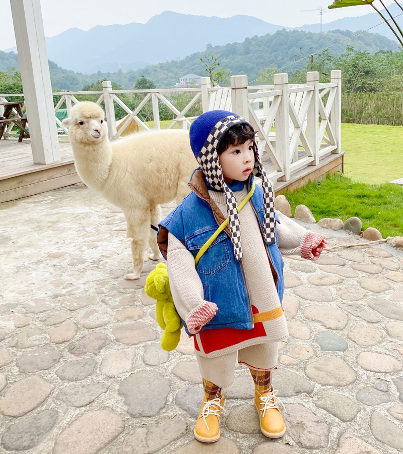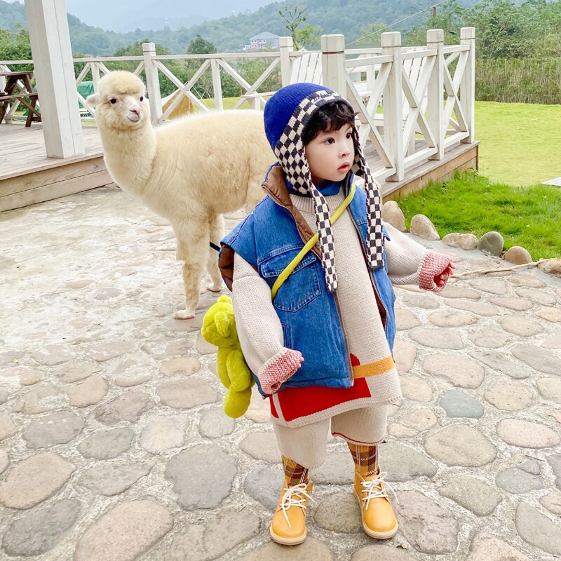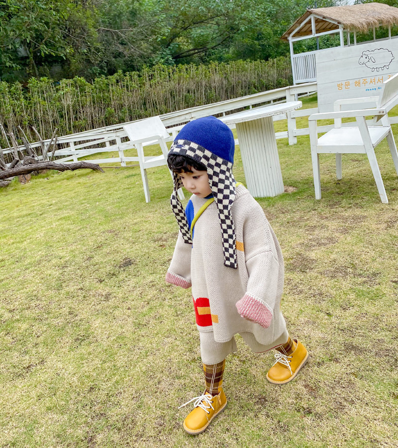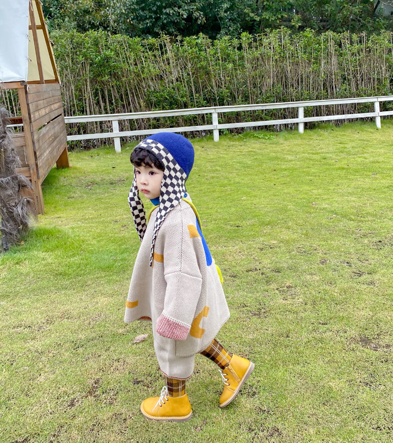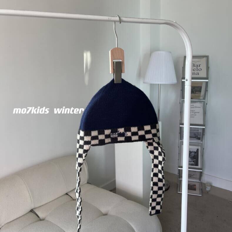 Зимняя детская вязаная шапка, шахматы, шарф, в корейском стиле, дорожная версия