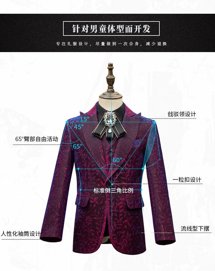 Детский классический костюм, комплект для мальчиков, платье, манекен головы, наряд для музыкальных выступлений, 3 предмета, благородный крой