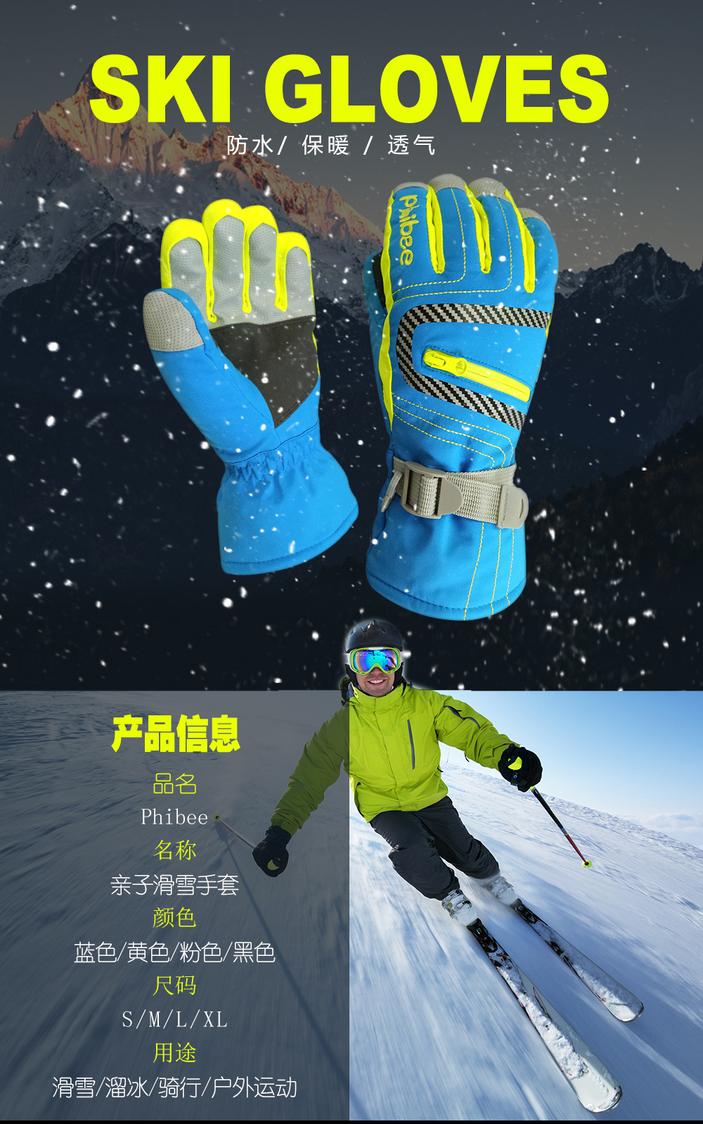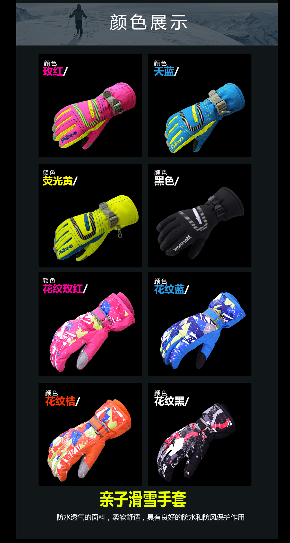 Детские лыжные водонепроницаемые удерживающие тепло перчатки для взрослых, дорожное ветрозащитное снаряжение, семейный стиль