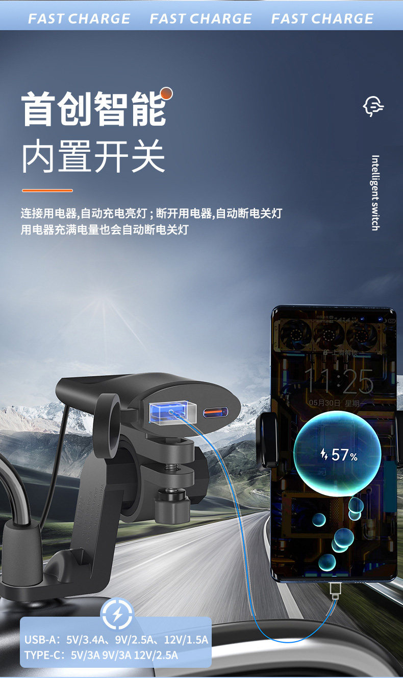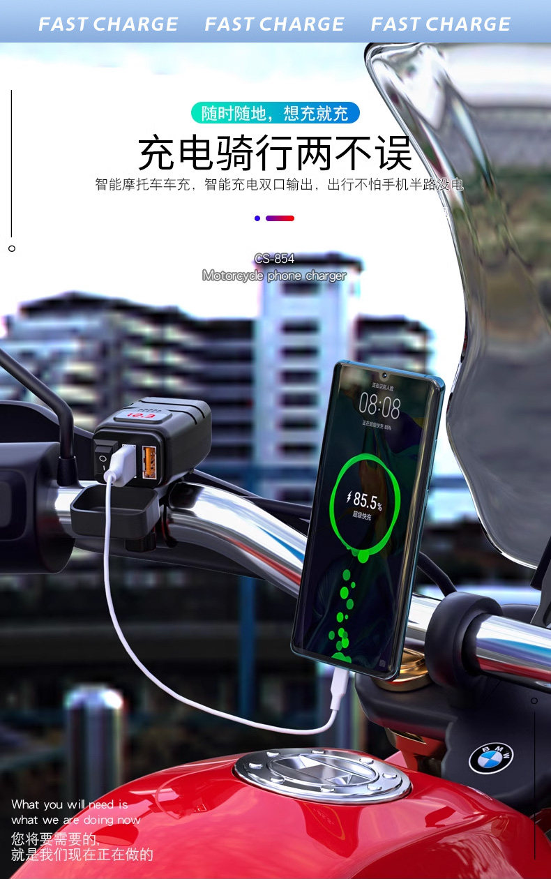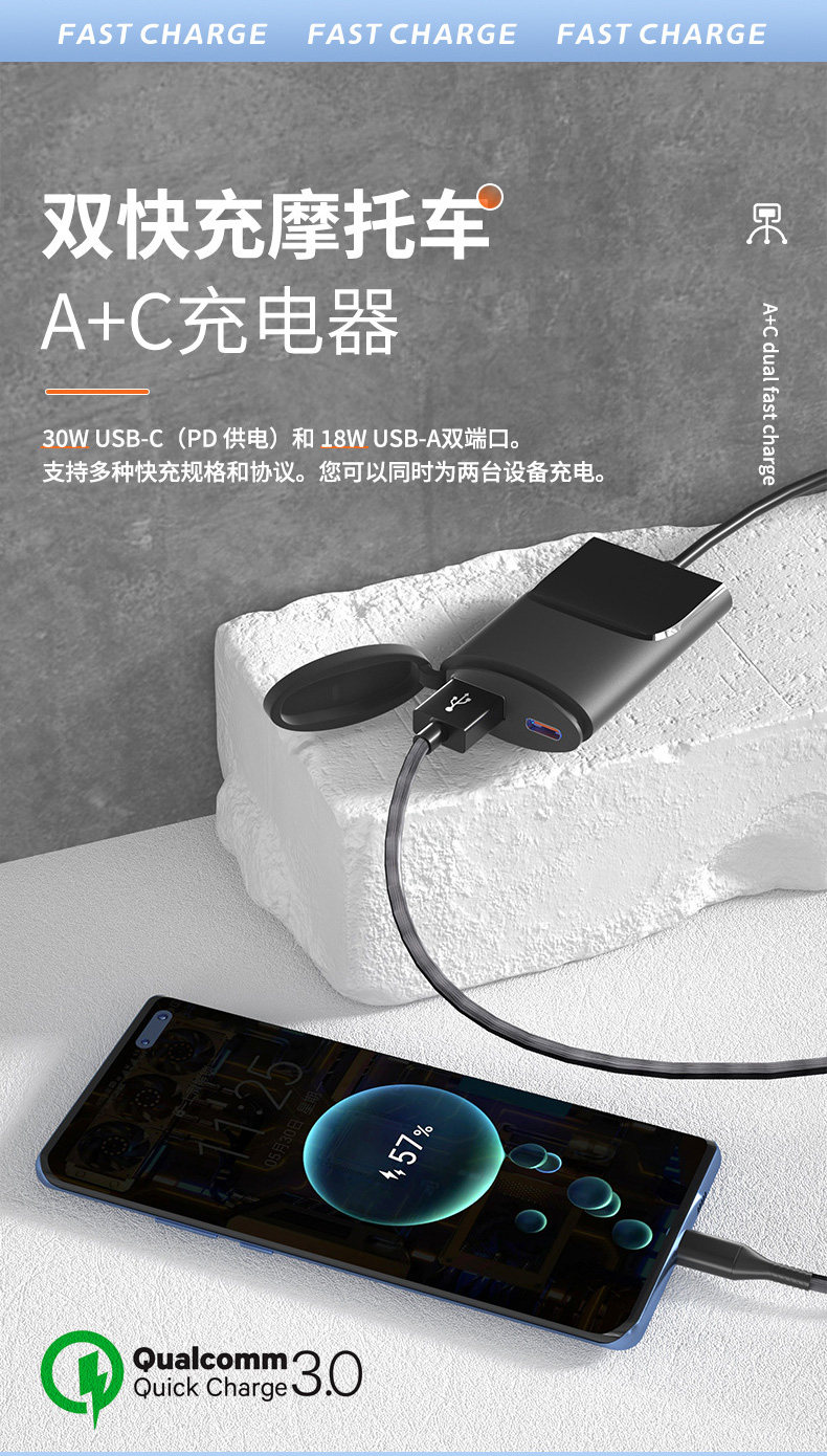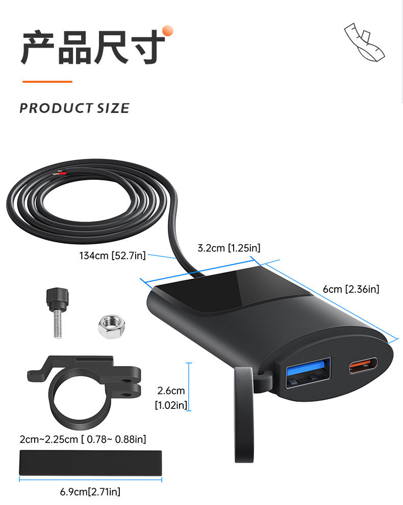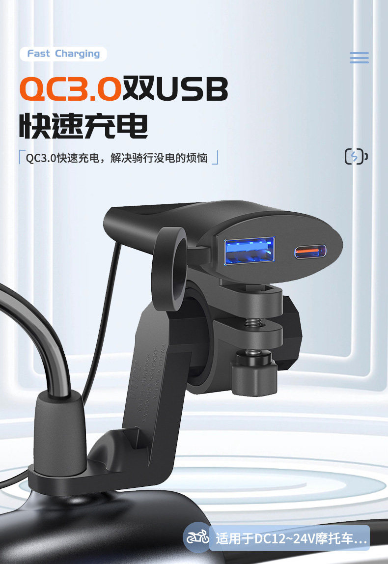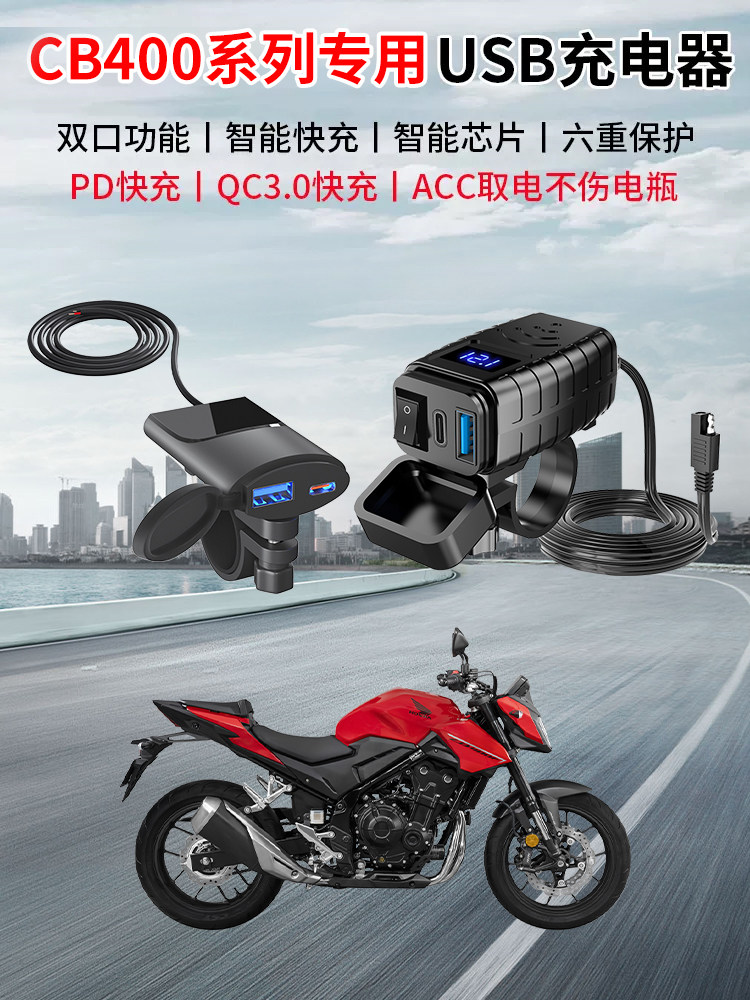 Применимо к Honda CB400F CBR400R Mobile Pholle USB -зарядное устройство, перевозчик транспортного средства, QC3.0, быстрая зарядка двойная USB