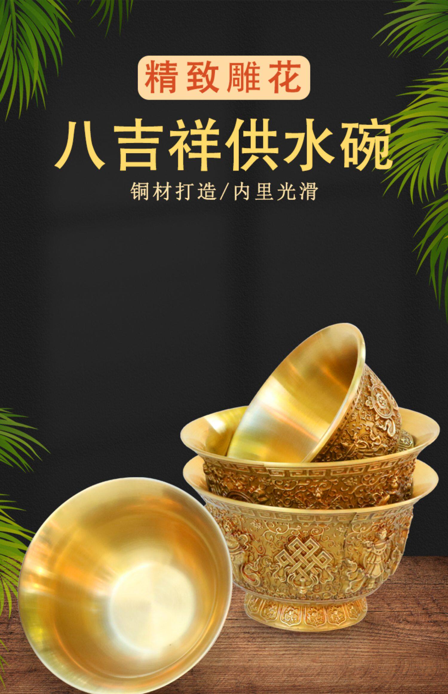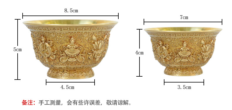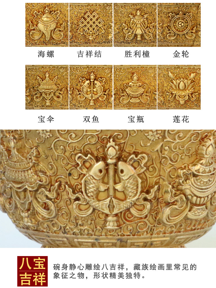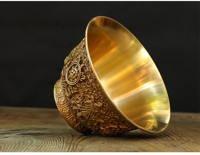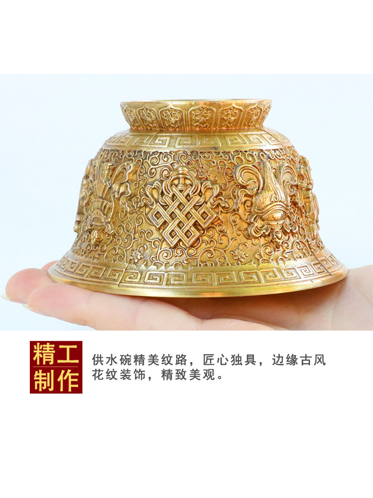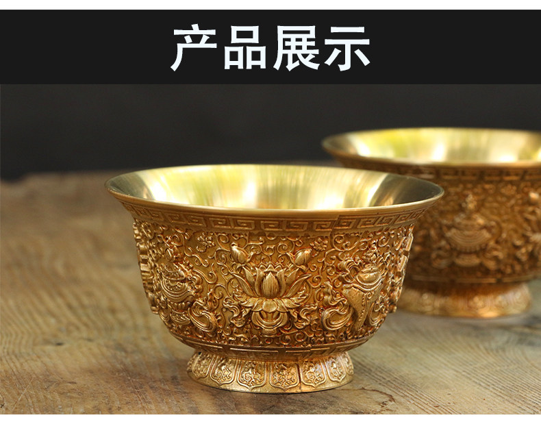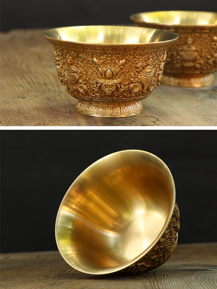 Восемь джизцзяна резного медного медного водоснабжения Тибетская чашка для водоснабжения принесет чашку для очистки базовой воды.