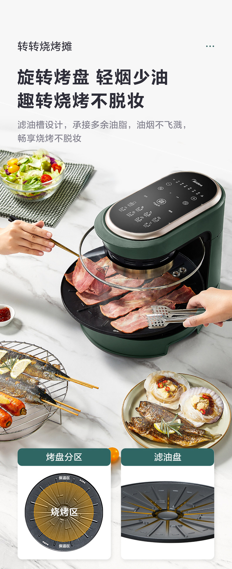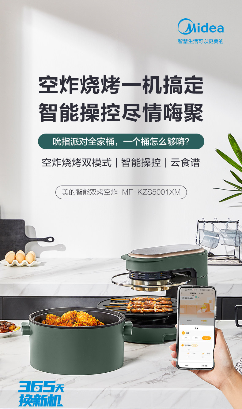 Midea с двойным грильщиком жареным жареным горшками Домашний барбекю Полностью автоматическое умное большая мощность.