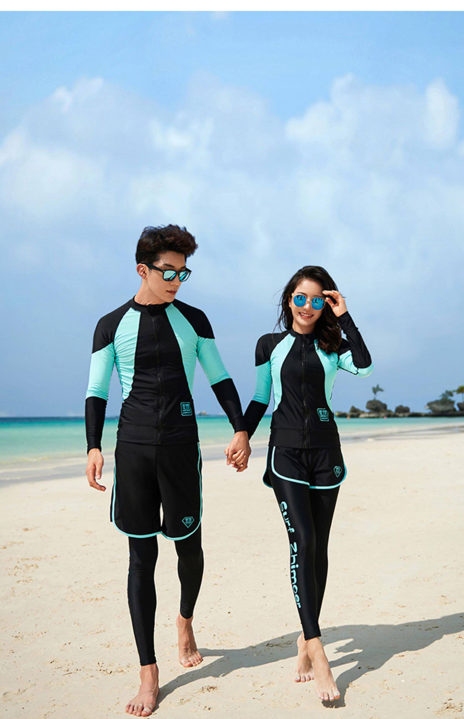 Раздельный купальник, быстросохнущий лонгслив, модные штаны, для влюбленных, защита от солнца, облегающий крой