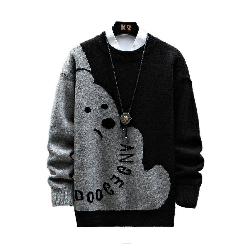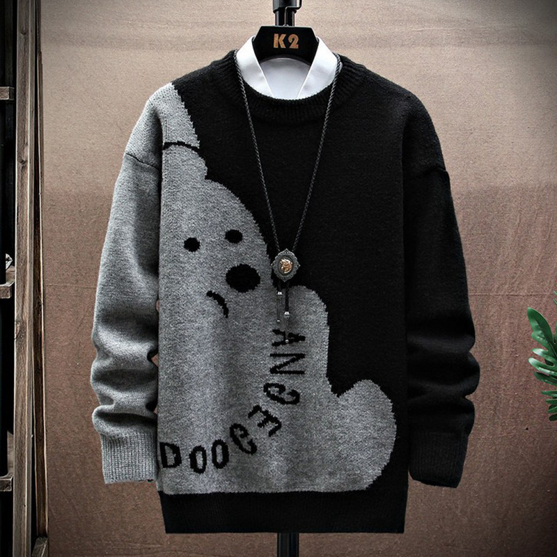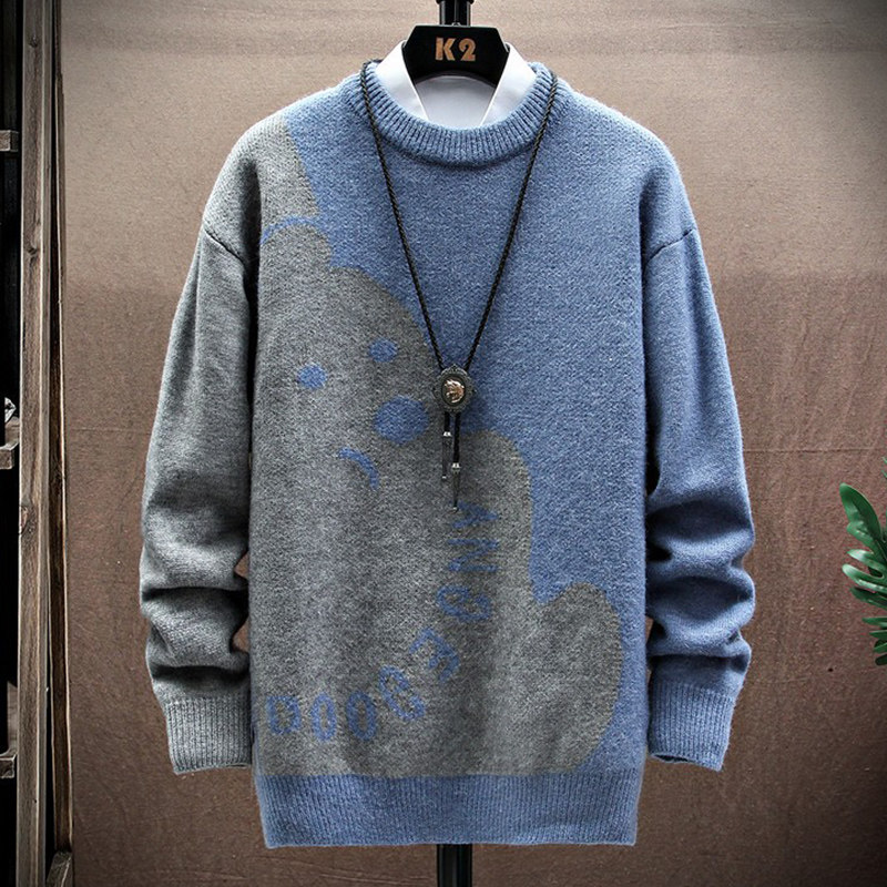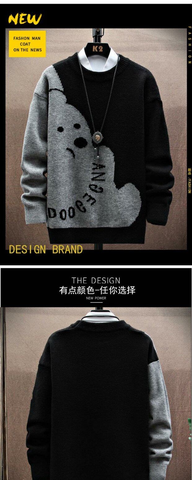 Зимний трендовый свитер с круглым воротником, трикотажный кардиган для отдыха для влюбленных, с медвежатами, увеличенная толщина