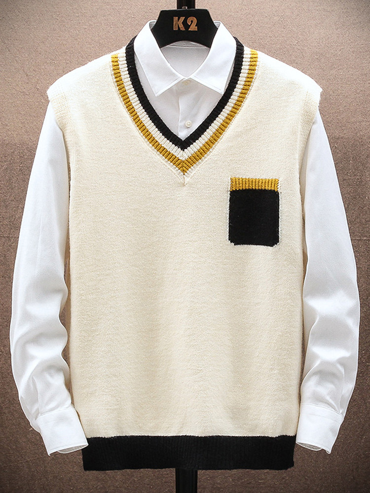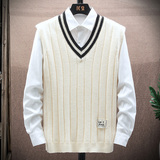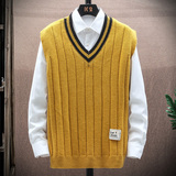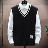 Мужской свитер без рукавов, универсальный демисезонный трендовый шерстяной жилет для отдыха, V-образный вырез